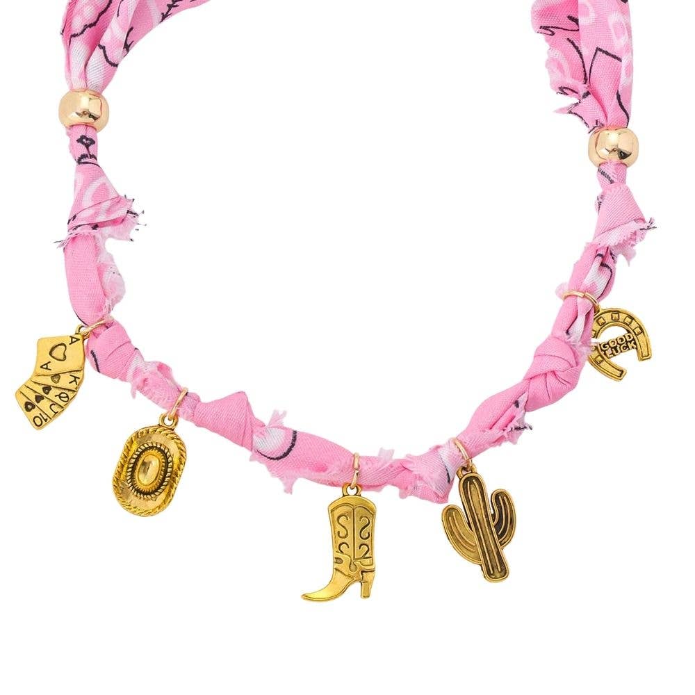 PLAYING CARD HAT BOOT CACTUS GOOD LUCK PENDANT MULTI CHARM SCARF NECKLACE