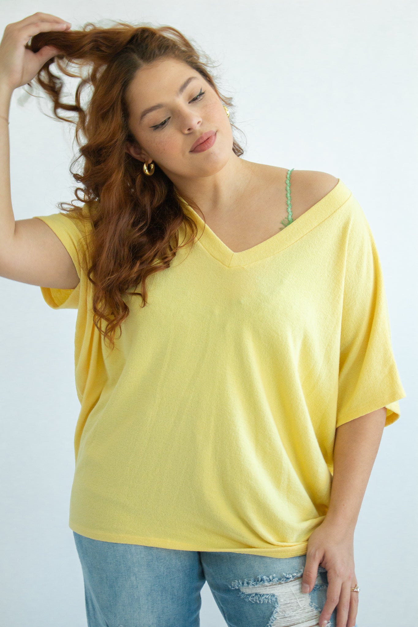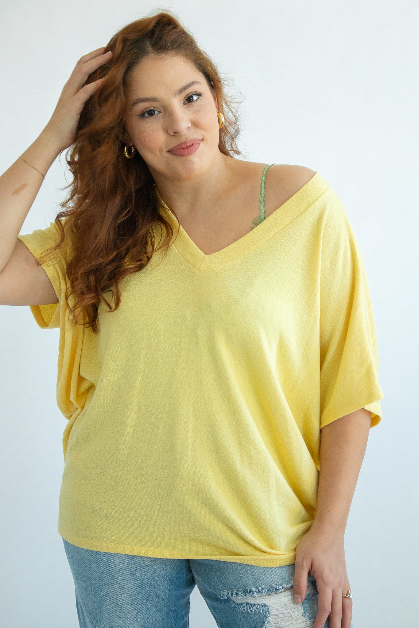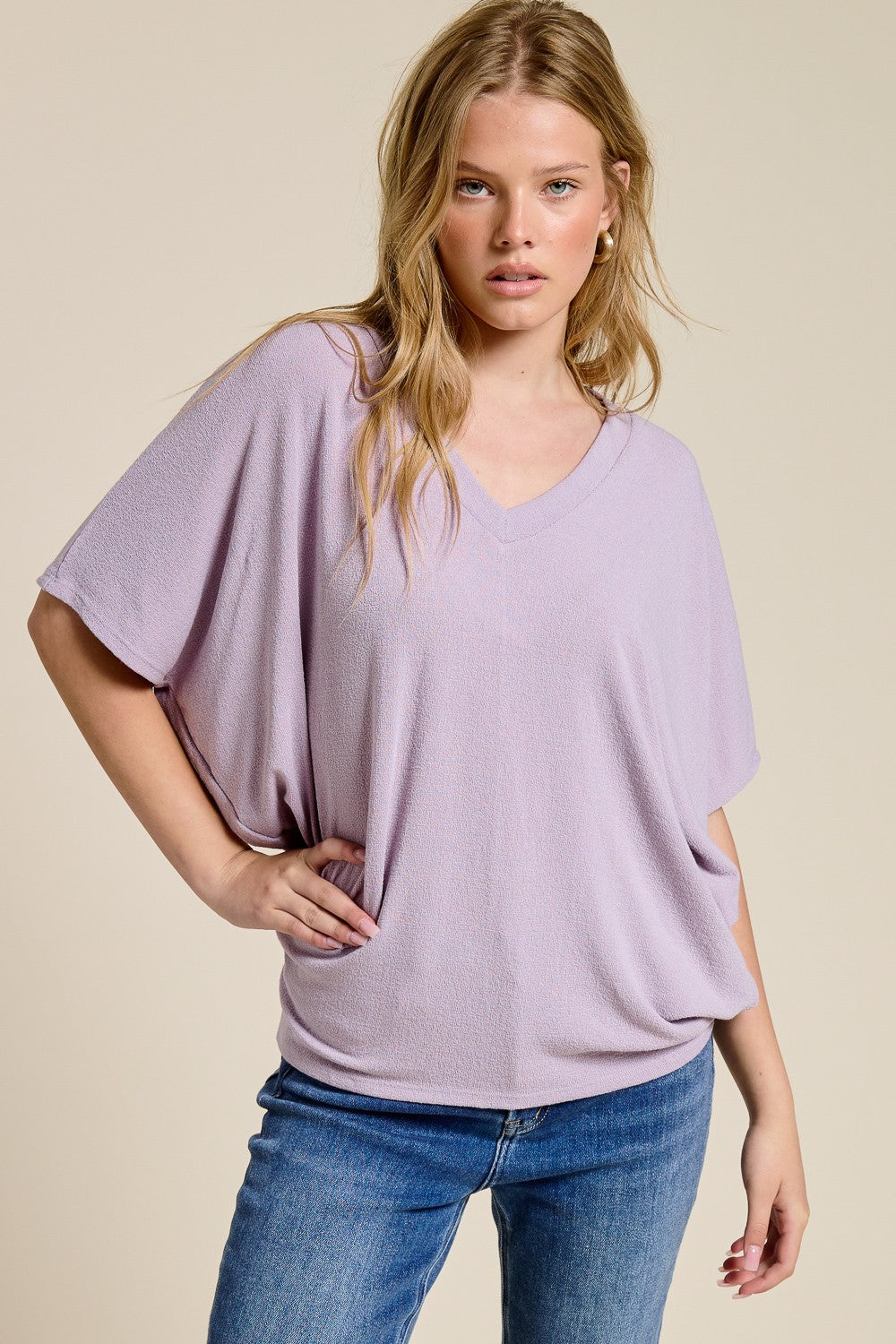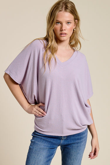 This relaxed-fit V-neck dolman top is designed for everyday comfort with an effortlessly flattering drape. Cut from a soft and breathable brushed knit with a touch of stretch, it features loose sleeves and a flowy silhouette that works for all body types.