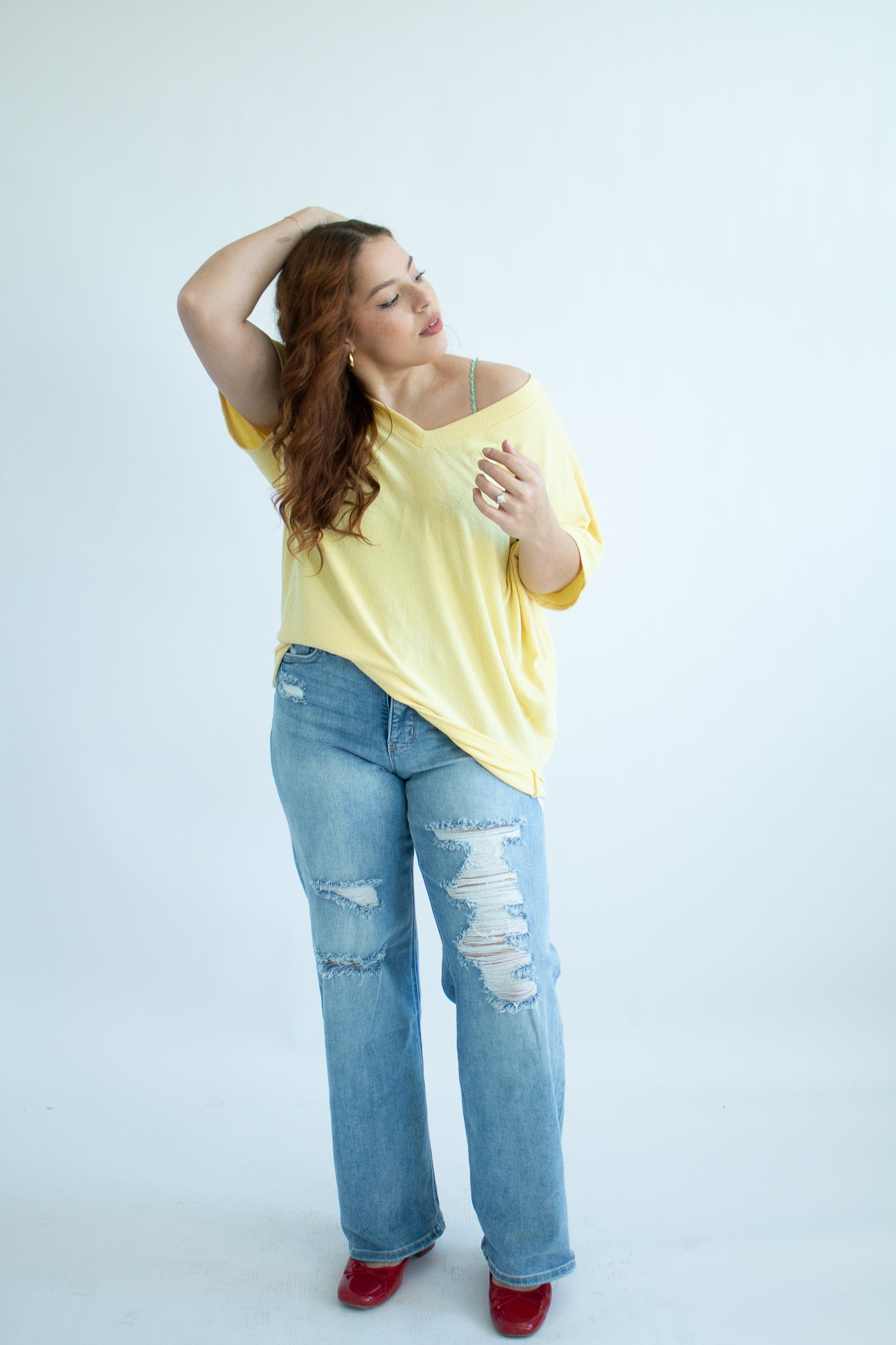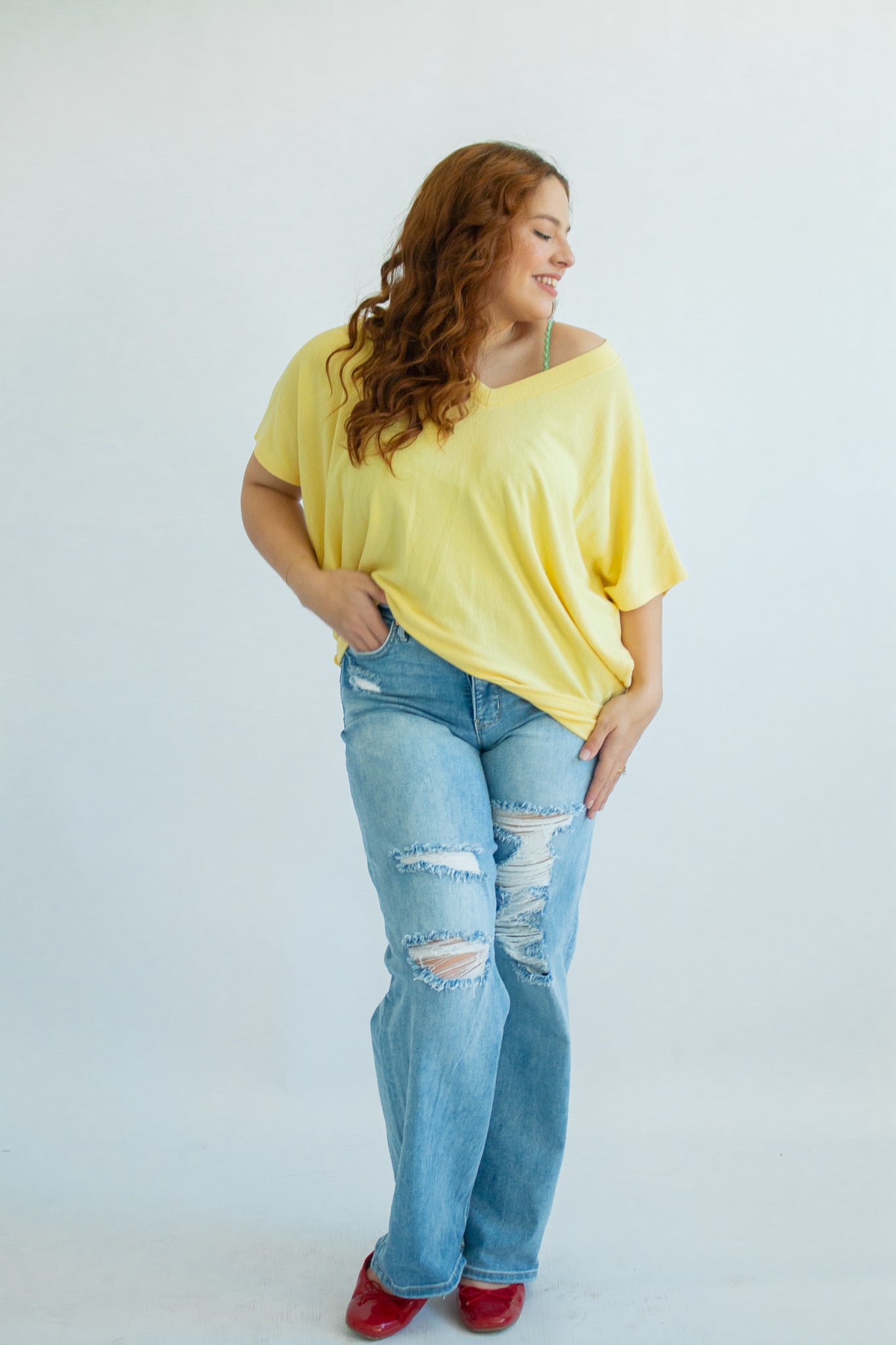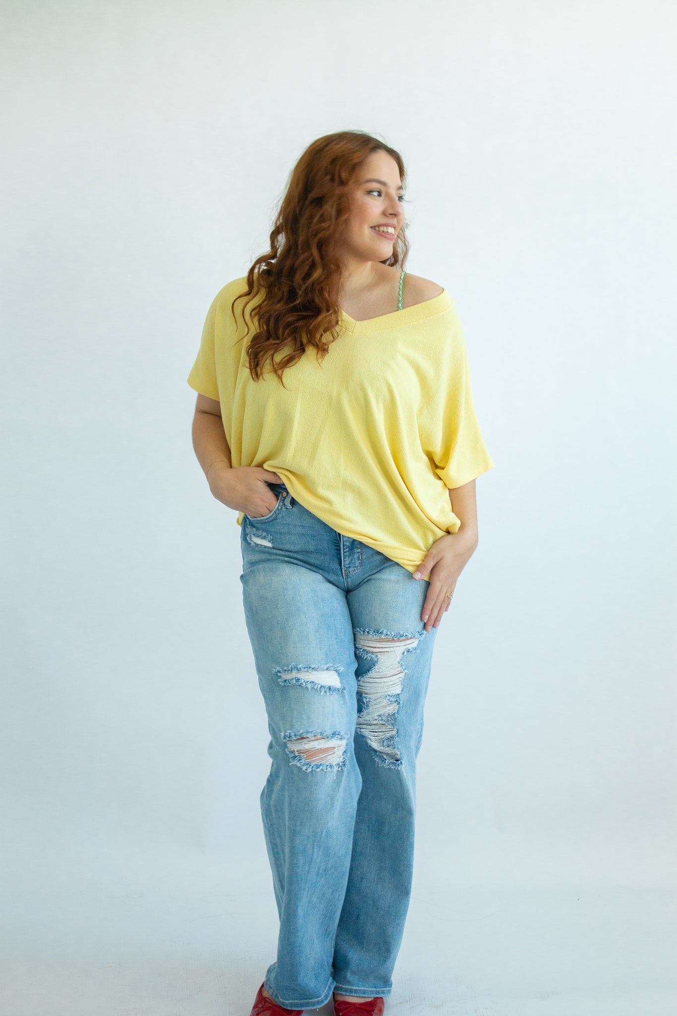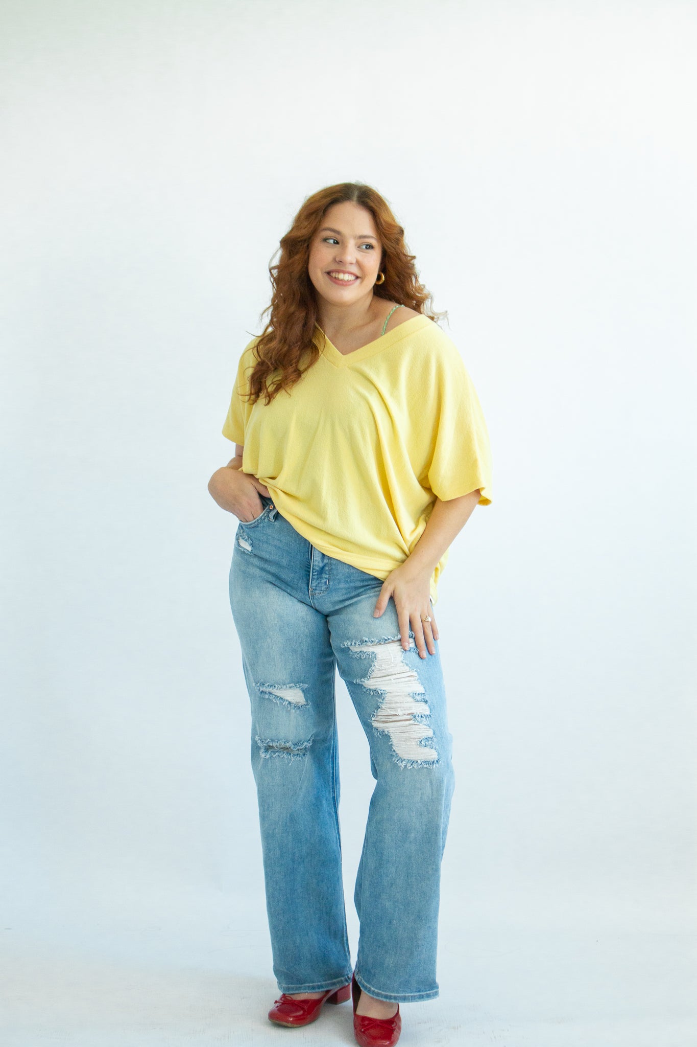 This relaxed-fit V-neck dolman top is designed for everyday comfort with an effortlessly flattering drape. Cut from a soft and breathable brushed knit with a touch of stretch, it features loose sleeves and a flowy silhouette that works for all body types.