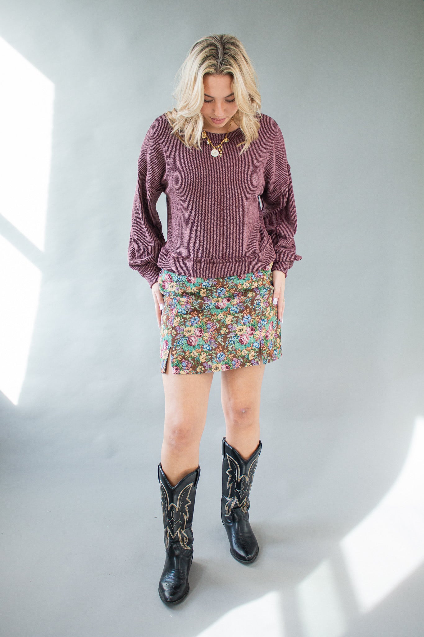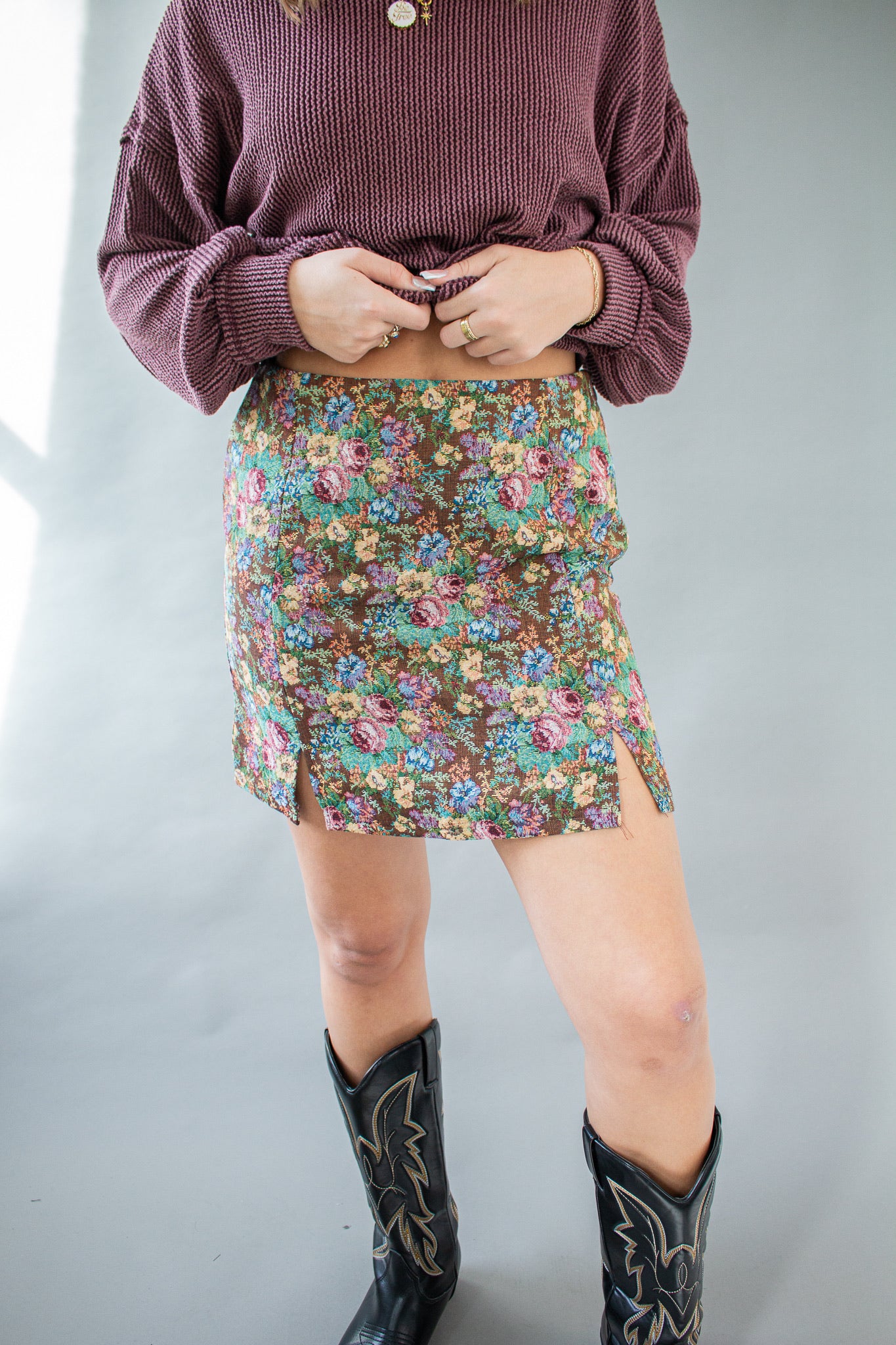 • Floral Jacquard Fabric Holiday Mini Skirt