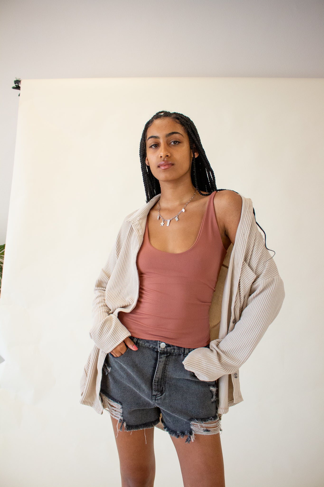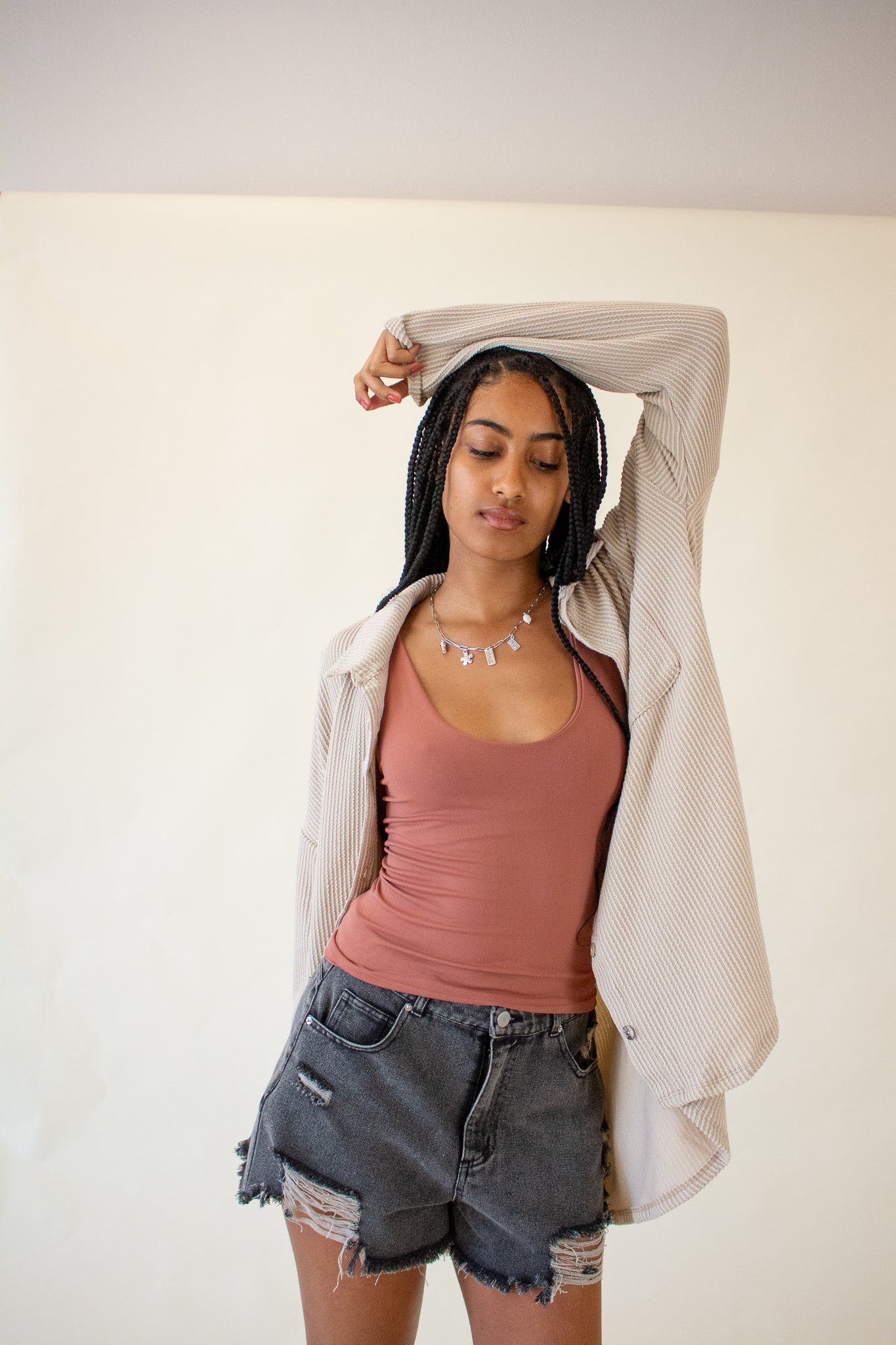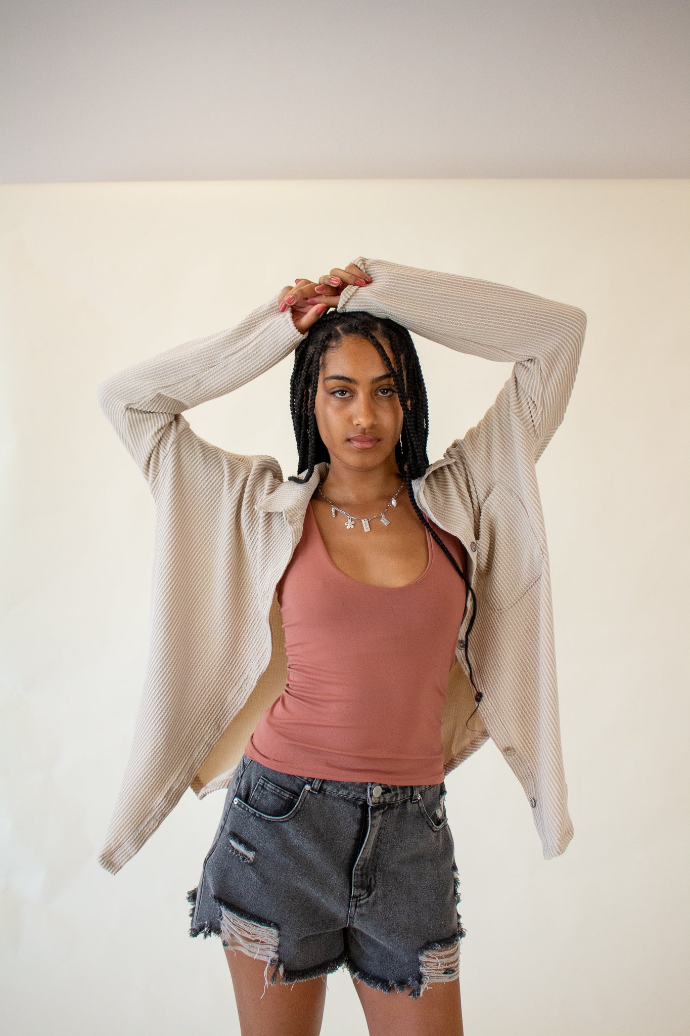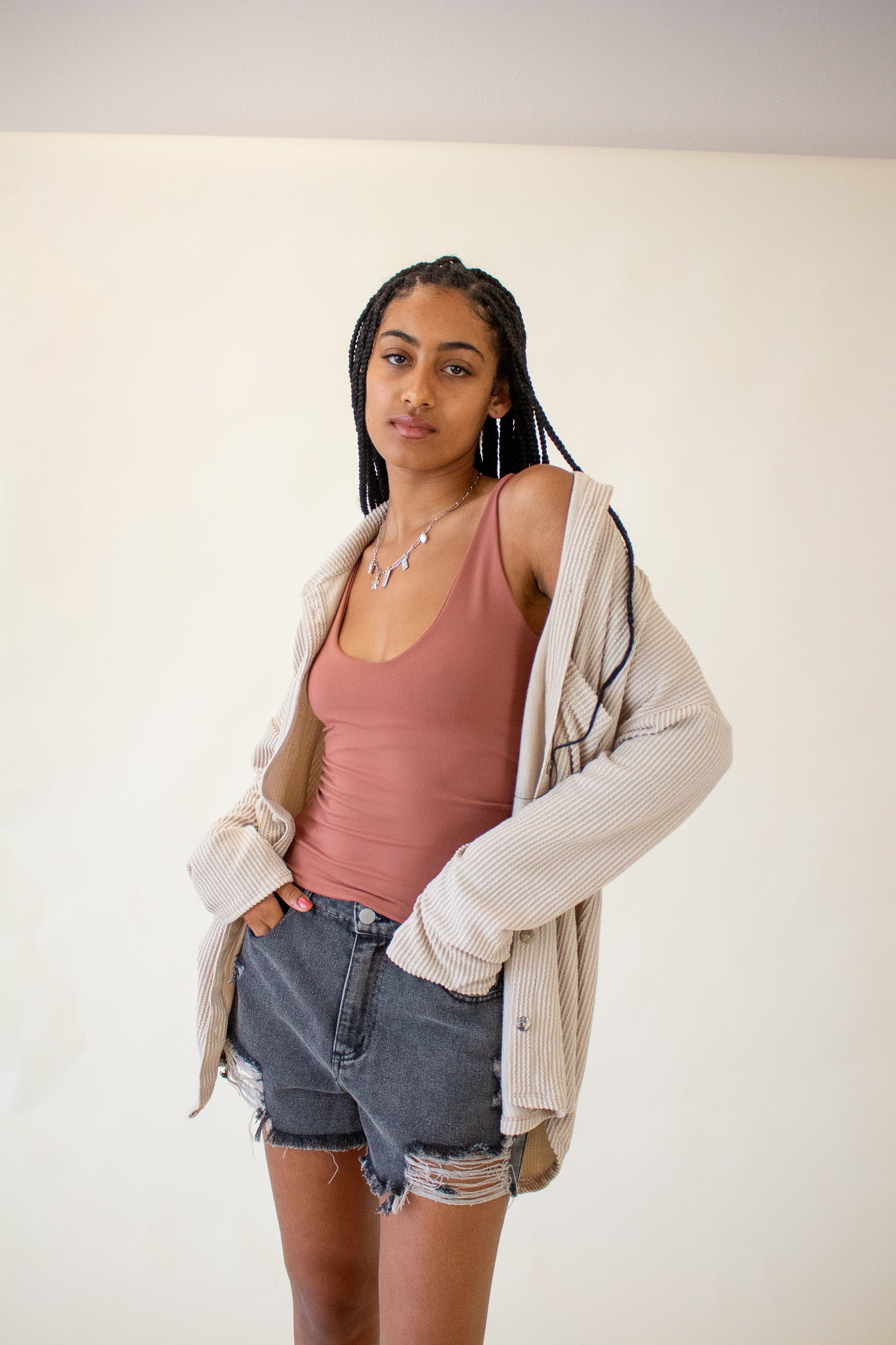 Our Brooke Top features a super soft ribbed texture, collared neckline, button front closure and oversized fit. We love the slouchy drop shoulders, long-line hem and wide cut bodice. Wear it layered over tanks and tees or as a beach coverup for your favorite swim.