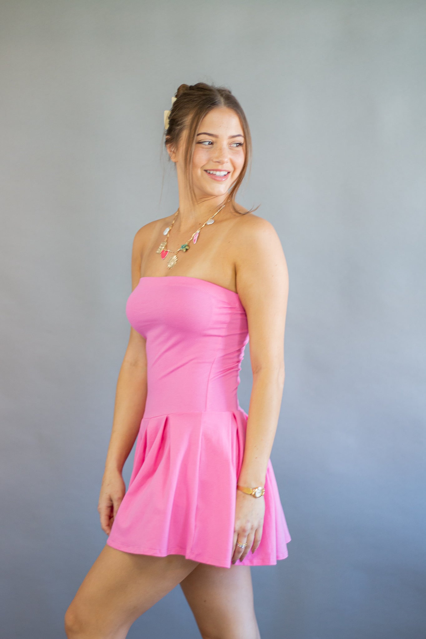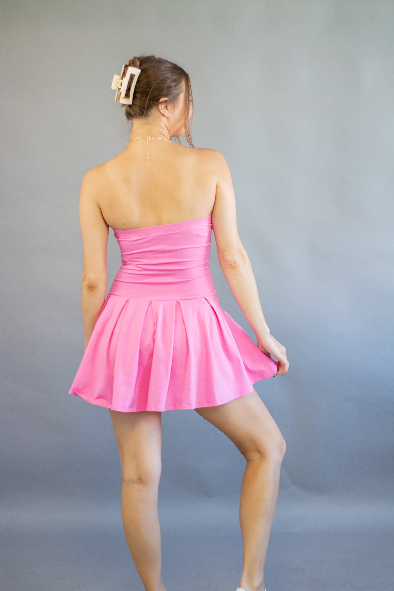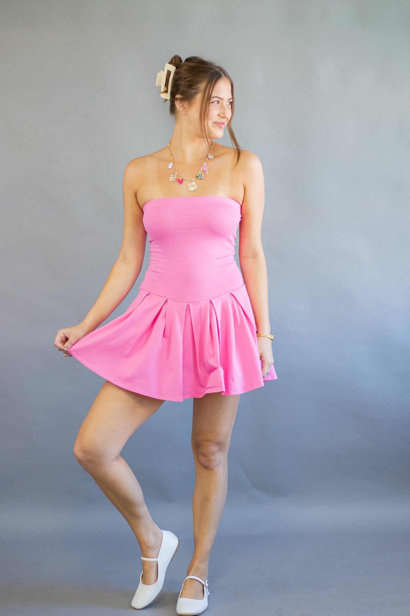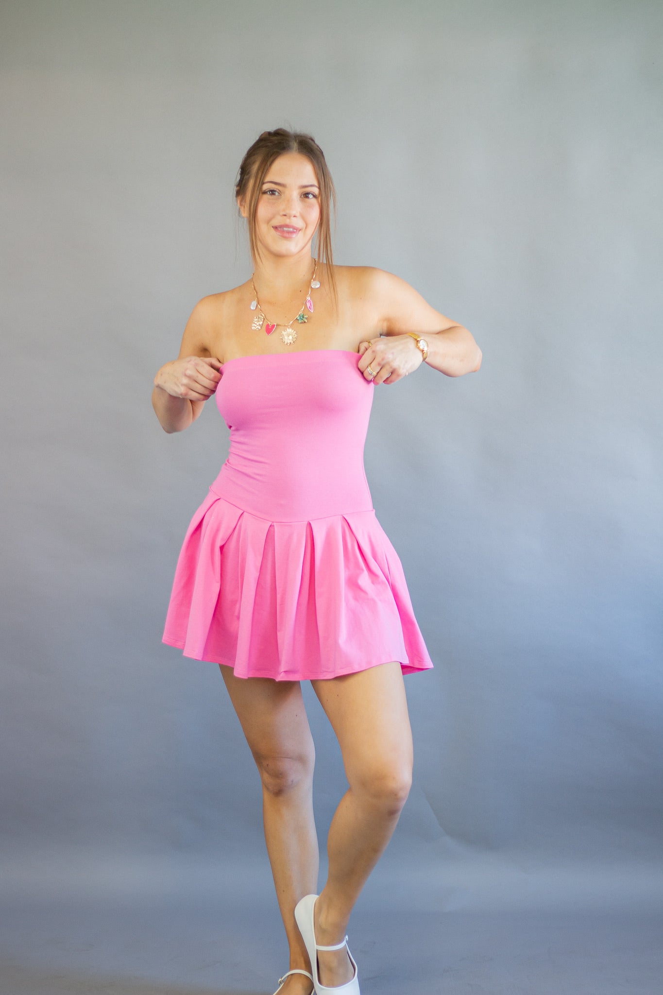 • All Over Pleated Detail Inside Shorts Tube Mini Dress