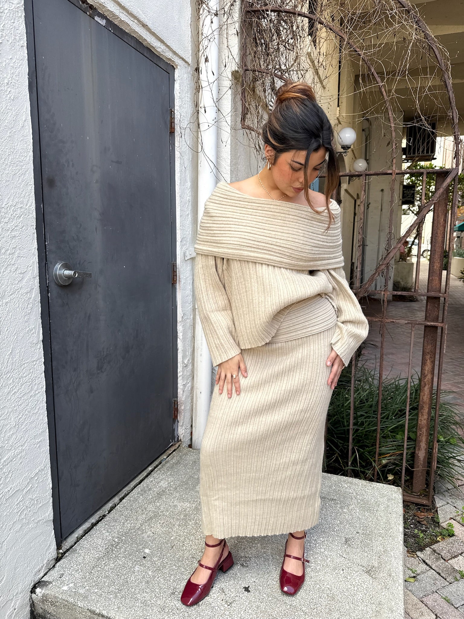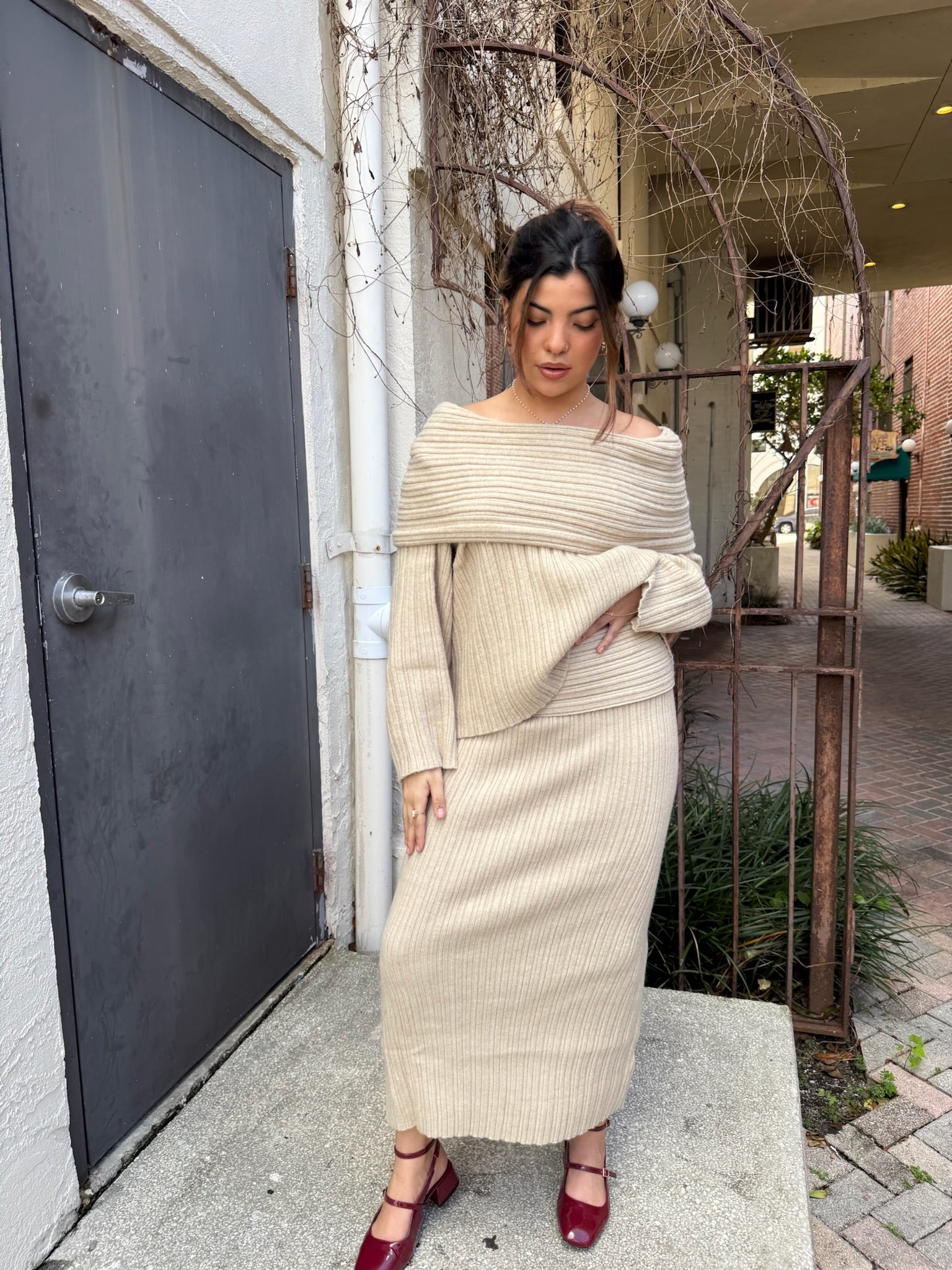 Step into effortless luxe with the Cozy Cafe Ribbed Sweater Maxi Skirt—the knit essential your fall-to-winter wardrobe has been waiting for. Designed with a flattering low-rise waist and figure-skimming ribbed knit, this skirt hugs in all the right places while offering stretch and comfort for all-day wear. The elongated maxi length creates a sleek silhouette that pairs perfectly with chunky boots, heeled mules, or your favorite matching sweater for a chic co-ord moment. Whether you're dressing it up for a holiday gathering or keeping it cozy for a coffee date, this piece delivers elevated minimalism with maximum impact.