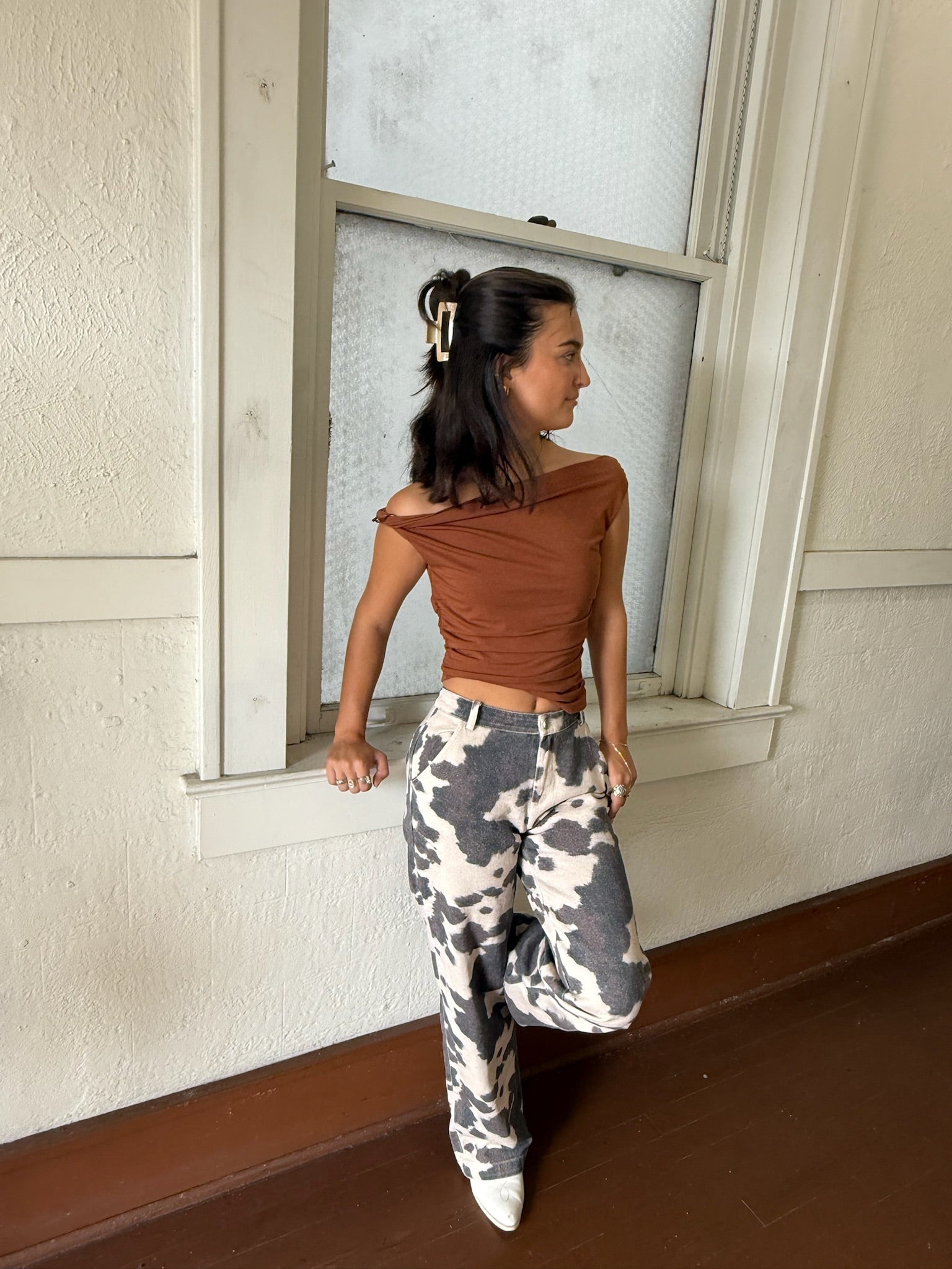 Effortless and modern, the Arlette Off-Shoulder Top is designed to flatter with a draped neckline and ruched sides that hug in all the right places. The soft stretch fabric gives it a comfortable yet elevated feel—perfect for pairing with denim, faux leather, or your favorite mini skirt for a sleek day-to-night look.