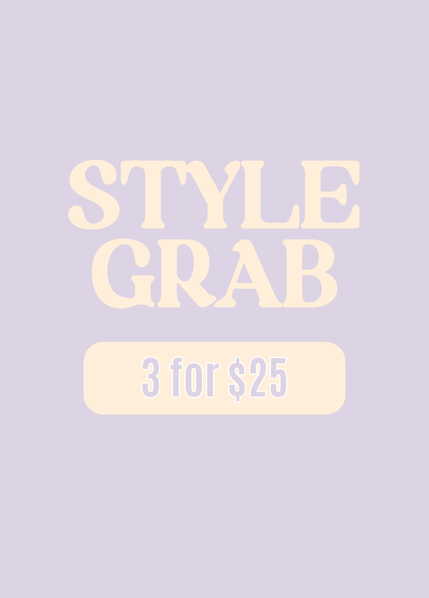 Ever need a pick me up but don't know what to get? That's what our Style Grab is here to solve! Each style grab will include 3 hand selected styles in the size you select. This grab bag can include a wide variety of styles, brand and colors. You might receive a top, bottom, dress, jumpsuit, romper, sweater, tank or something else! This is an incredible deal you can score on some Shellsea favorites. Note: If you purchase more than one Style Grab deal in one order, our team will ensure there aren't any exact duplicates. We can't promise in a future order you will not receive the same item again. **ALL ITEMS ARE FINAL SALE**
