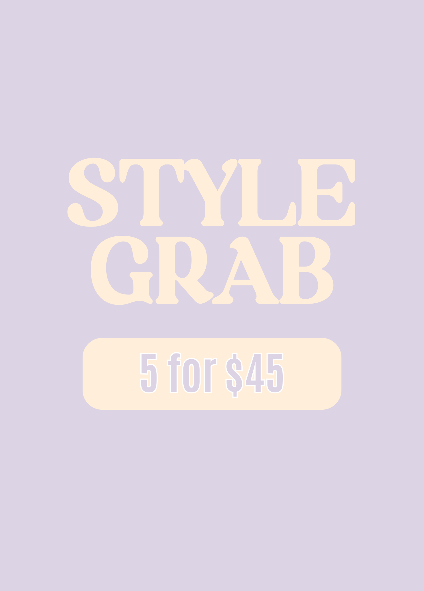 Ever need a pick me up but don't know what to get? That's what our Style Grab is here to solve! Each style grab will include 5 hand selected styles in the size you select. This grab bag can include a wide variety of styles, brand and colors. You might receive a top, bottom, dress, jumpsuit, romper, sweater, tank or something else! This is an incredible deal you can score on some Shellsea favorites. Note: If you purchase more than one Style Grab deal in one order, our team will ensure there aren't any exact duplicates. We can't promise in a future order you will not receive the same itemĀ again. **ALL ITEMS AREĀ FINAL SALE**