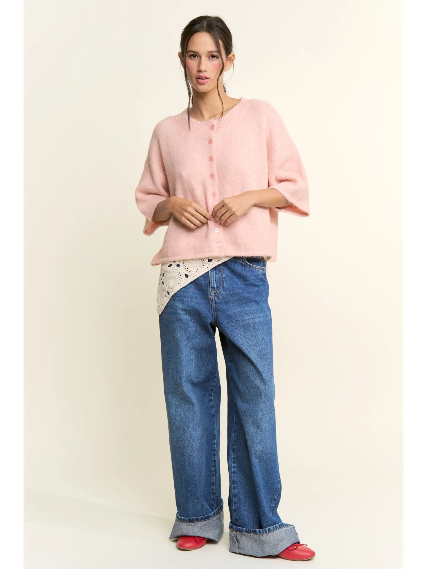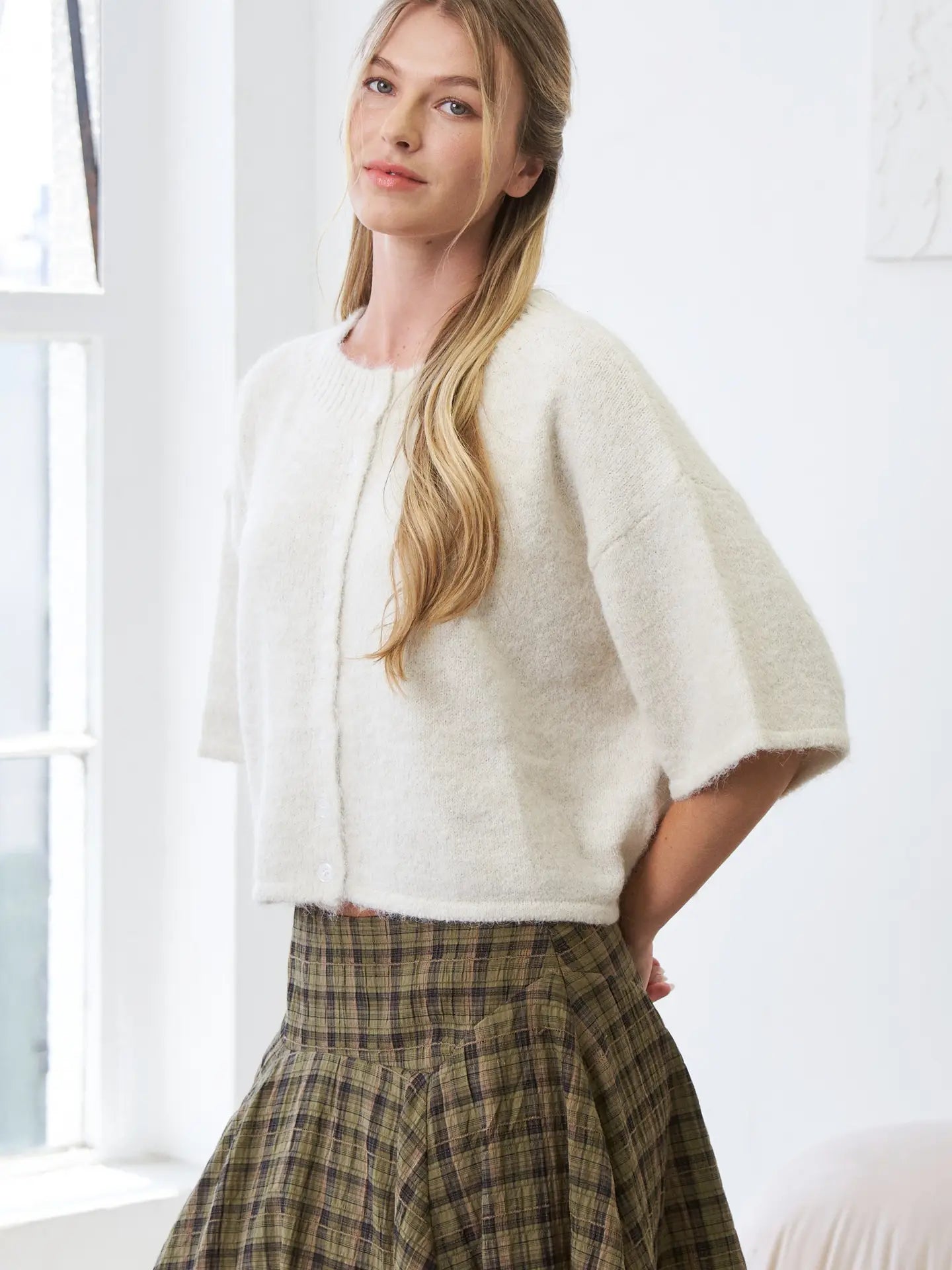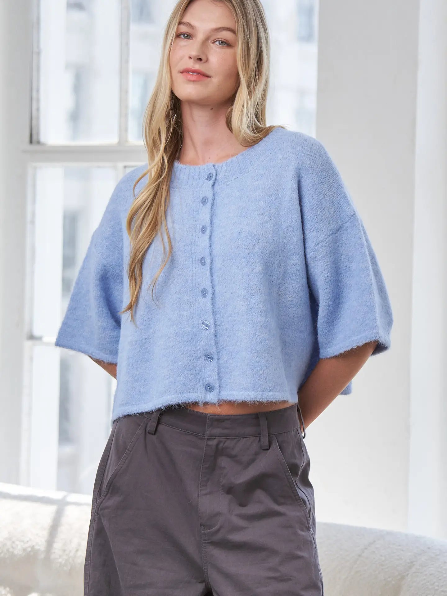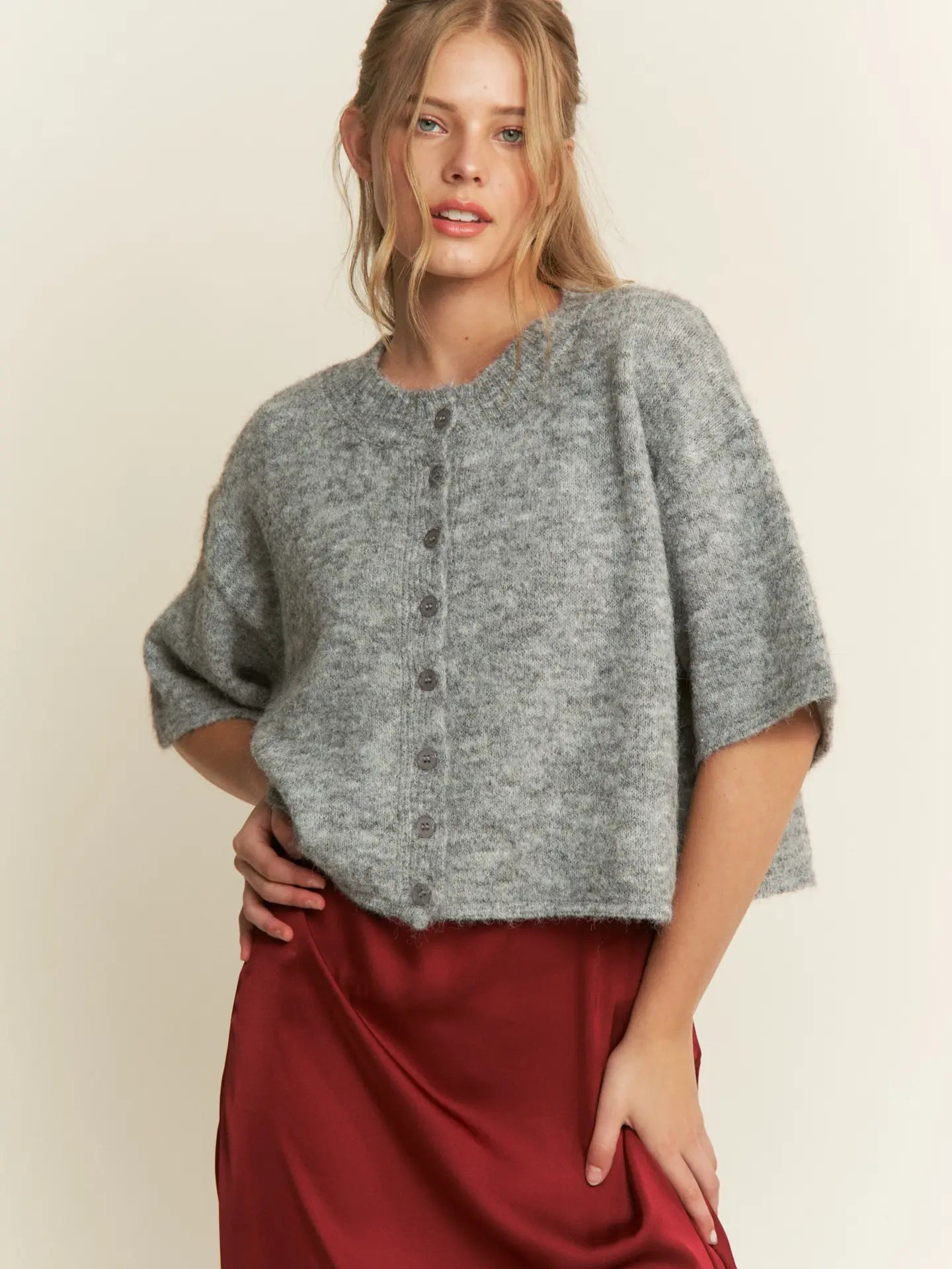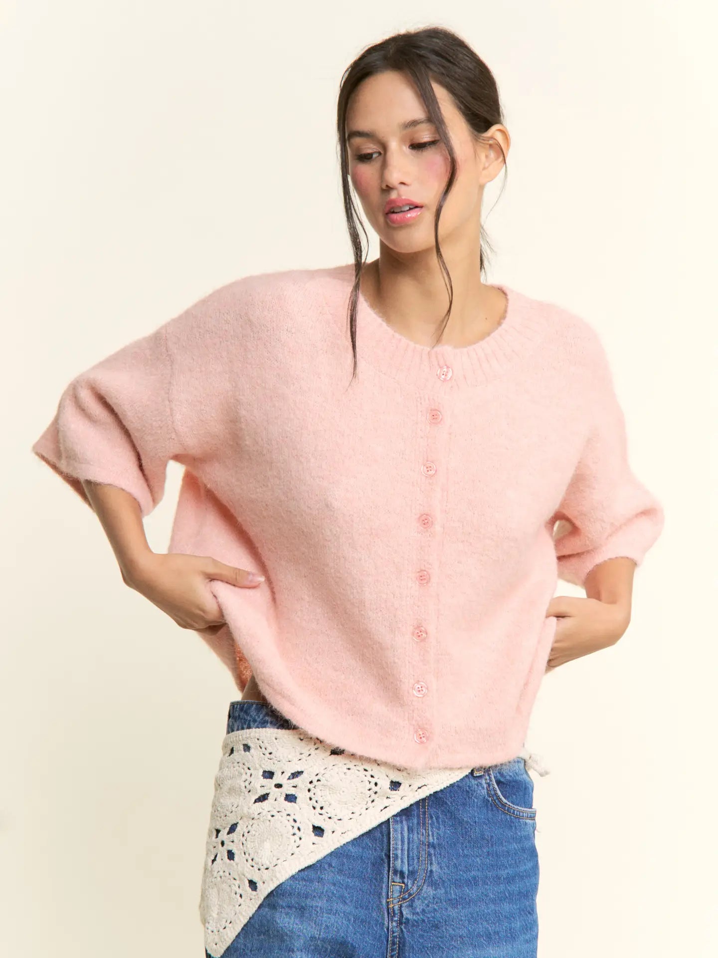 Cozy meets elevated in the Sutton Knit Button Top — the perfect lightweight layer for transitional weather. Featuring a soft brushed knit texture and relaxed drop-shoulder fit, Sutton adds effortless polish to any outfit. The wide elbow-length sleeves and ribbed neckline give it that modern touch, while the stretch fabric keeps things comfy all day long.