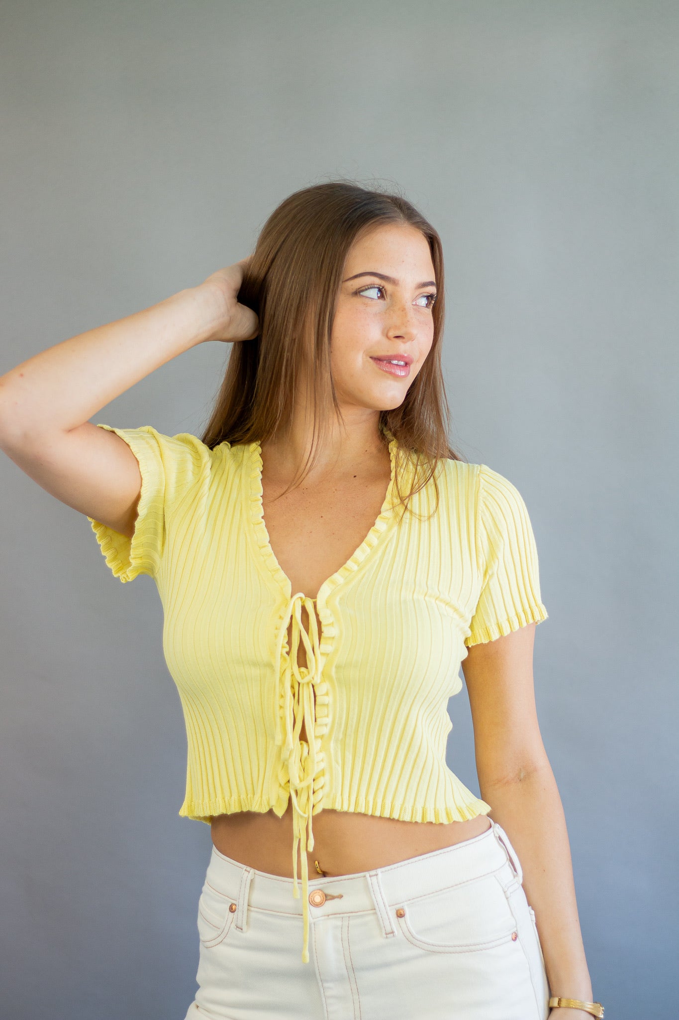 Ally Ribbed Tie Top Yellow