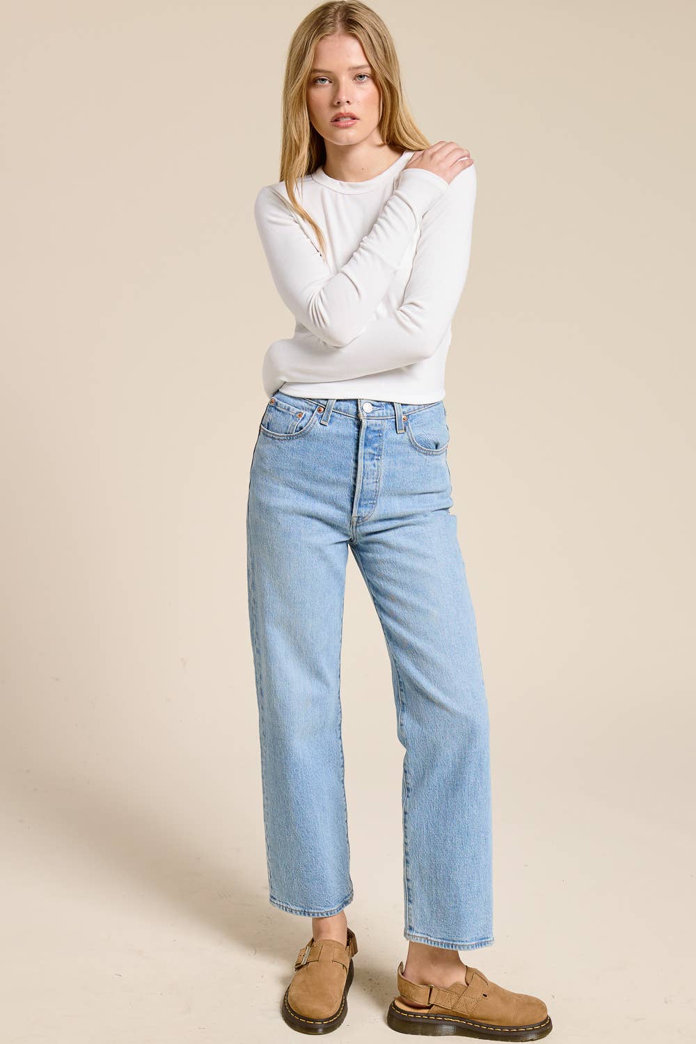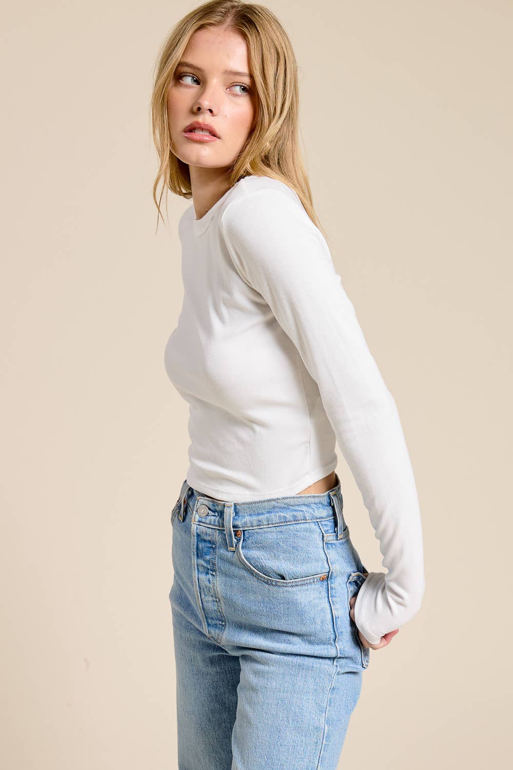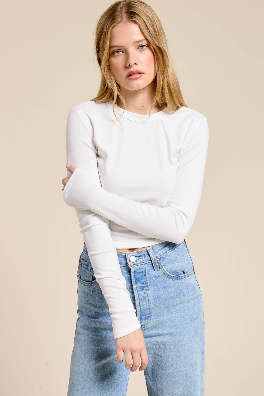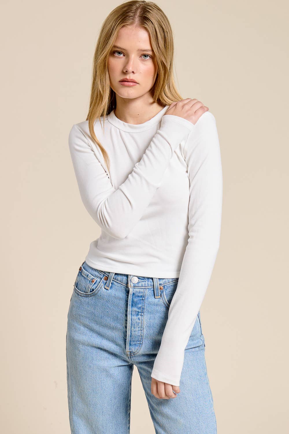 Elevate your essentials collection with our Classic Long Sleeve Crewneck Tee . Designed with a timeless silhouette, this top features a flattering crew neckline, full-length sleeves, and a clean, minimal finish. It offers a smooth and lightweight feel that's perfect for layering or wearing on its own. The tailored yet relaxed fit pairs effortlessly with denim, trousers, or skirts - making it a versatile staple for everyday styling.