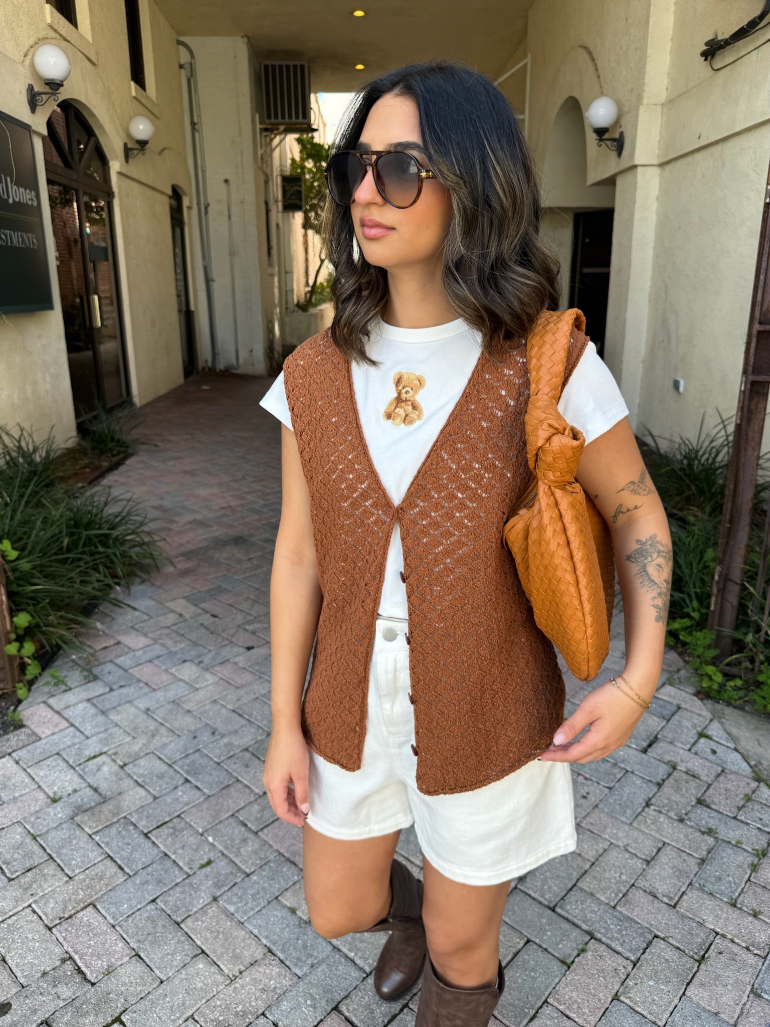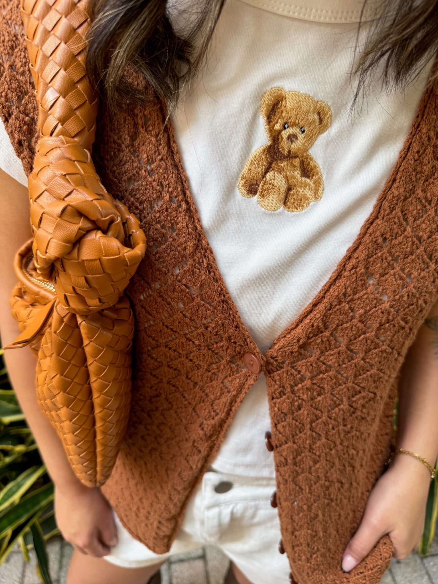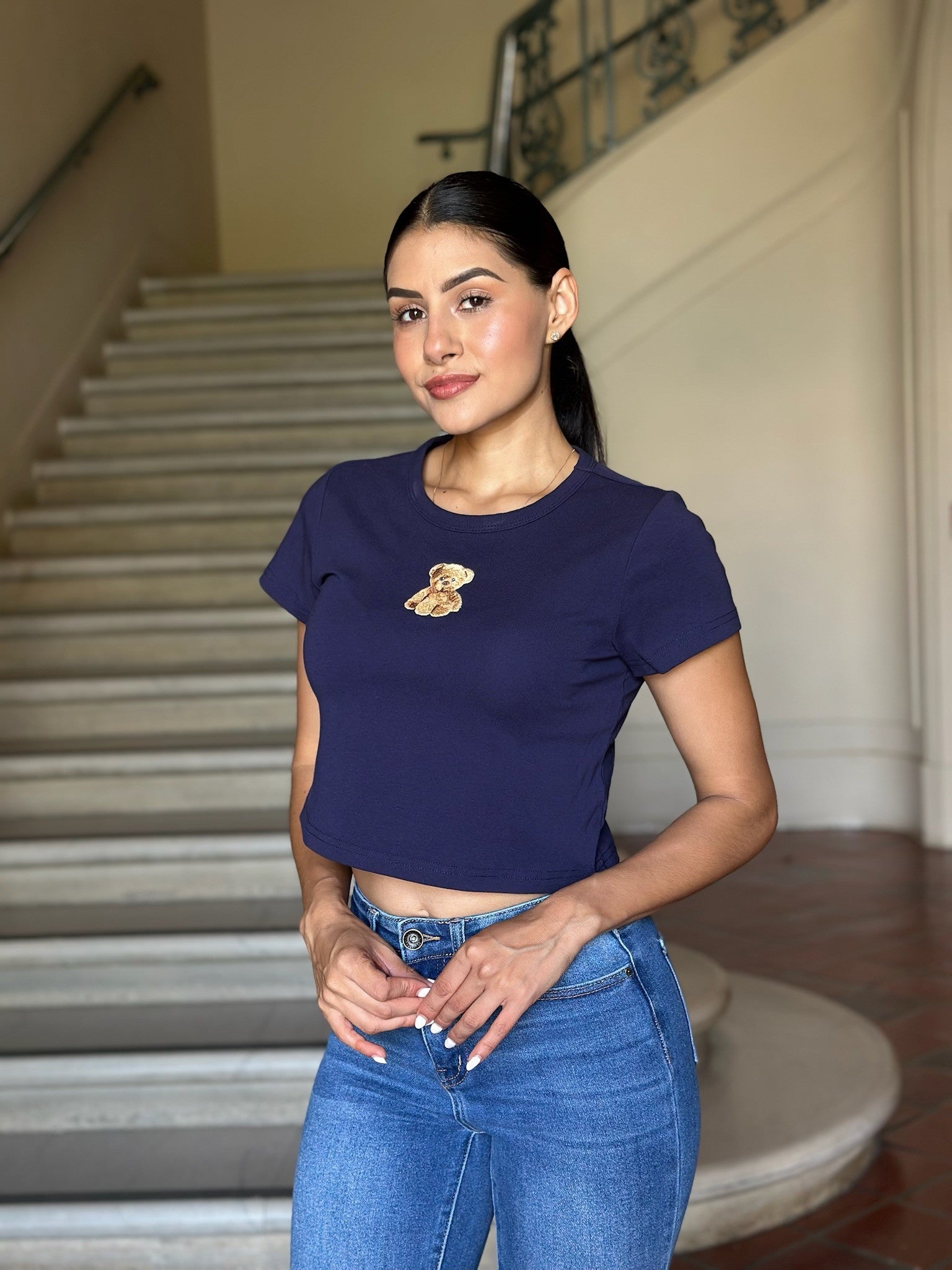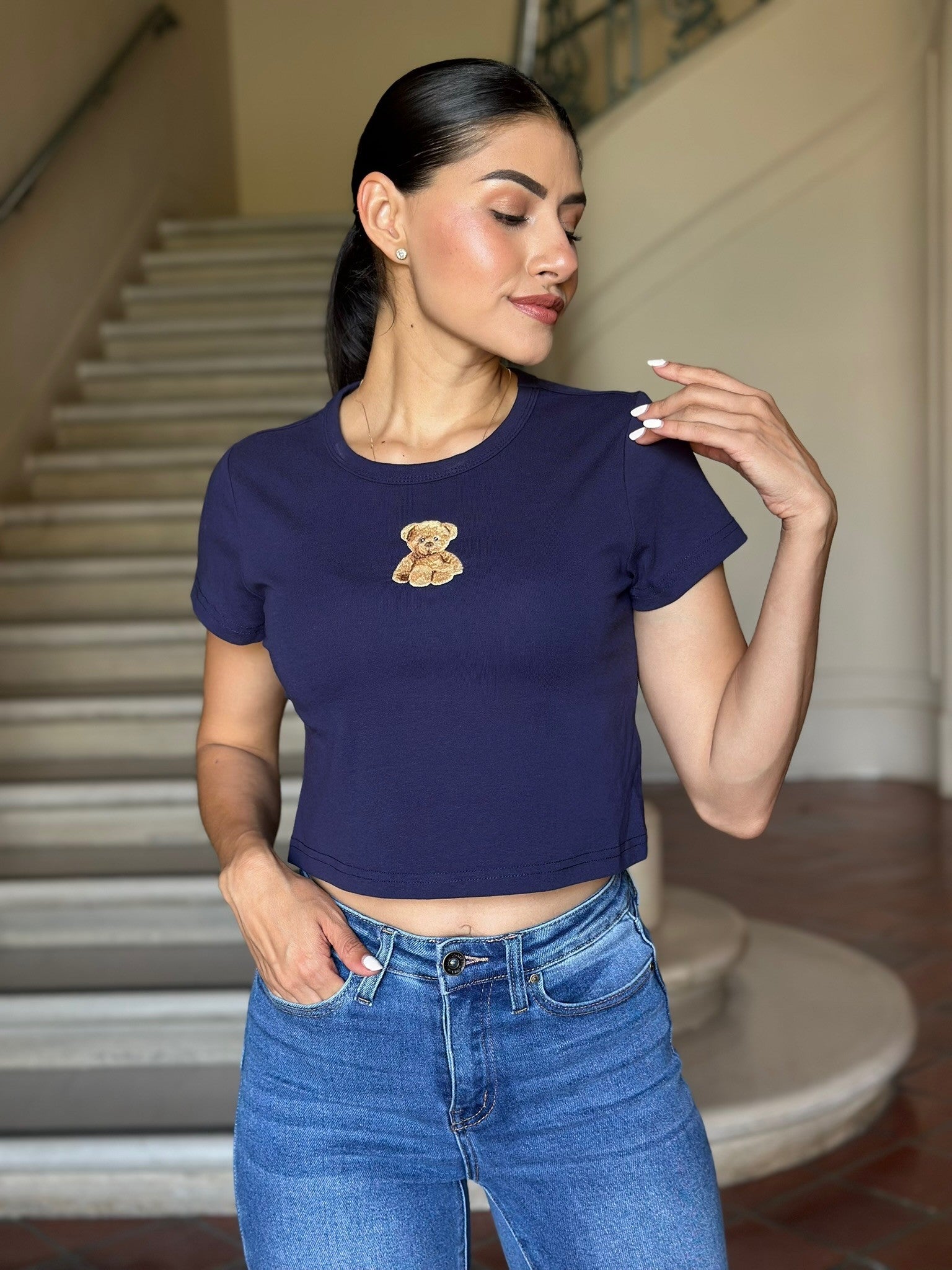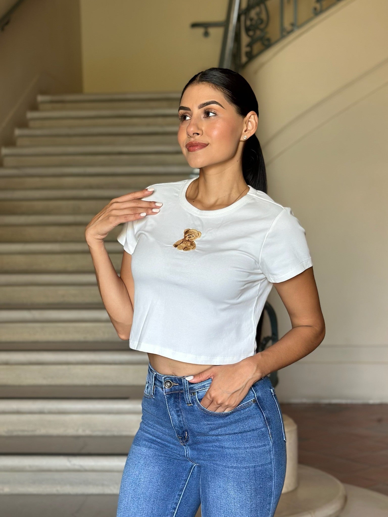 The Teddy Charm Embroidered Tee is the playful basic your wardrobe’s been waiting for. Crafted from 100% cotton, this cropped tee features a round neckline, cap sleeves, and the cutest embroidered teddy bear detail front and center. The relaxed fit keeps it comfy for everyday wear, while the cropped cut makes it perfect for pairing with high-rise denim, skirts, or shorts. It’s casual, flirty, and just the right amount of fun.
