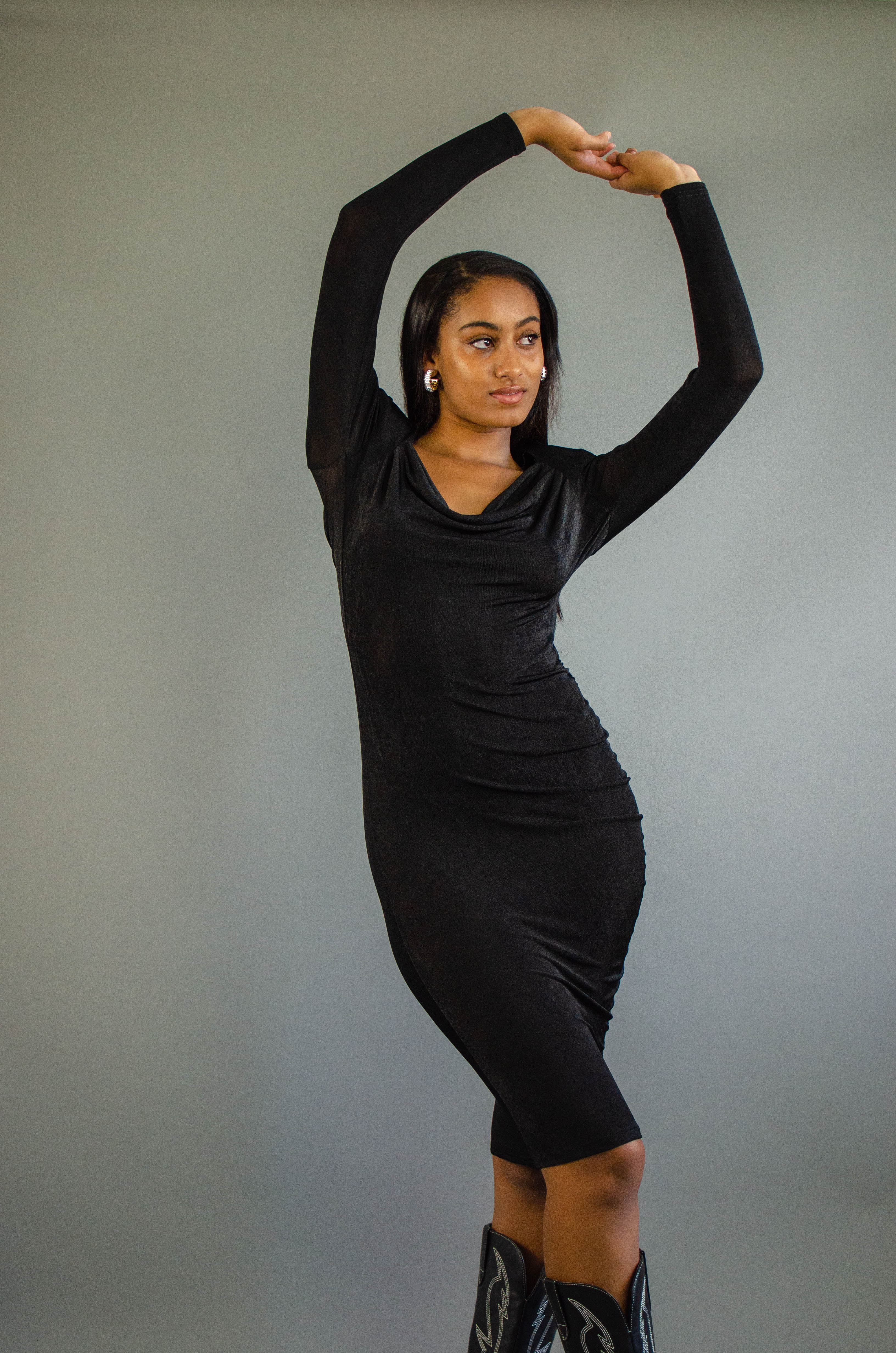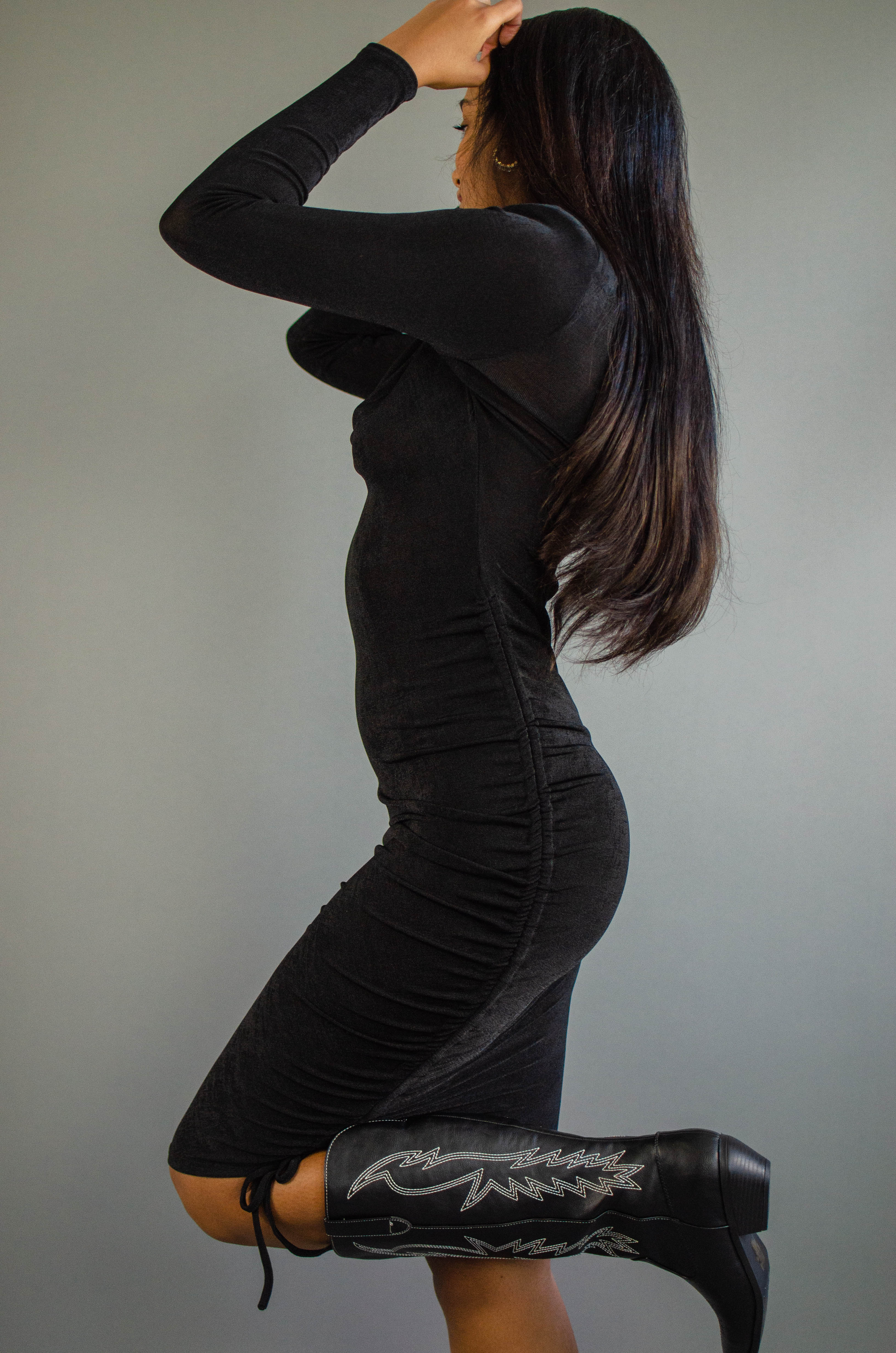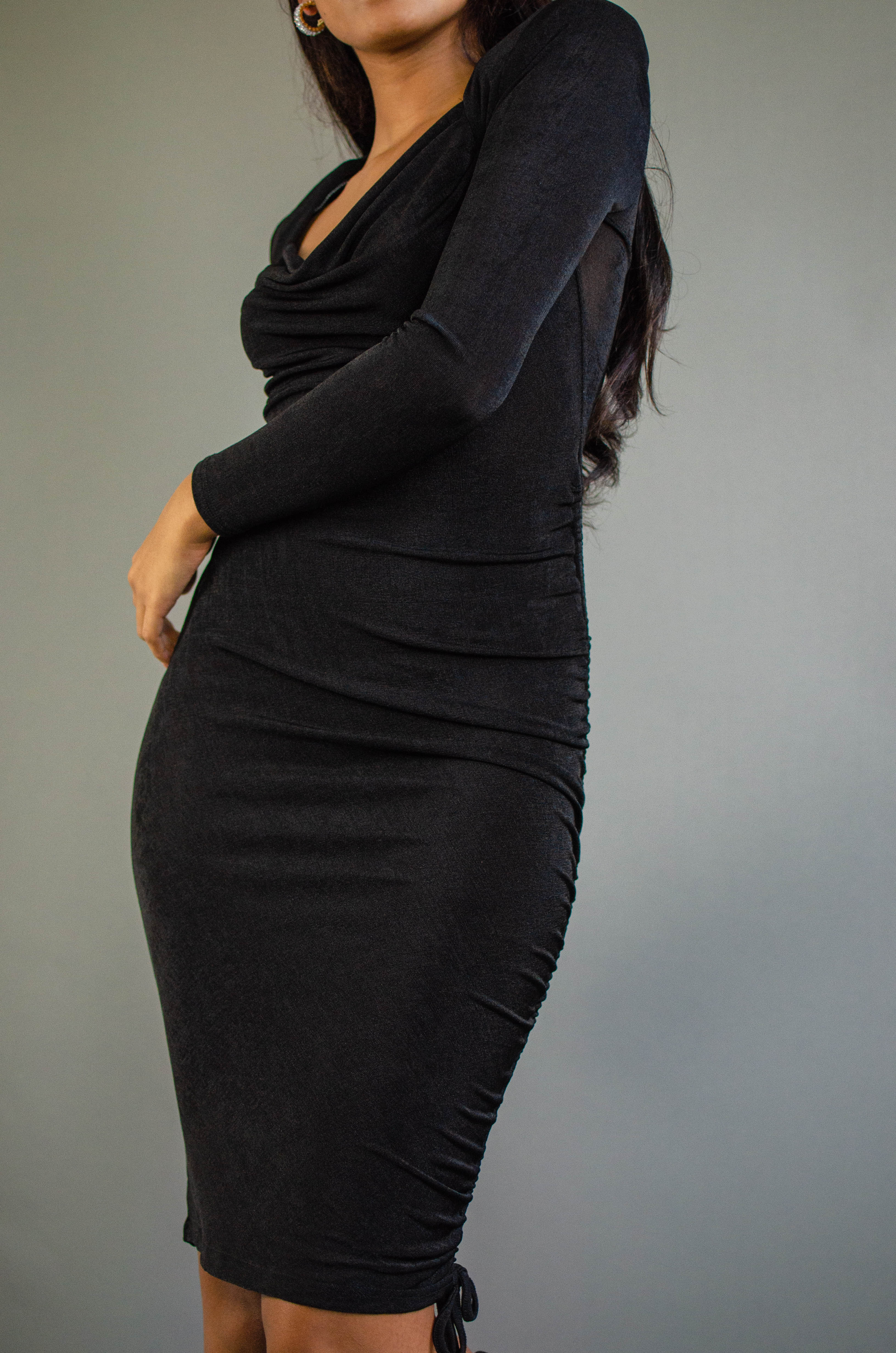Ava Ruched Cowl Neck Dress Black