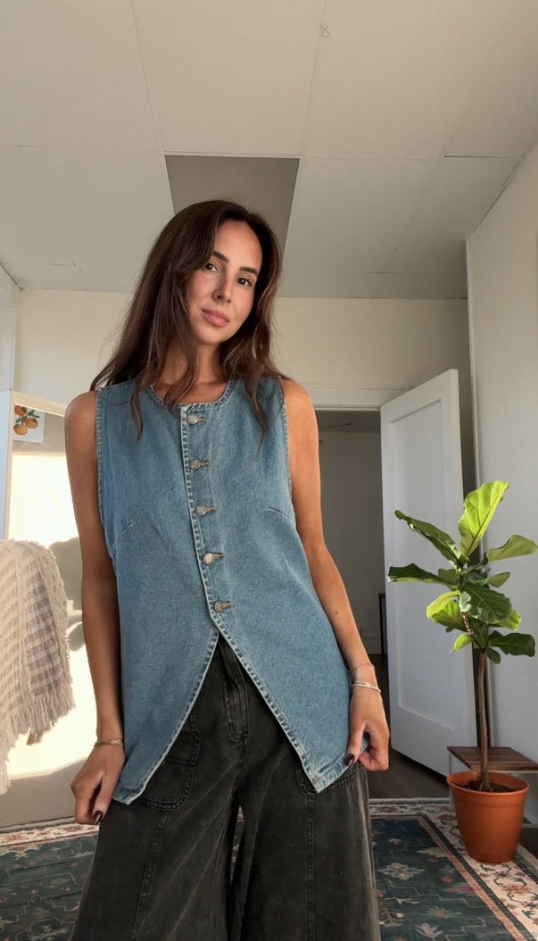 Say hello to Holley — the denim vest that feels like vintage Western meets 2025 cool girl energy. Designed with a clean scoop neckline, exposed button front, and that perfectly structured denim weight, this piece instantly turns any outfit into a moment.