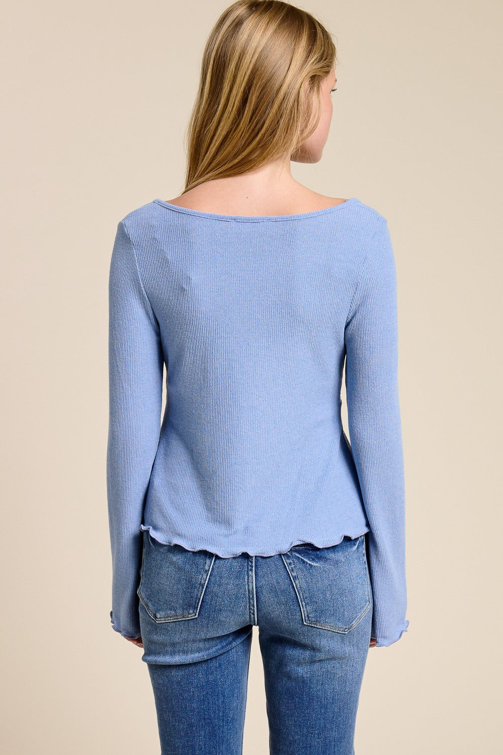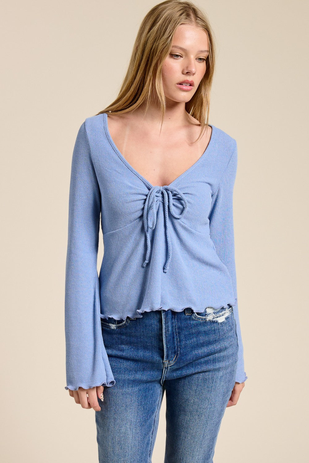 Add a touch of shape and style with the Selah Tie-Front Top. Designed with a flattering gathered front and adjustable tie detail, Selah lets you customize your fit while highlighting your waistline. The long sleeves and soft, stretchy fabric make her the perfect transitional piece you’ll wear from season to season.