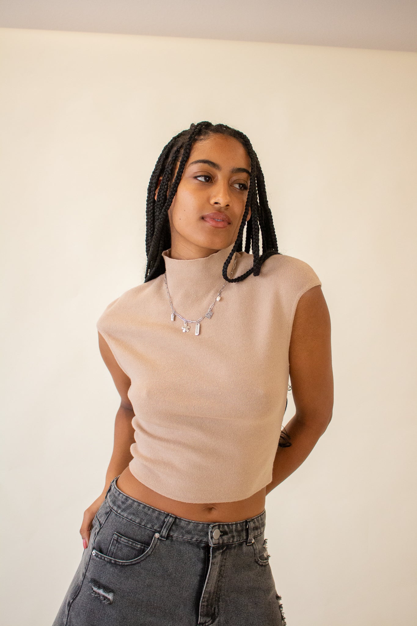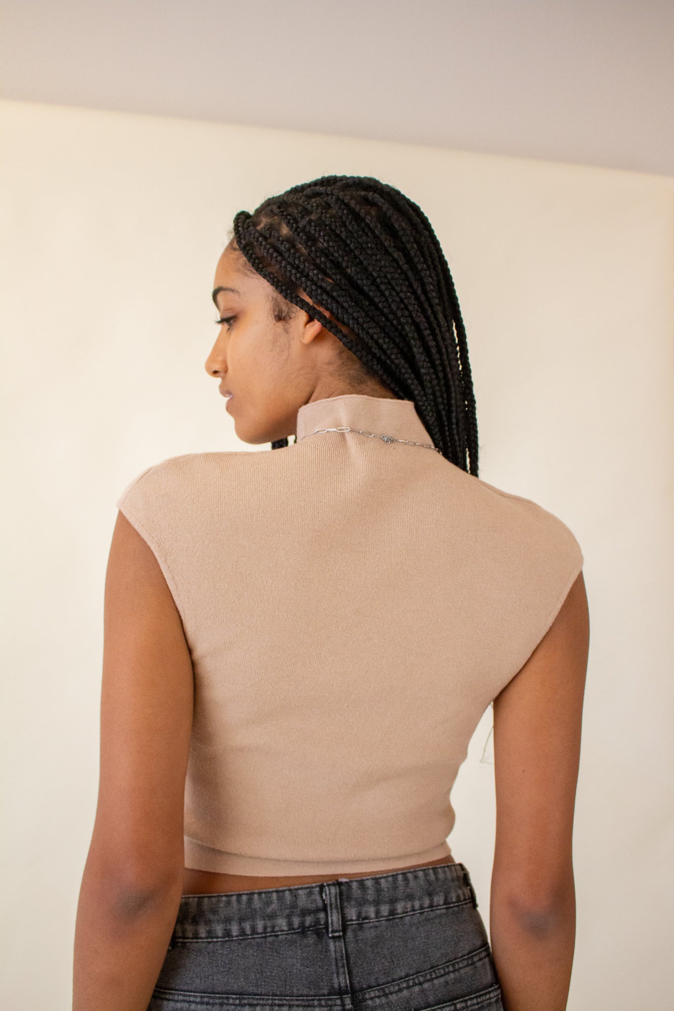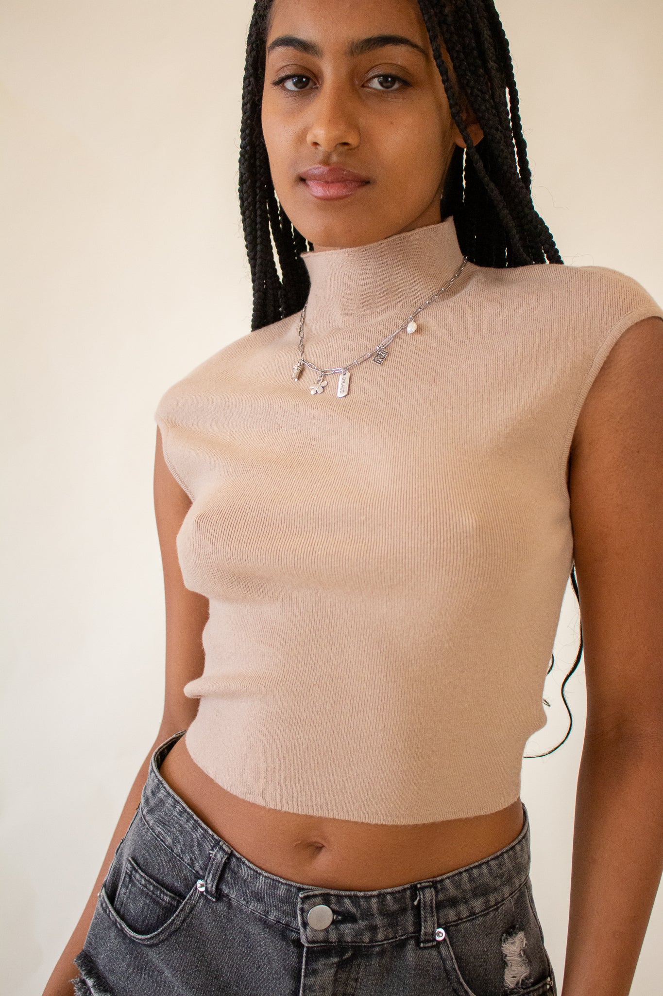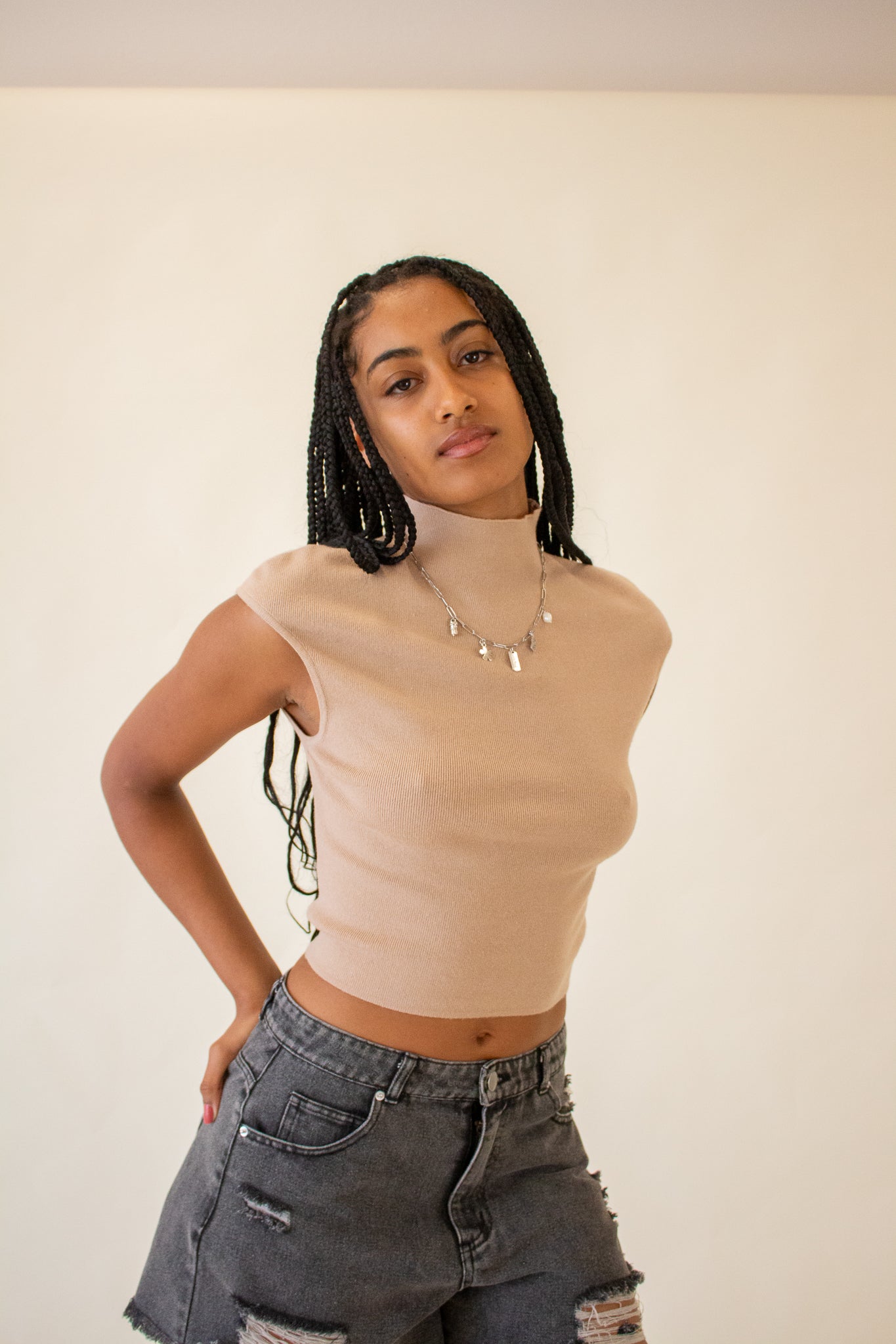 Our Shay Top is a chic and classy staple to wear all year round. Features a mini mock neckline, capped sleeveless cut, mid-waist crop hem, super soft tight knit weave and smooth seamless look. Wear with trousers and a sleek bun for the office or a floral maxi and statement earring for brunch with the fam!