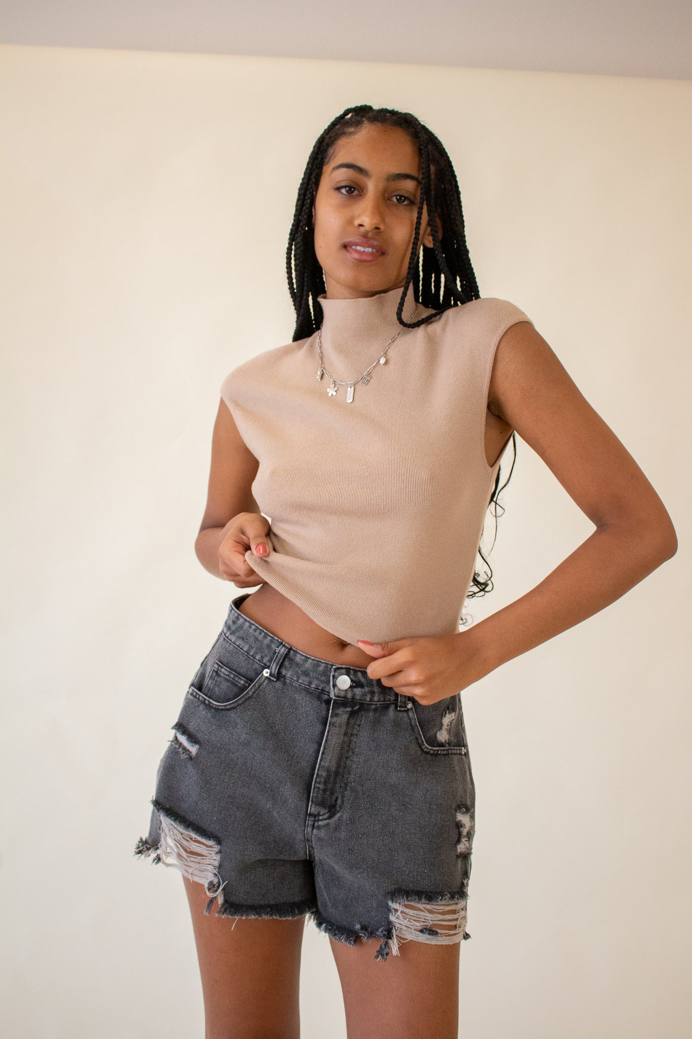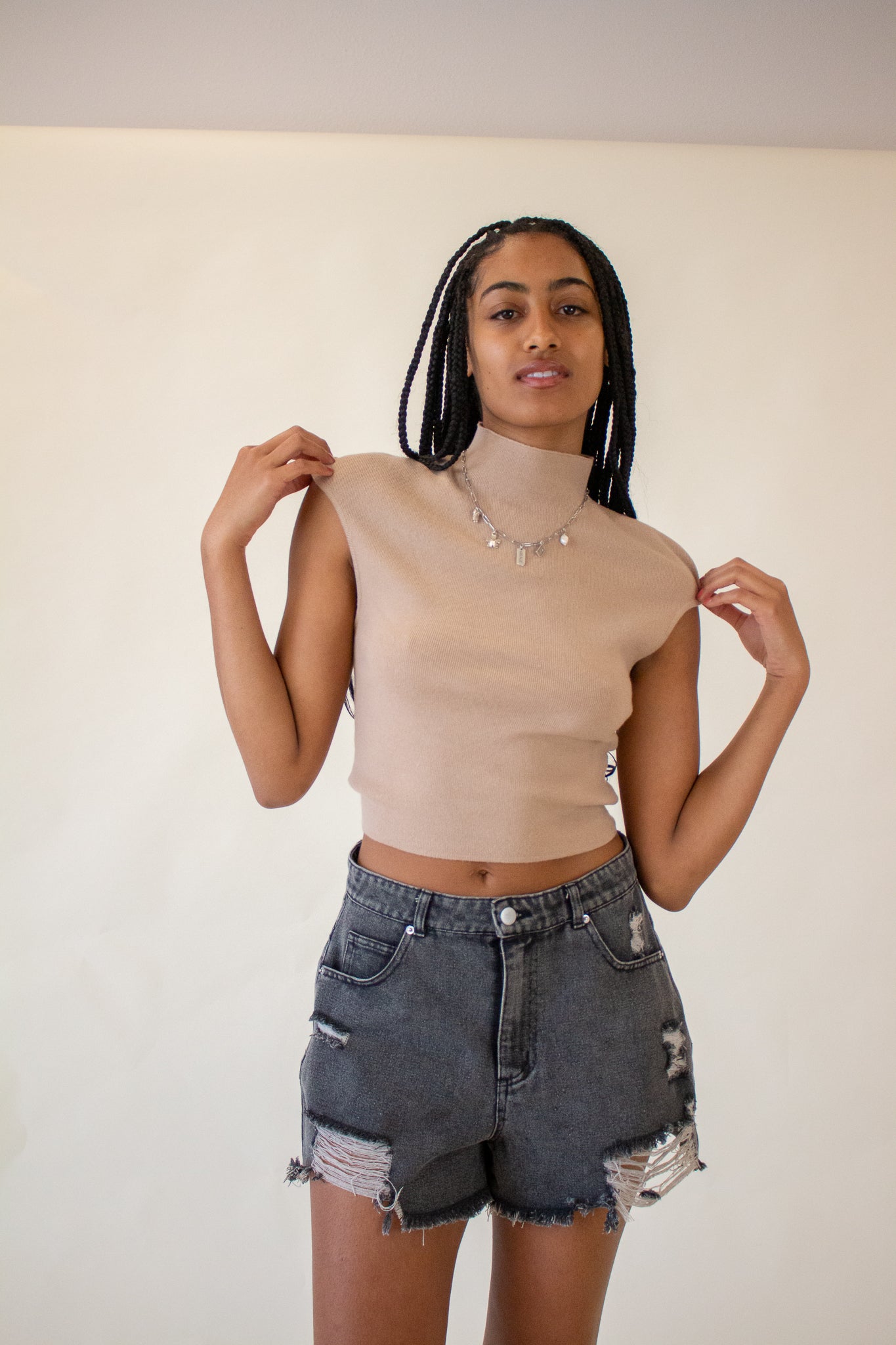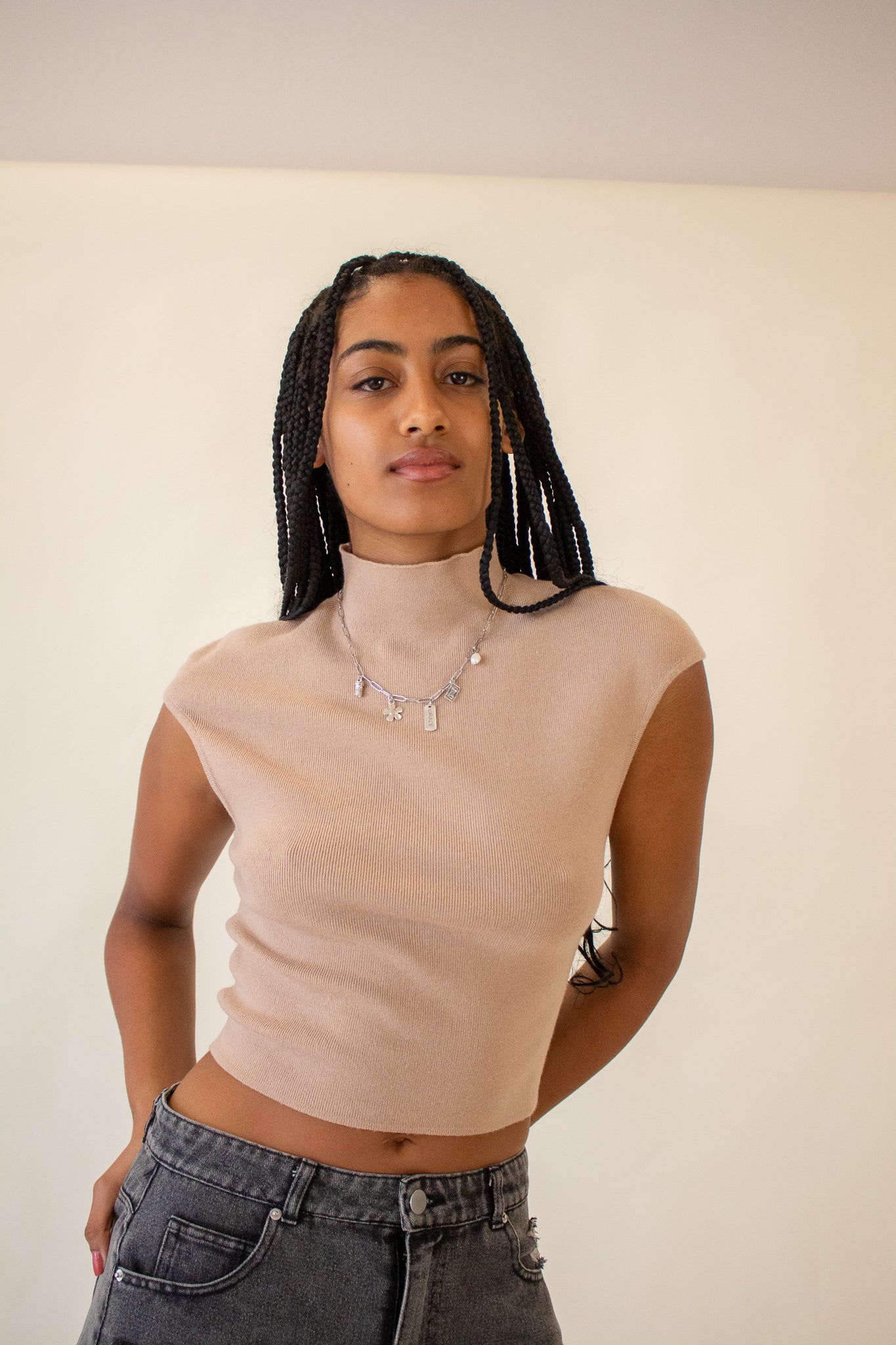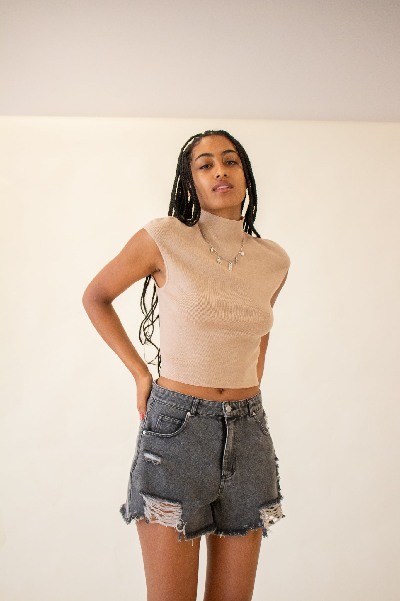 Our Shay Top is a chic and classy staple to wear all year round. Features a mini mock neckline, capped sleeveless cut, mid-waist crop hem, super soft tight knit weave and smooth seamless look. Wear with trousers and a sleek bun for the office or a floral maxi and statement earring for brunch with the fam!