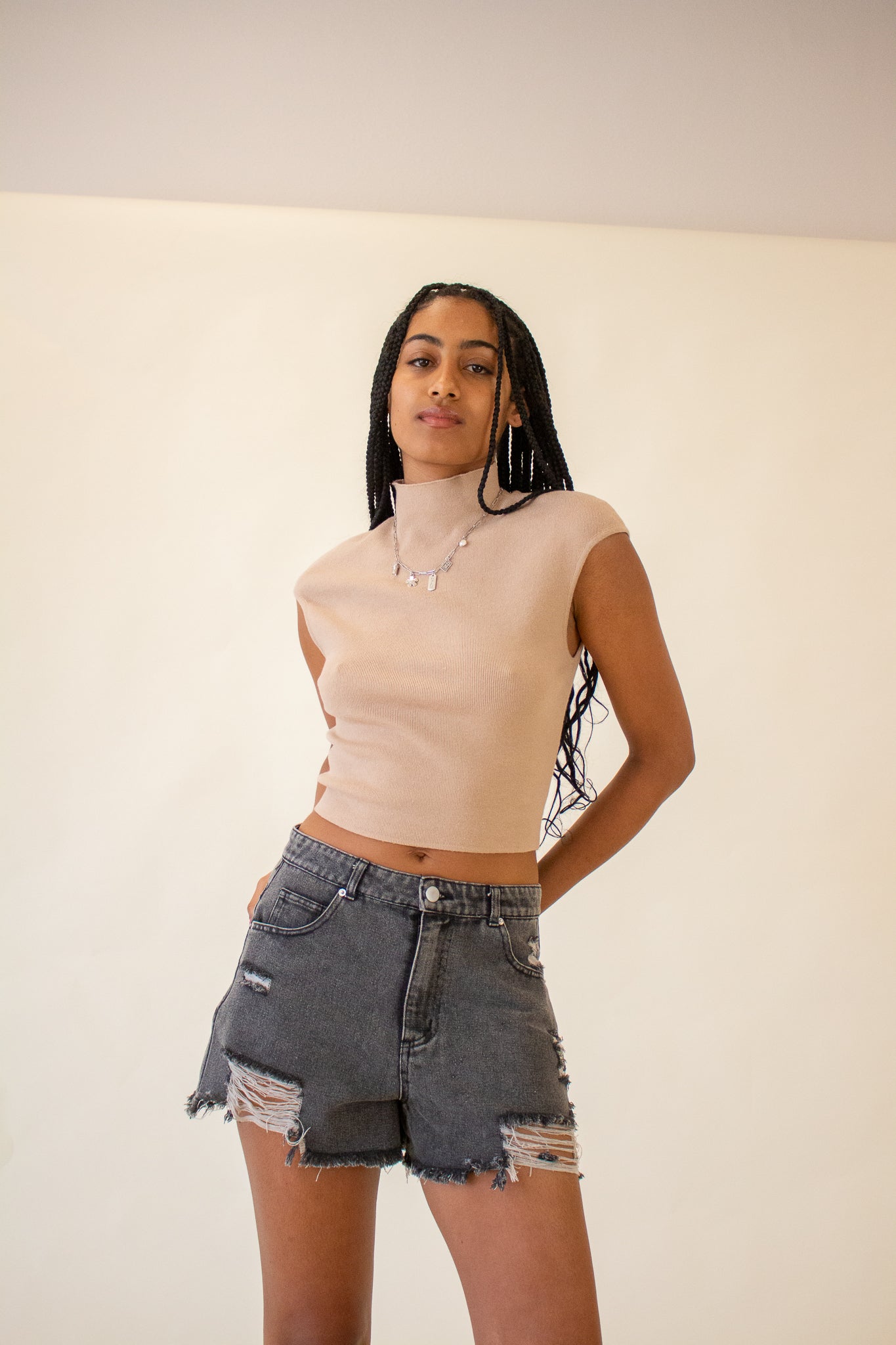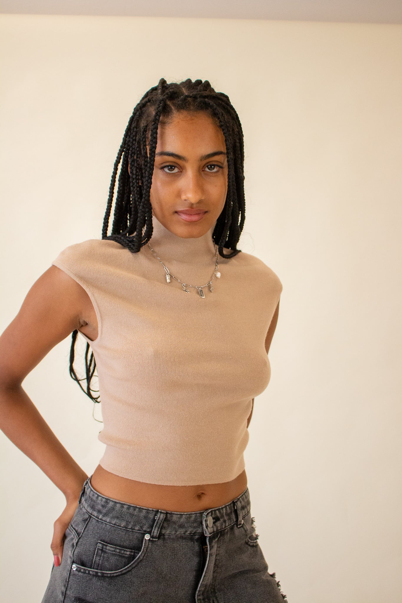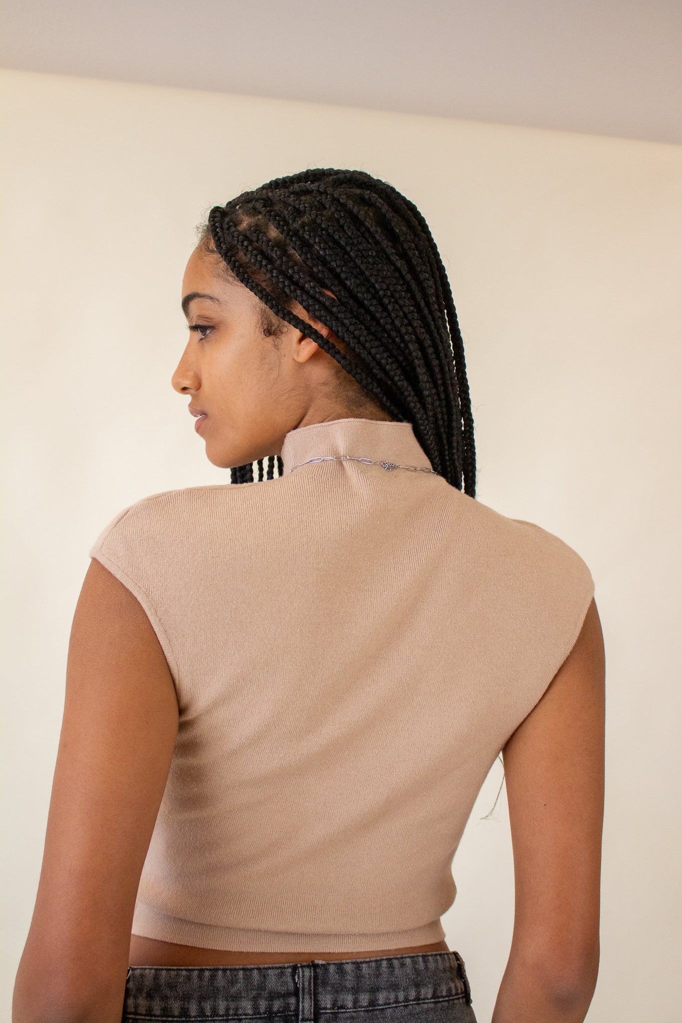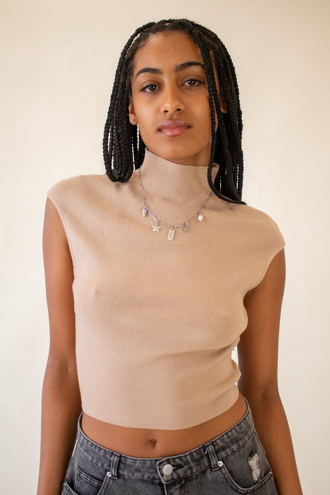 Our Shay Top is a chic and classy staple to wear all year round. Features a mini mock neckline, capped sleeveless cut, mid-waist crop hem, super soft tight knit weave and smooth seamless look. Wear with trousers and a sleek bun for the office or a floral maxi and statement earring for brunch with the fam!