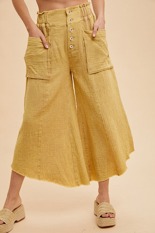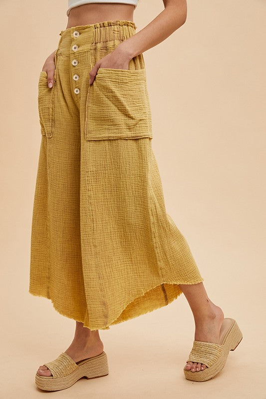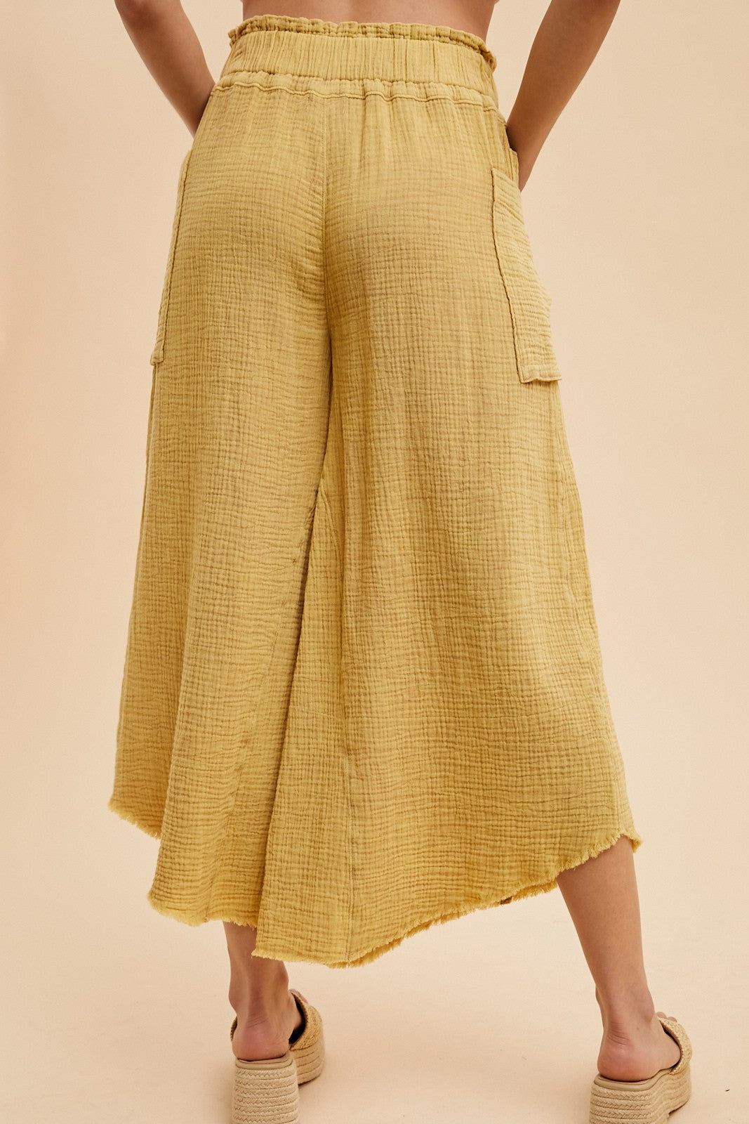 Breezy and effortlessly cool, the Delara Linen Wide Leg Pants are made for relaxed days with elevated style. Featuring a mineral-washed finish for that lived-in, coastal feel, Delara offers a wide elastic waistband for comfort, functional patch pockets, and an asymmetrical frayed hem that adds just the right touch of edge. The loose wide-leg fit flows beautifully with every step—perfect for vacation days, beach strolls, or styling with your favorite tanks and knits.