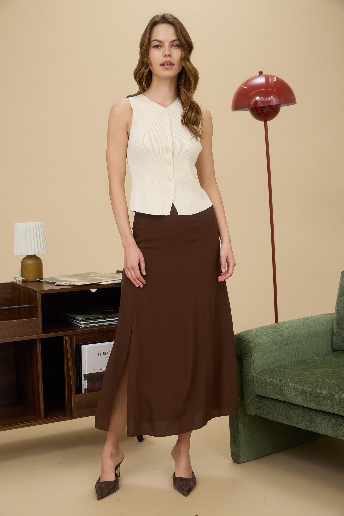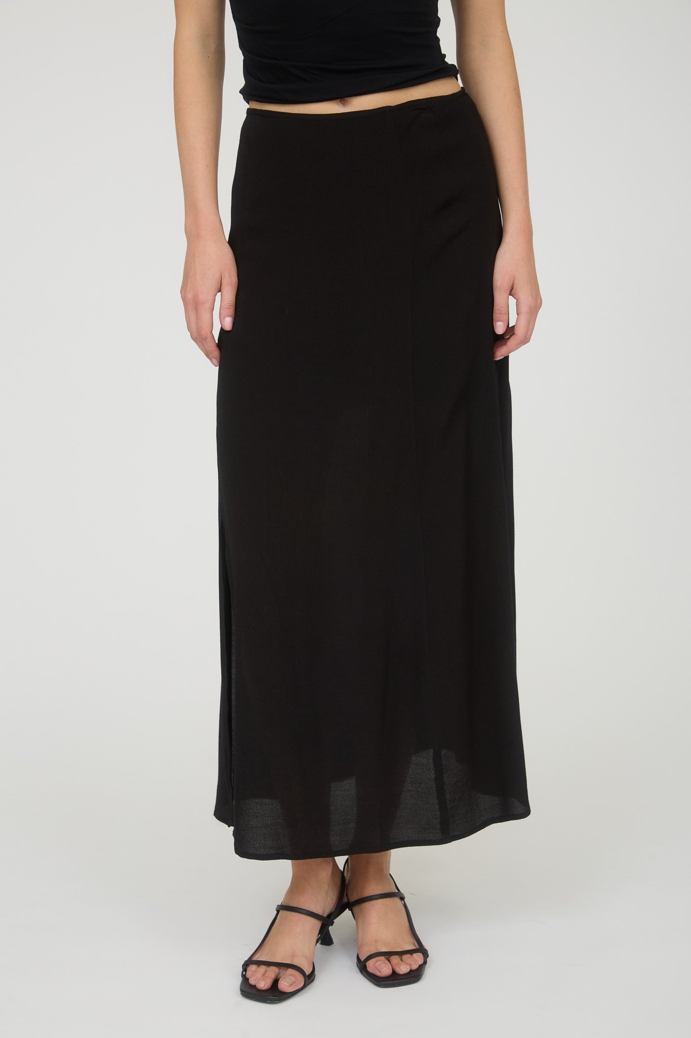 Sophisticated yet effortlessly wearable — the Margot Midi Skirt is designed to move with you. Crafted from a lightweight, flowy fabric with a flattering high waist and sleek side slit, this piece brings timeless elegance to any look. The smooth lining and invisible back zipper closure create a seamless fit that’s perfect for dressing up or keeping casual.