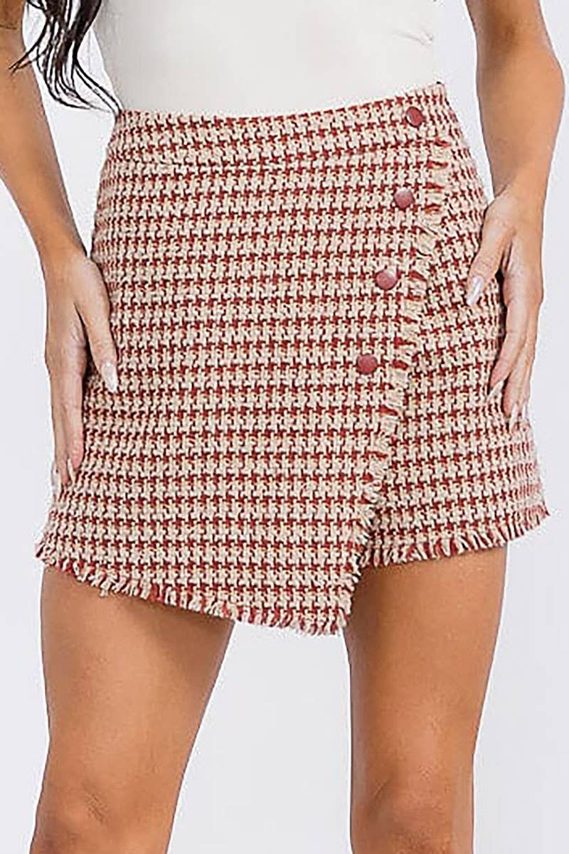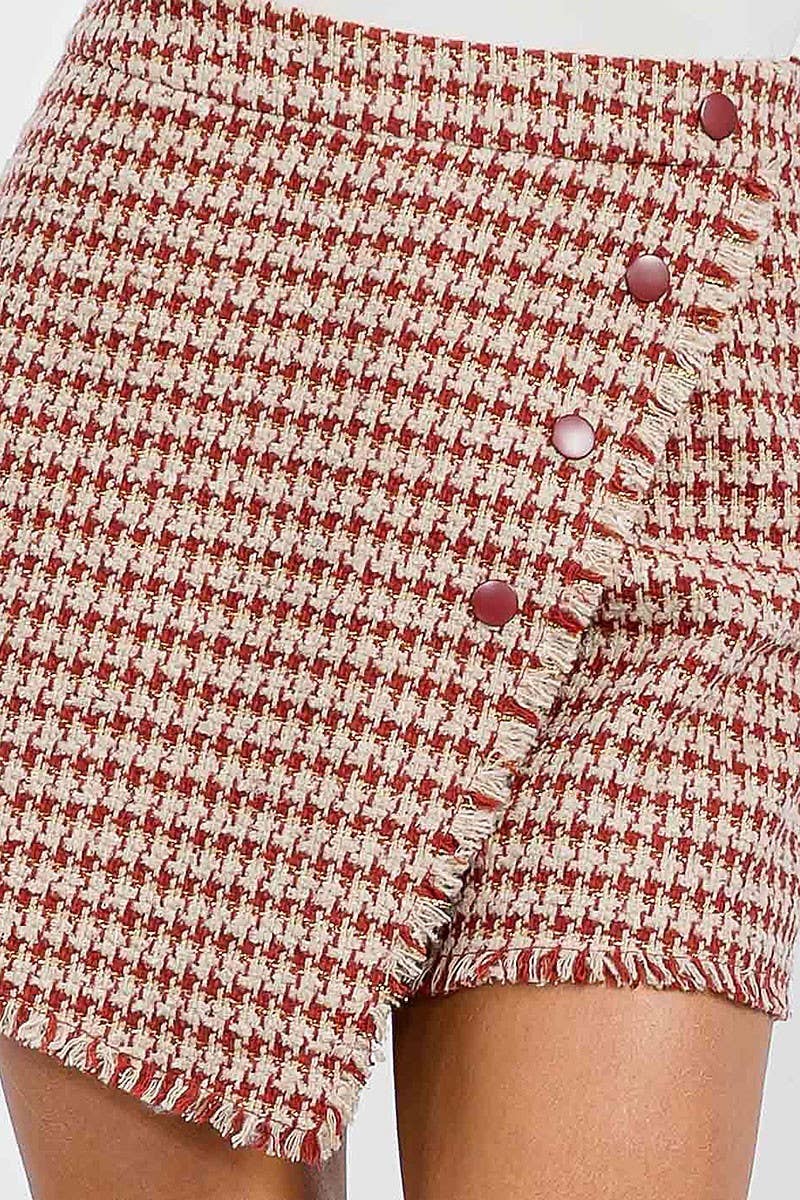 Chic, festive, and full of sparkle — the Rodeo Tweed Skort brings timeless holiday elegance with a modern twist. Designed in a luxe metallic tweed, this surplice-style mini skort features a subtle shimmer that catches the light perfectly. The zipper closure and tailored silhouette give it a sleek, flattering fit, while the built-in shorts offer comfort and confidence for any occasion.