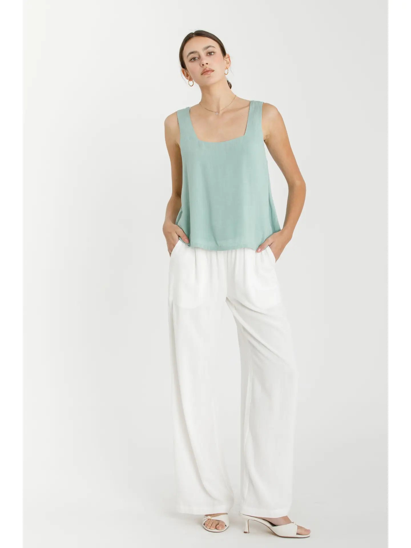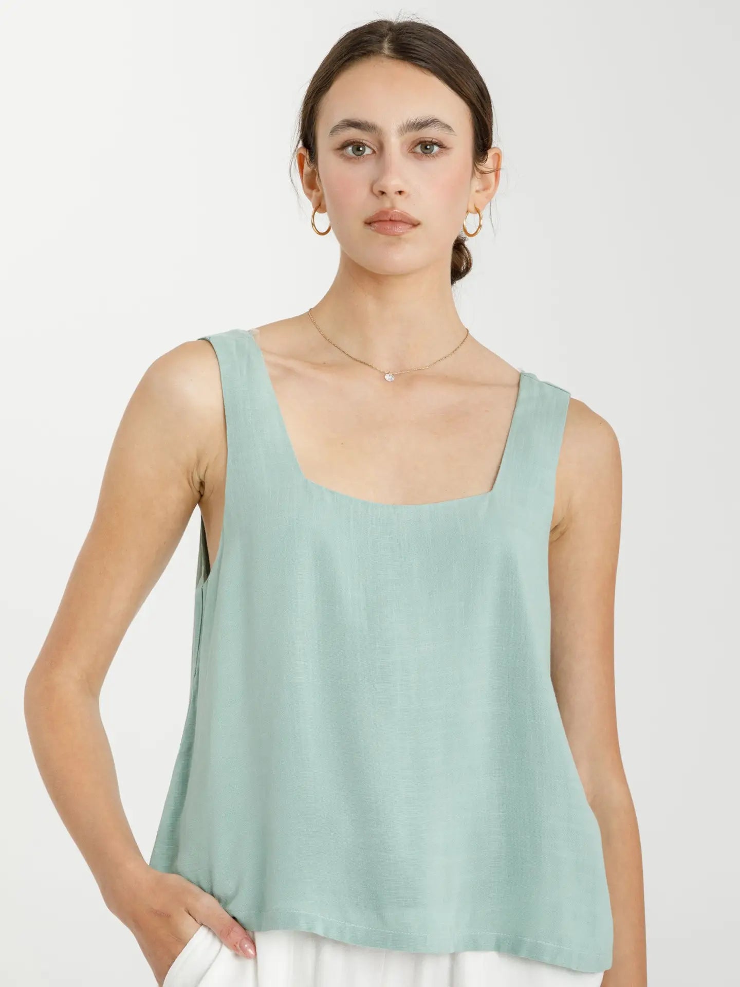 The Breezy Tank is the ultimate lightweight layer you’ll reach for again and again. With its relaxed fit and airy double-layered design, this cropped tank feels effortless and chic. A square neckline and wide straps give it a classic touch, while the slit-back curtain detail adds a flirty surprise. Perfect for pairing with high-rise denim, skirts, or layered under a blazer, this tank is versatile enough for daytime adventures and elevated enough for nights out.