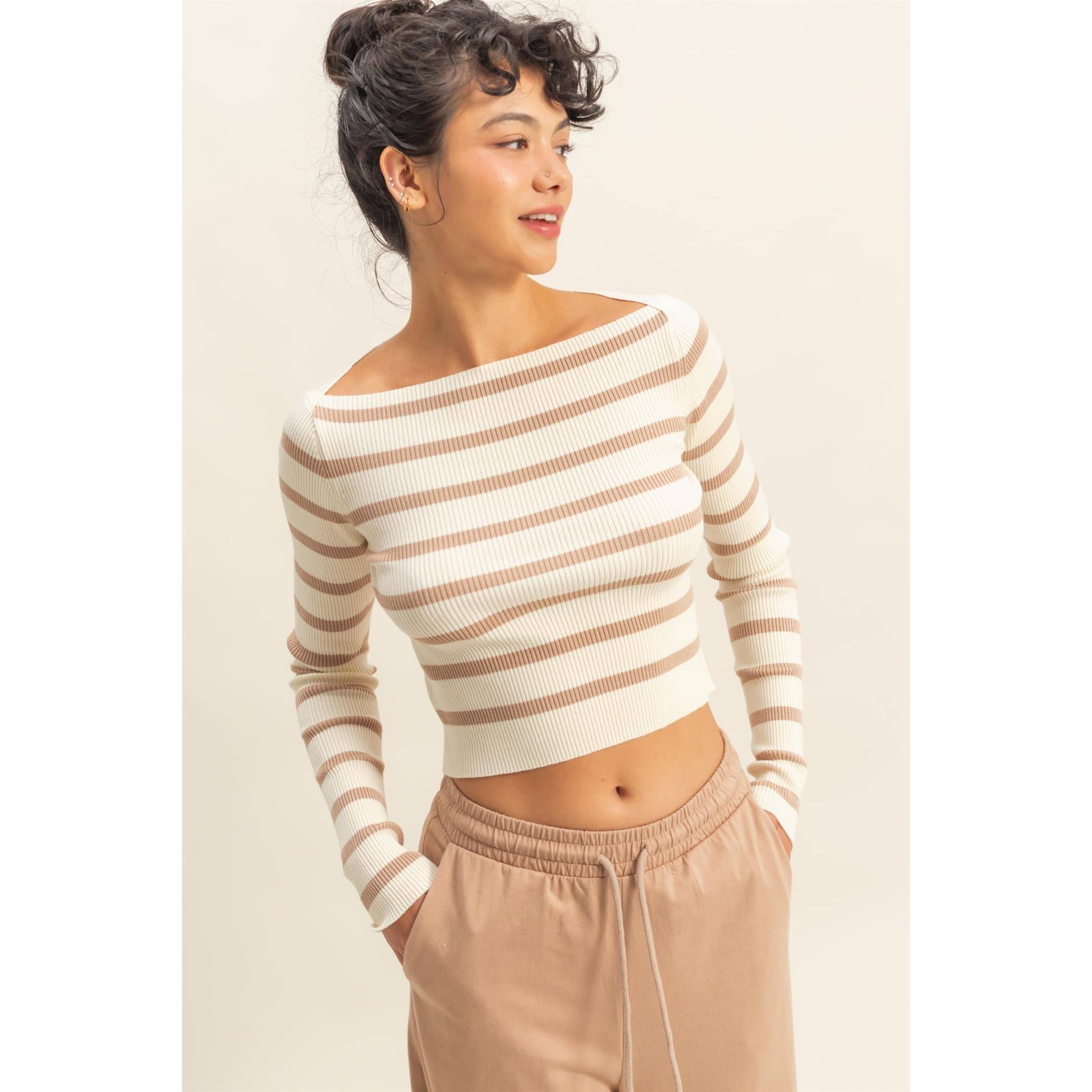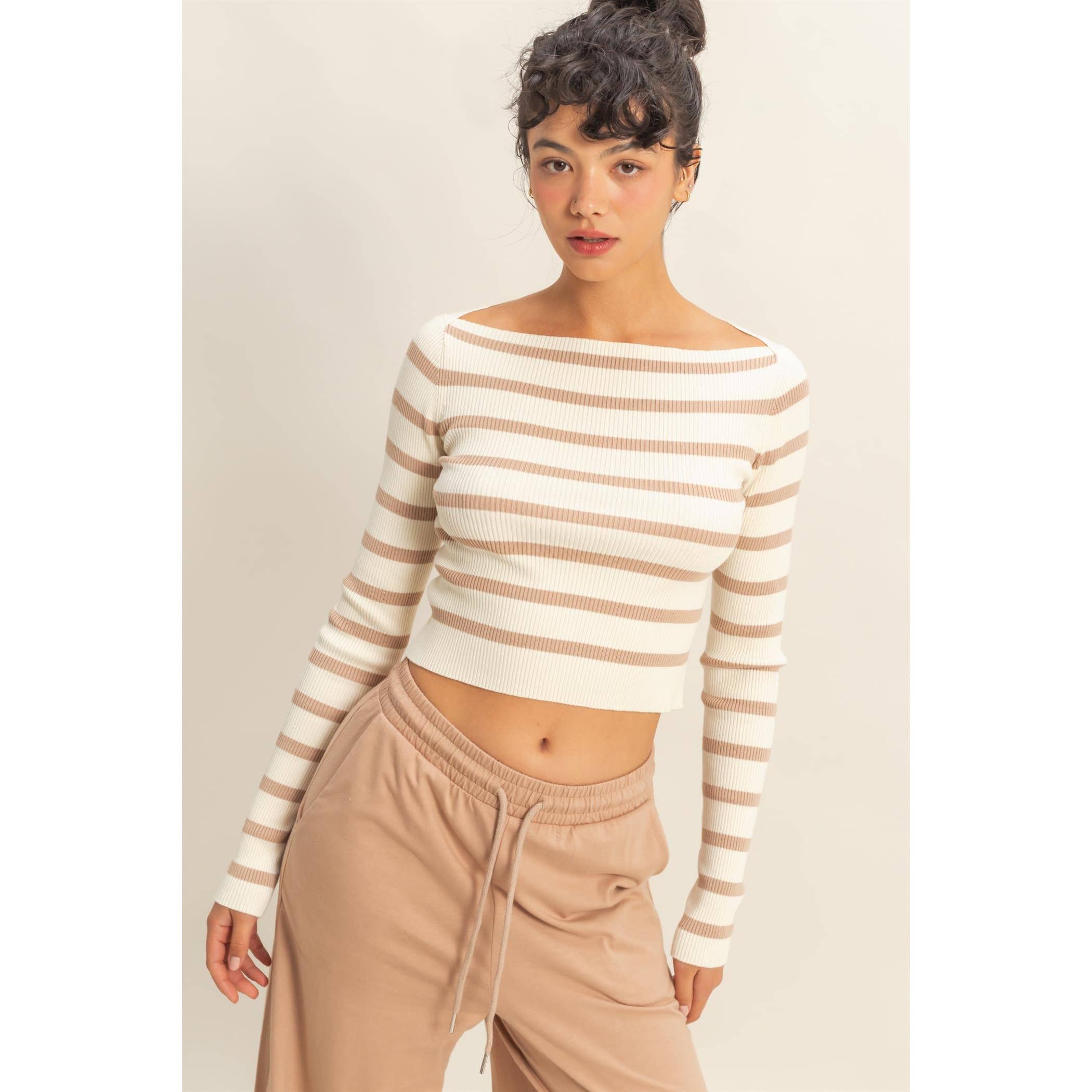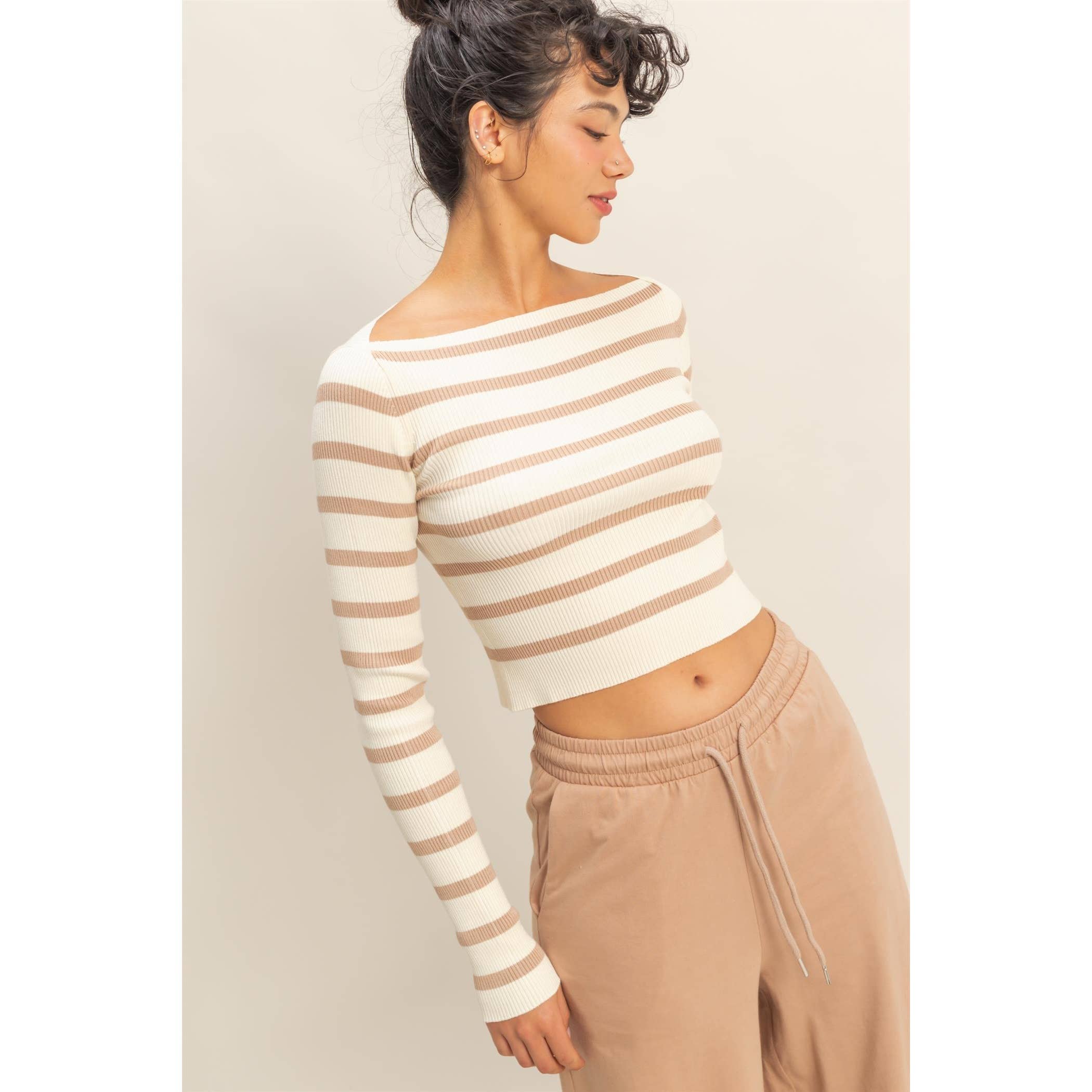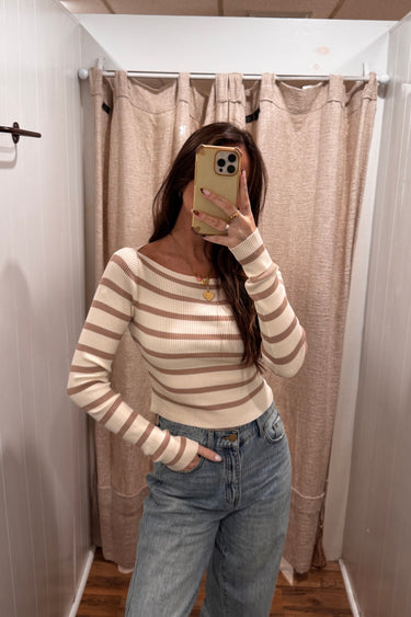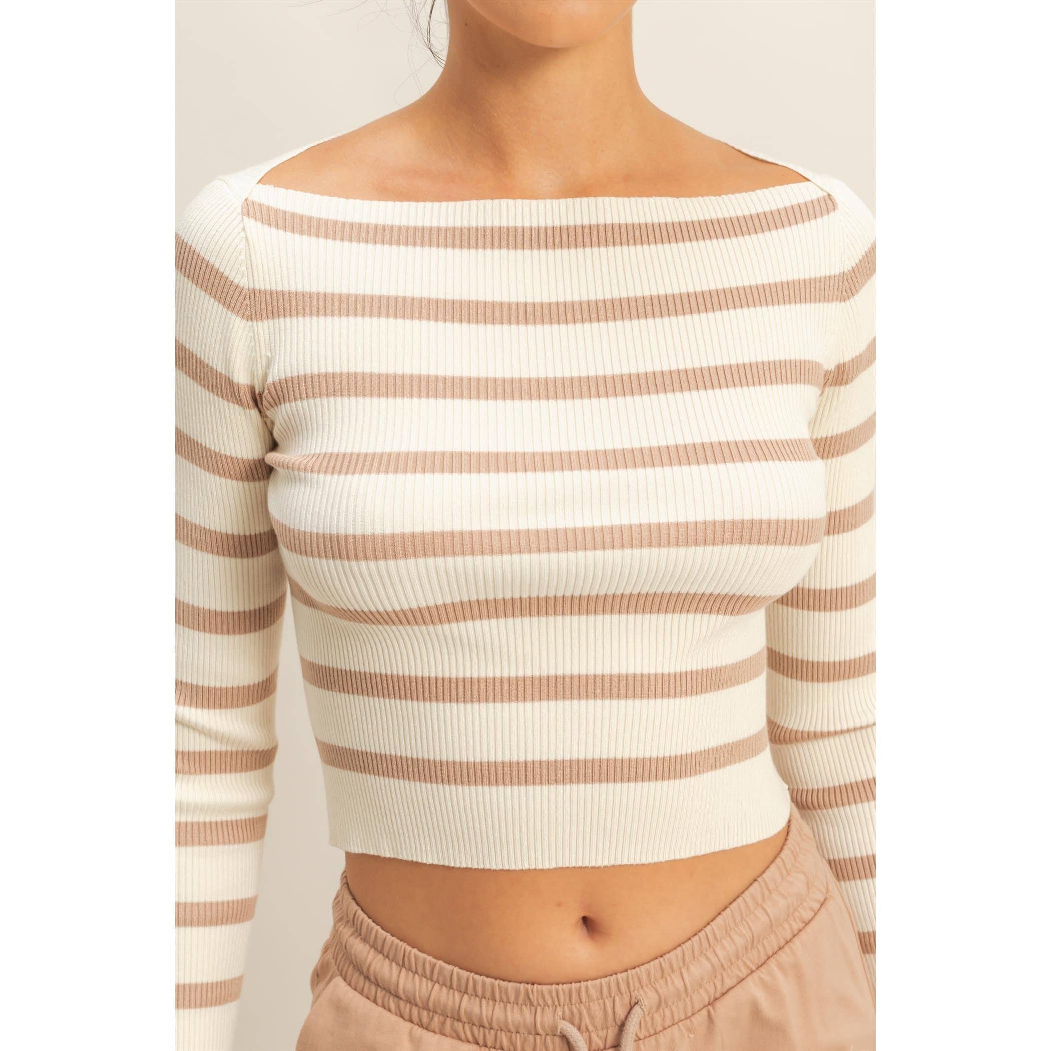 The Luz Stripe Top is serving timeless stripes with a modern twist. Featuring a flattering boatneck that shows just the right hint of collarbone, this ribbed knit beauty pairs effortlessly with high-waisted denim or a sleek skirt. The cropped cut keeps it trendy, while the long sleeves make it perfect for those in-between weather days. Comfy, chic, and endlessly versatile—she’s a must-have for your rotation.