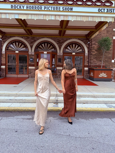 The Havana Nights Satin Slip Dress is sultry, sophisticated, and made for golden-lit evenings. Crafted from silky satin in a rich copper hue, this dress drapes beautifully along the body for an effortless, flattering silhouette. Delicate lace trim and a dainty tie-front neckline add just the right amount of romance, while the adjustable straps allow for a custom fit. Whether styled with heels for a night out or layered under a blazer for an elevated daytime look, this dress delivers timeless allure with a modern edge.