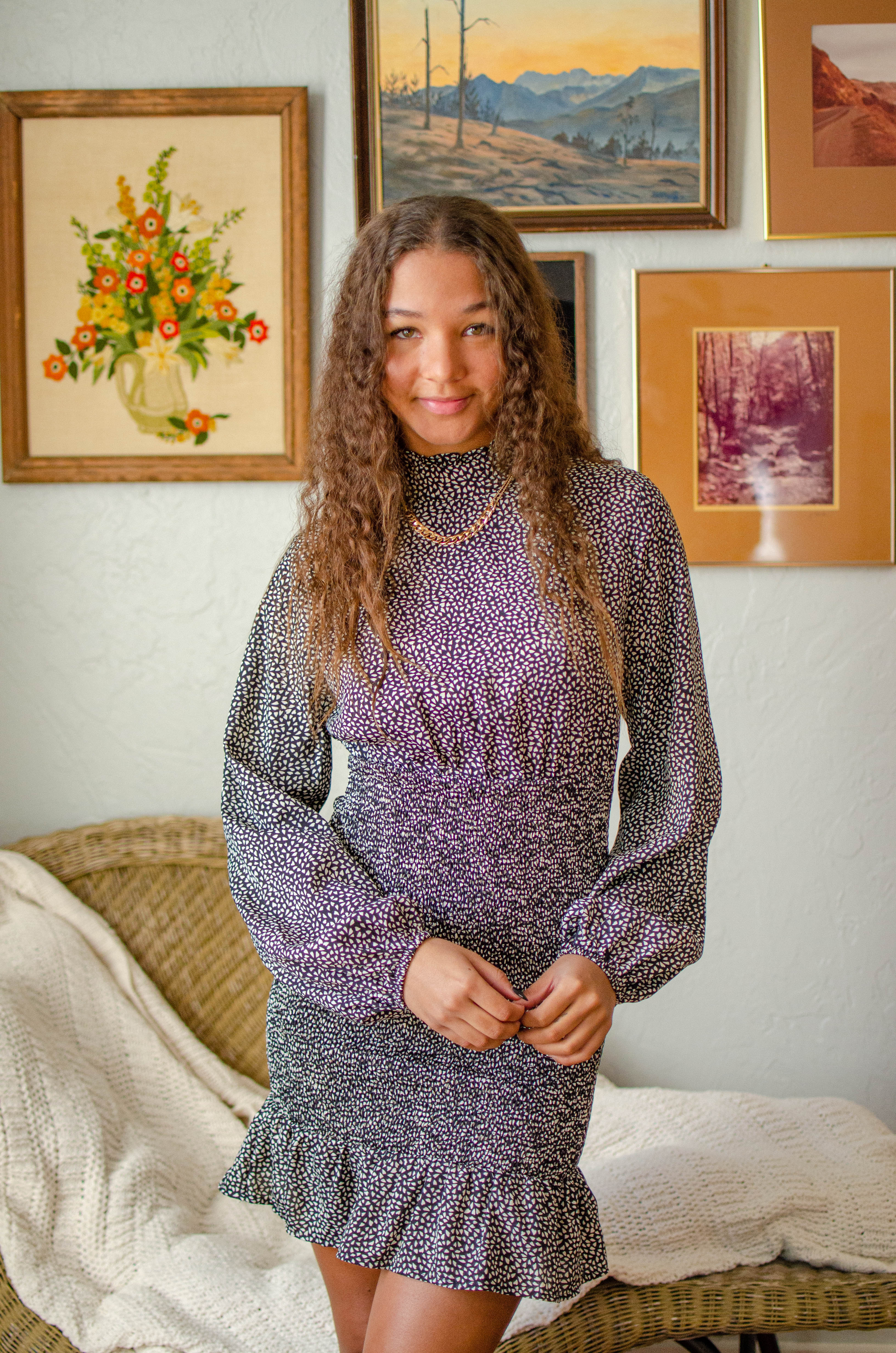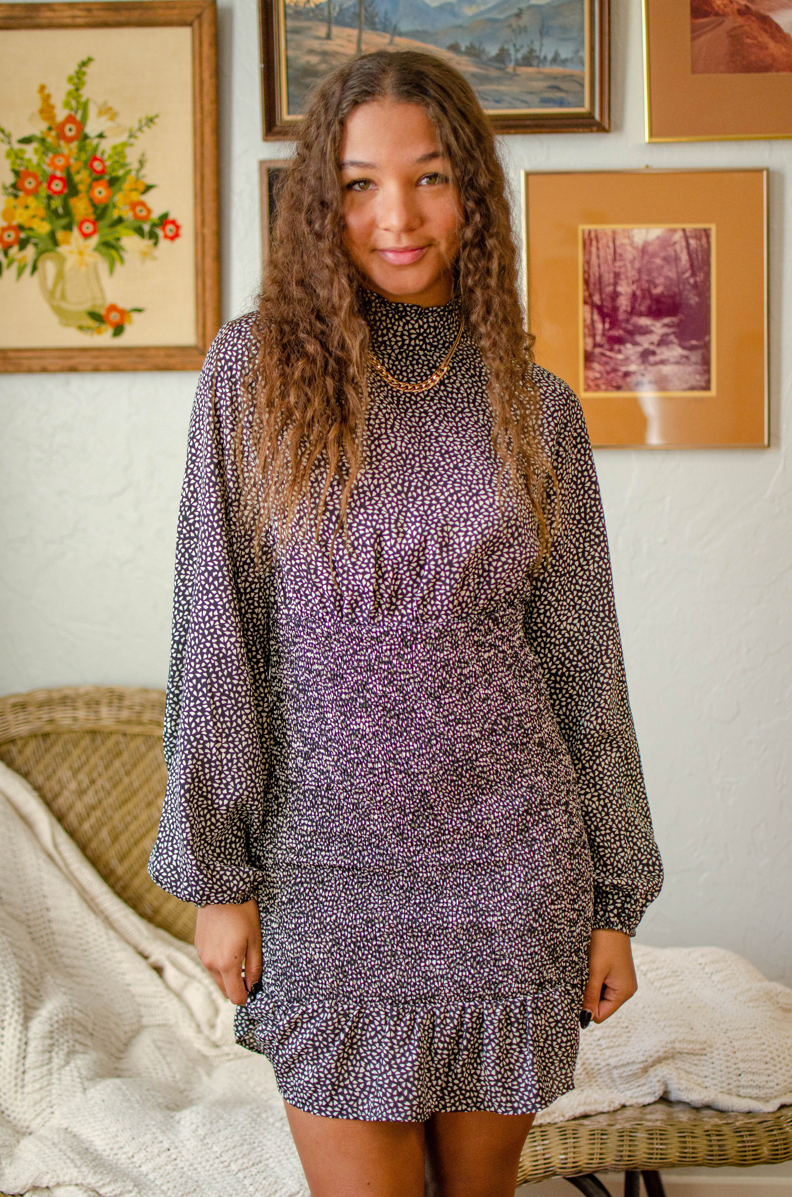 This fit is unreal! Our Lillee Dress features a mini mock ruffle neckline, structured shoulders, balloon long sleeves, puffed bodice, high rise shirred skirt, ruffle trim hem and mini length. We love the high stretch skirt and mini mock neckline! Pair with boots and statement earrings.