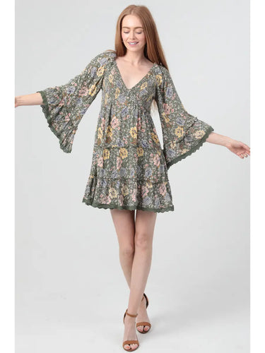 Romantic and effortlessly flowy, the Willow Boho Mini Dress is made for golden-hour moments and weekend escapes. Designed with a deep V-neckline, tiered ruffle hem, and bell sleeves trimmed in delicate lace, she’s the perfect blend of boho and feminine. The soft floral print and relaxed fit make Willow a standout for every season.