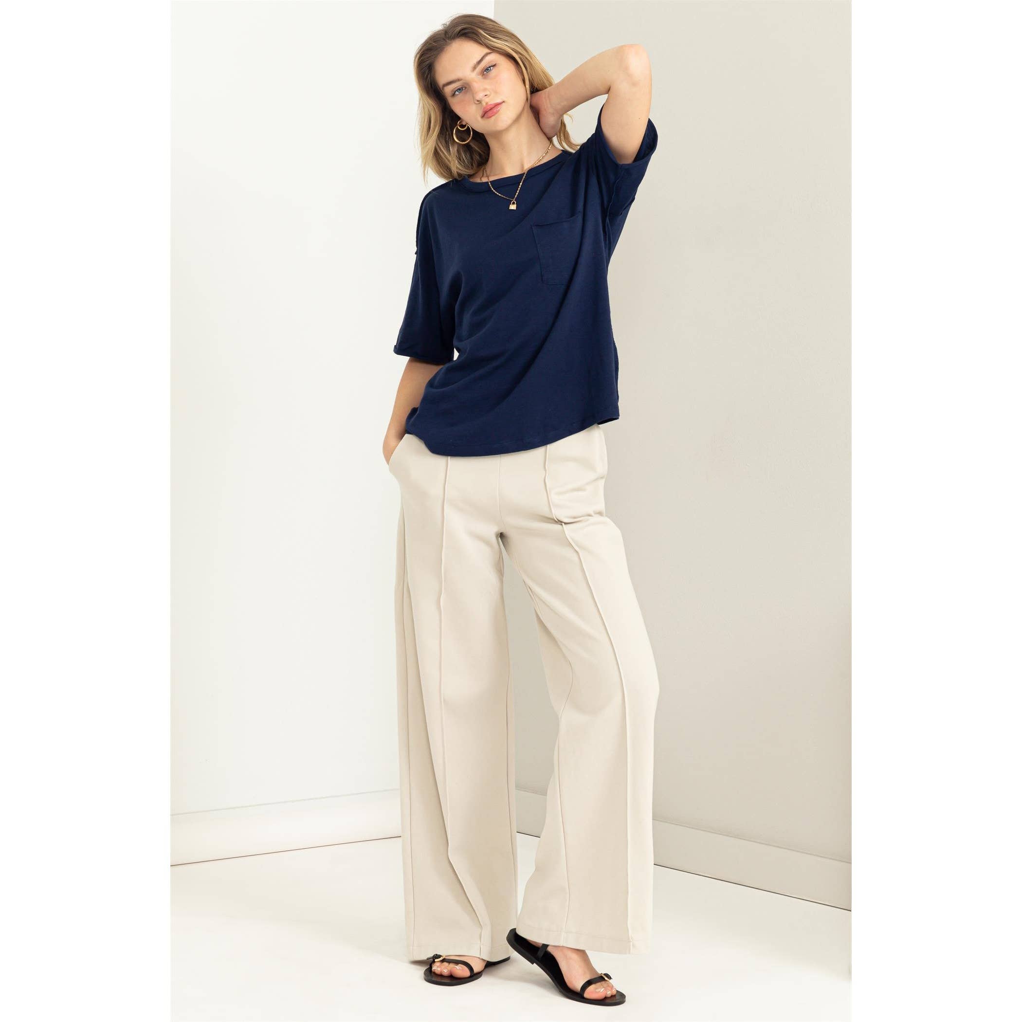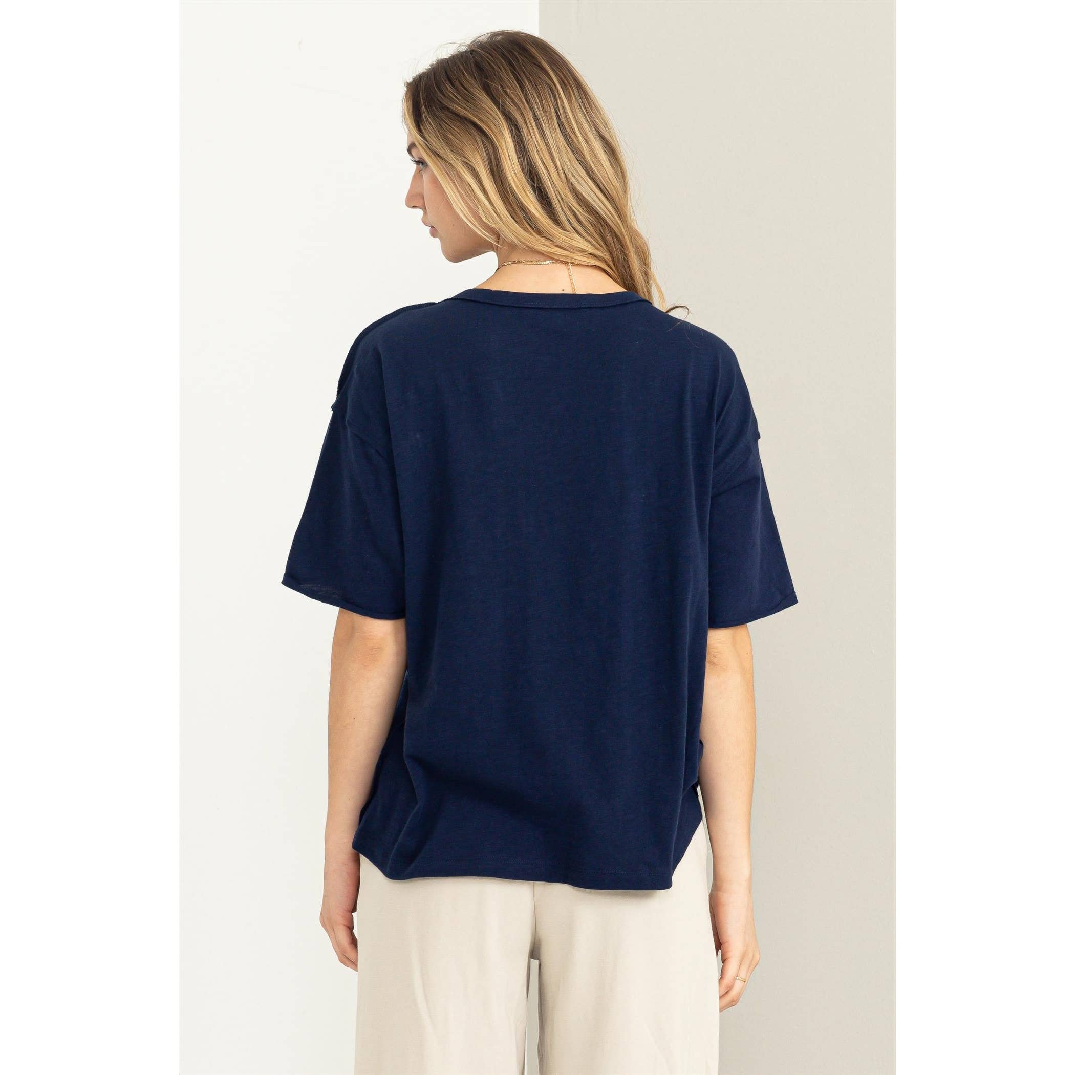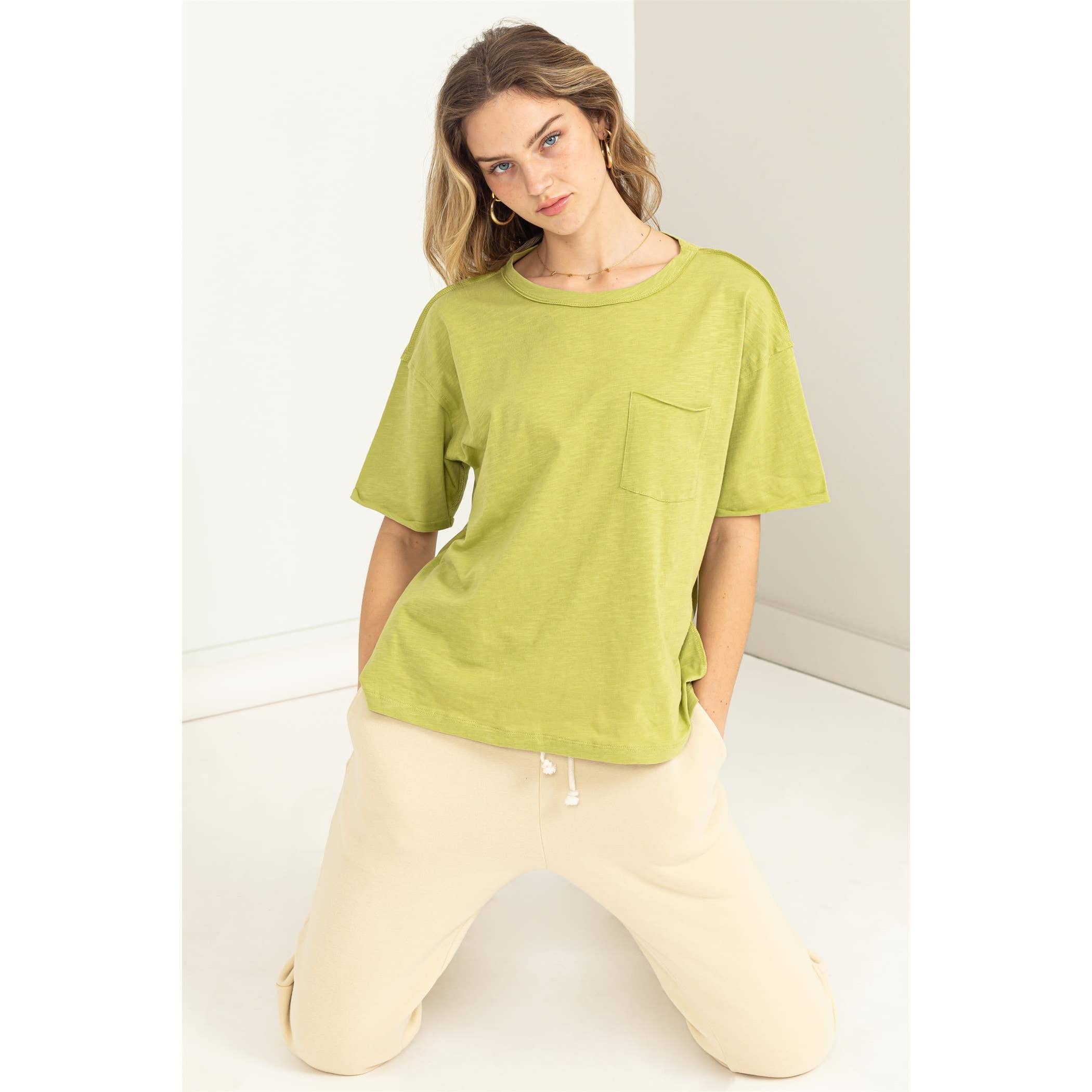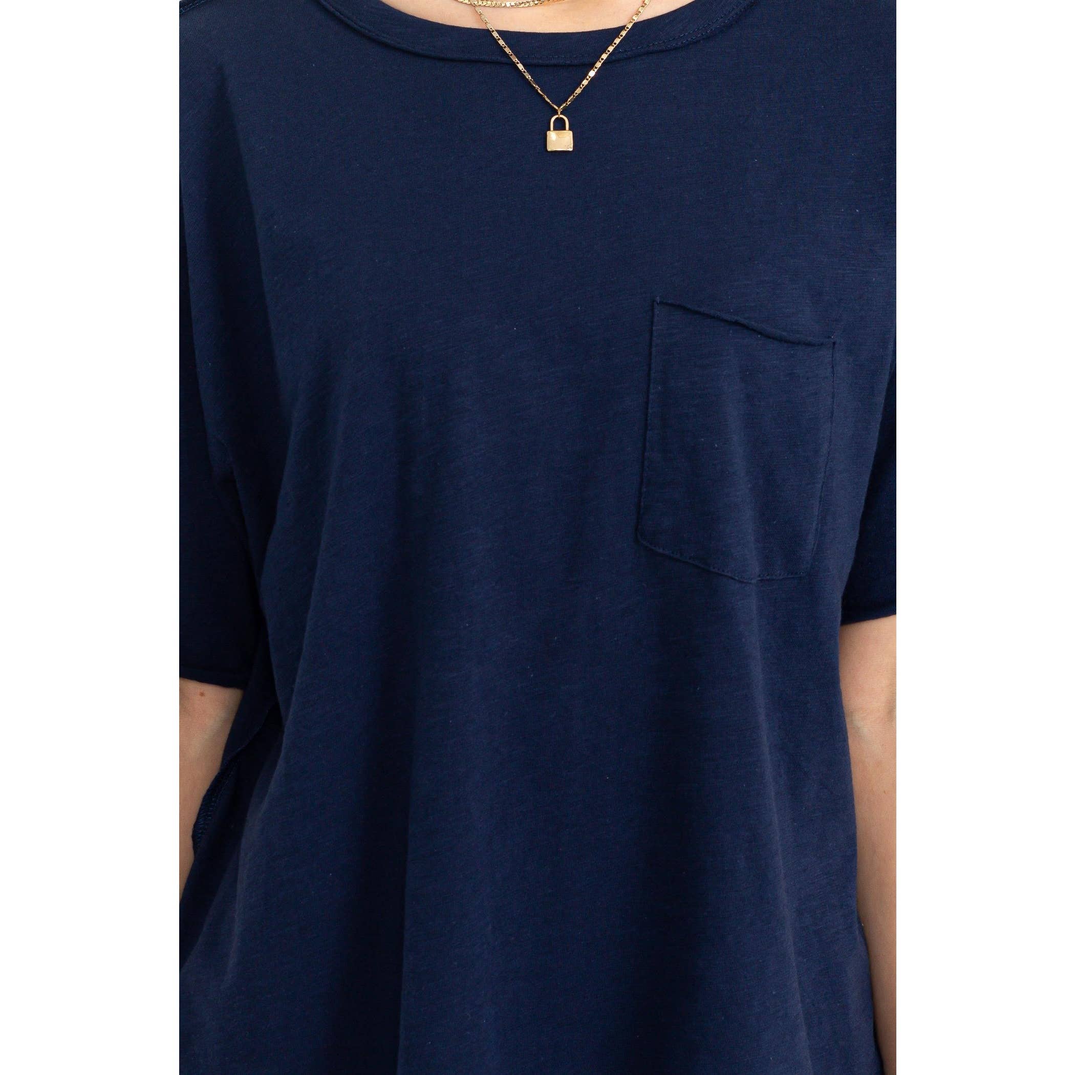 Featuring A Round Neckline, Drop Shoulders, And Short Sleeves. Designed With A Loose-Fit Bodice And Finished With A Functional Front Patch Pocket. Constructed From Lightweight Fabric, Suitable For Everyday Casual Styling.