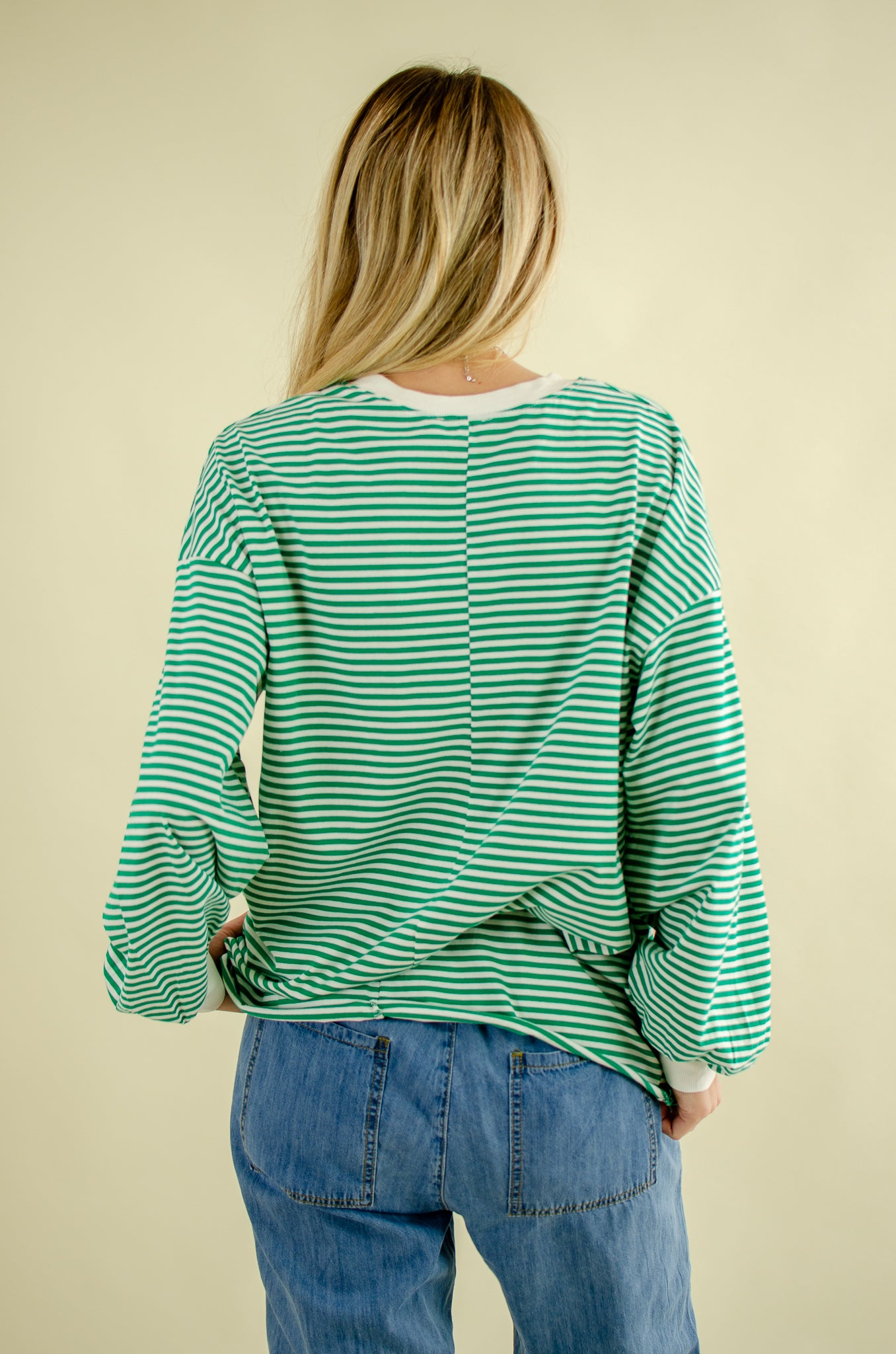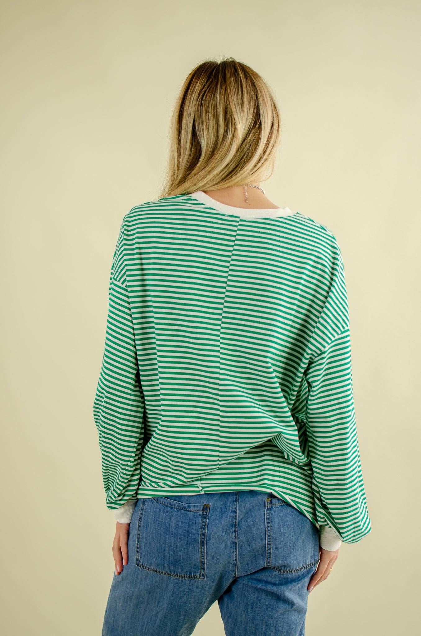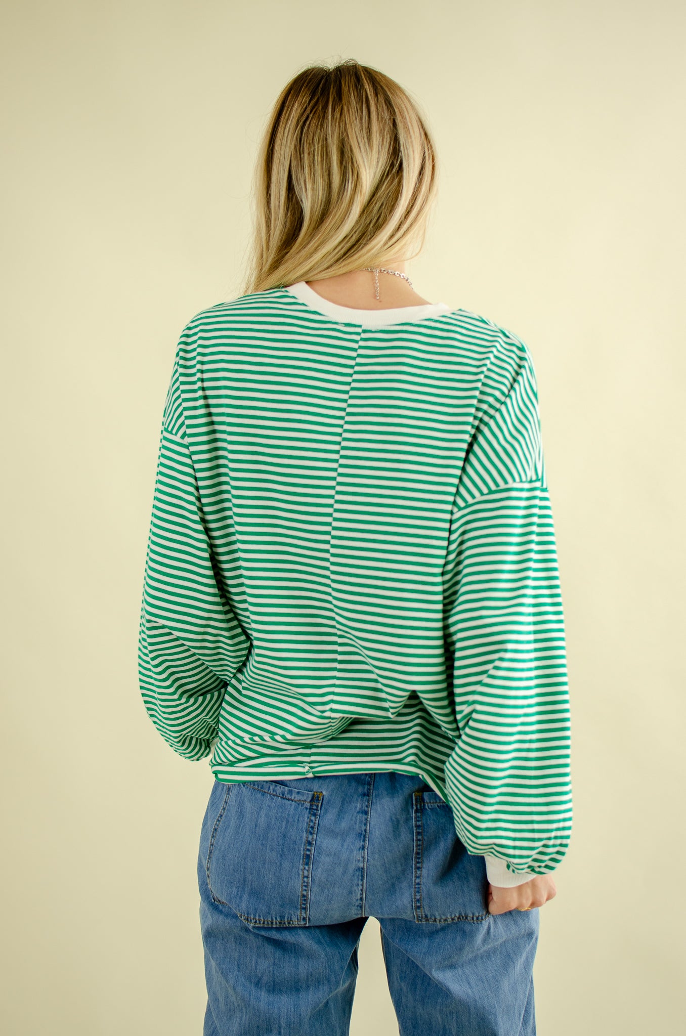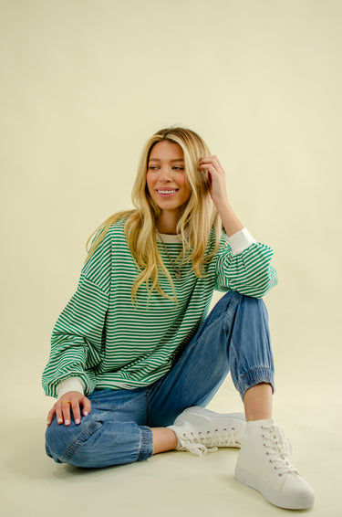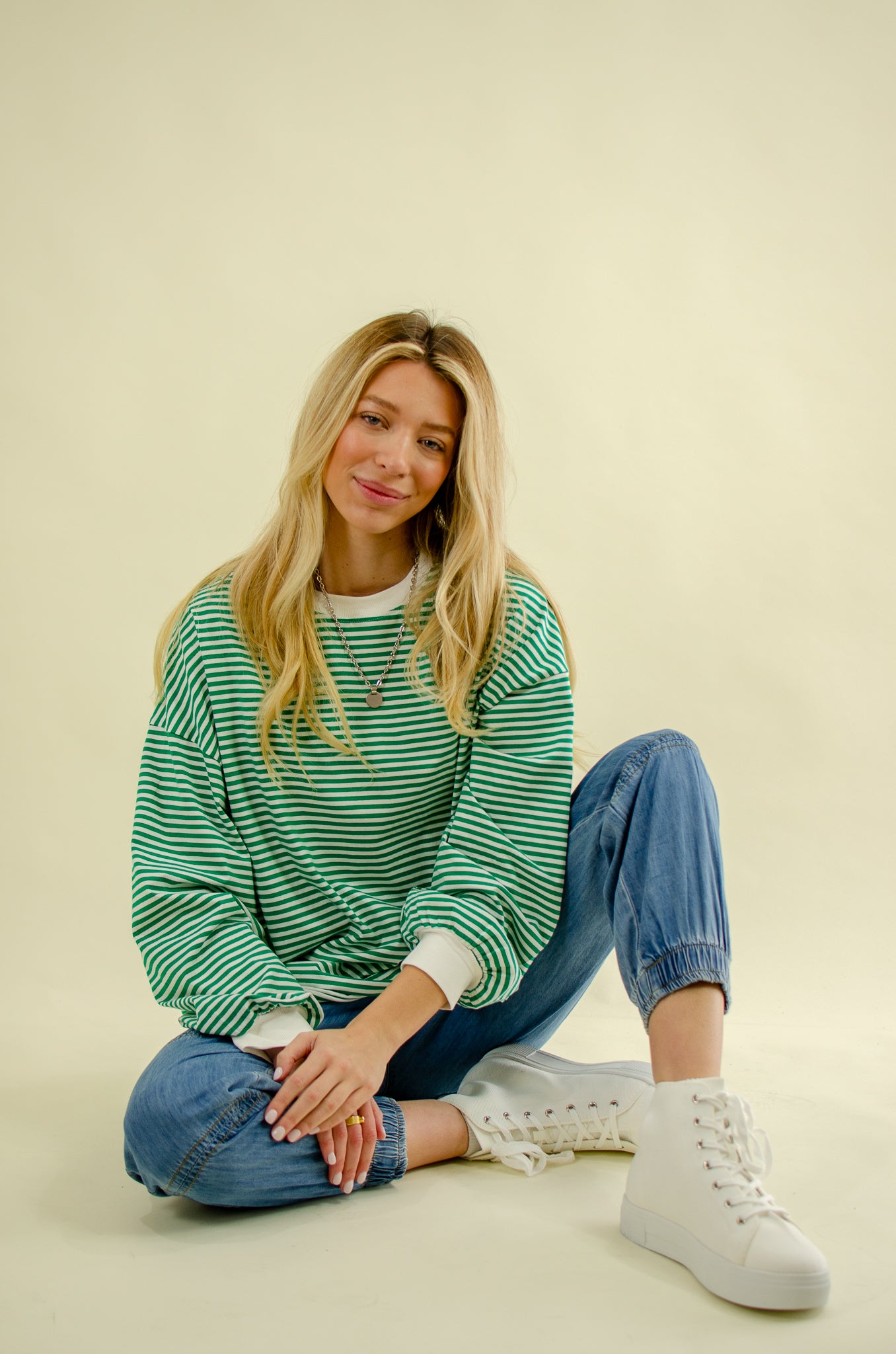 Comfy, casual and oh so cool, our Hailey Top features a classic crew neckline with contrast cuffs and a raw rolled hem. We love the baggy oversized look and trendy, preppy stripes. Wear with leggings, denim, linen and more.