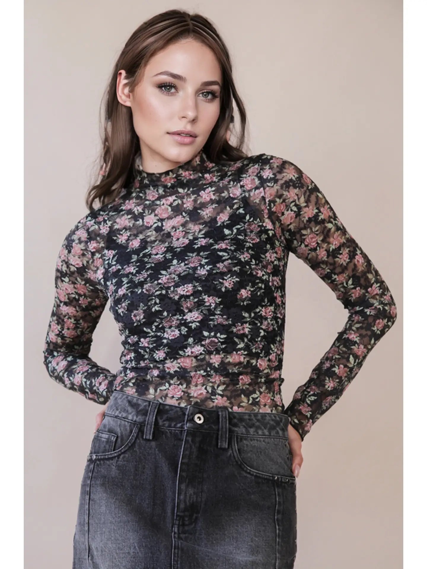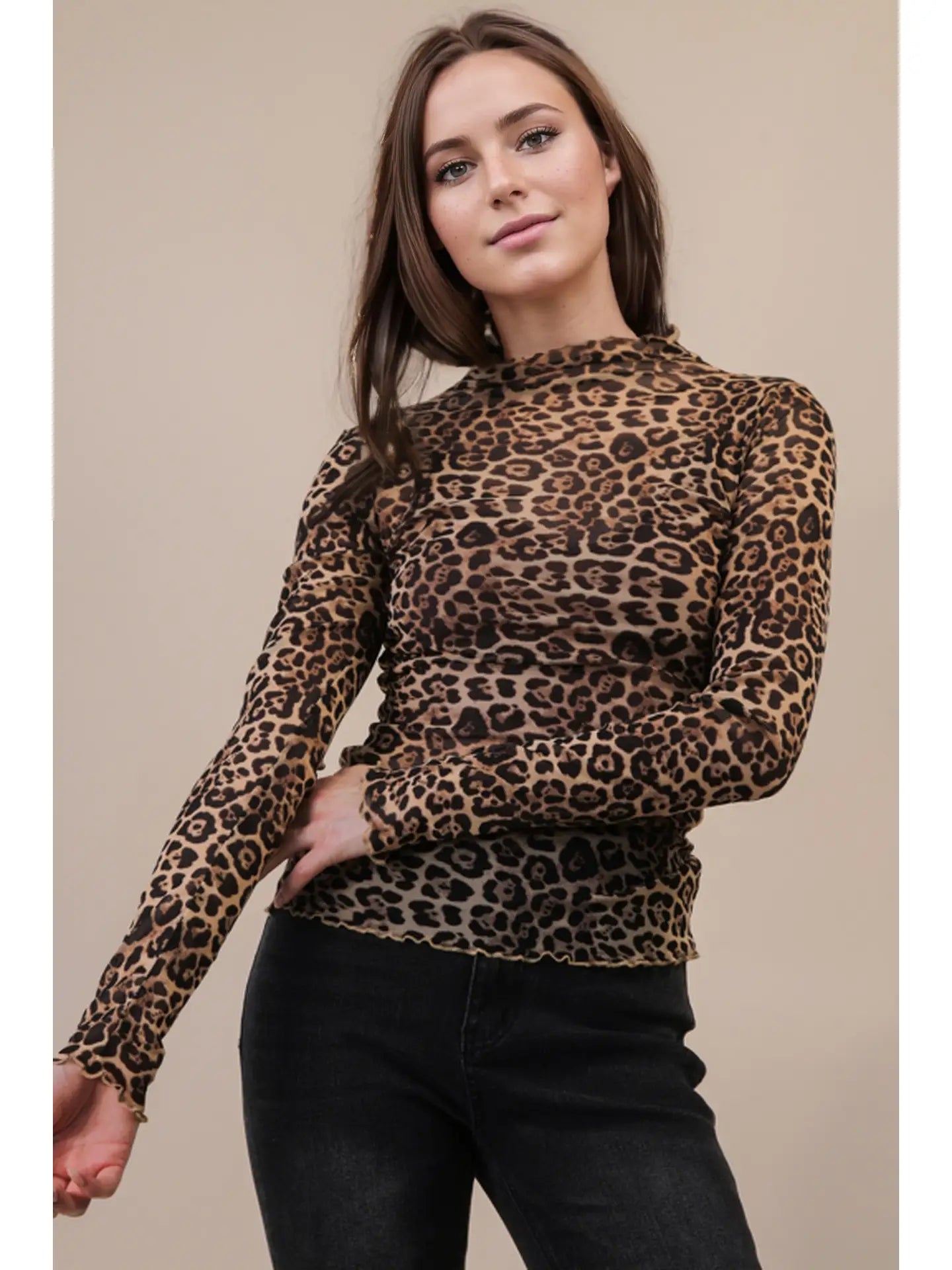 The Liora Mesh Top is the definition of flirty-meets-sophisticated. Designed with a high neckline and a fitted silhouette, this sheer mesh piece is the ultimate layering essential. Available in a mix of bold and feminine prints—solid, floral, bow, stripe, and leopard—it lets you switch up your vibe effortlessly. Long sleeves balance out the sheer detailing, making it easy to dress up for a night out or style casually under a blazer or denim jacket.