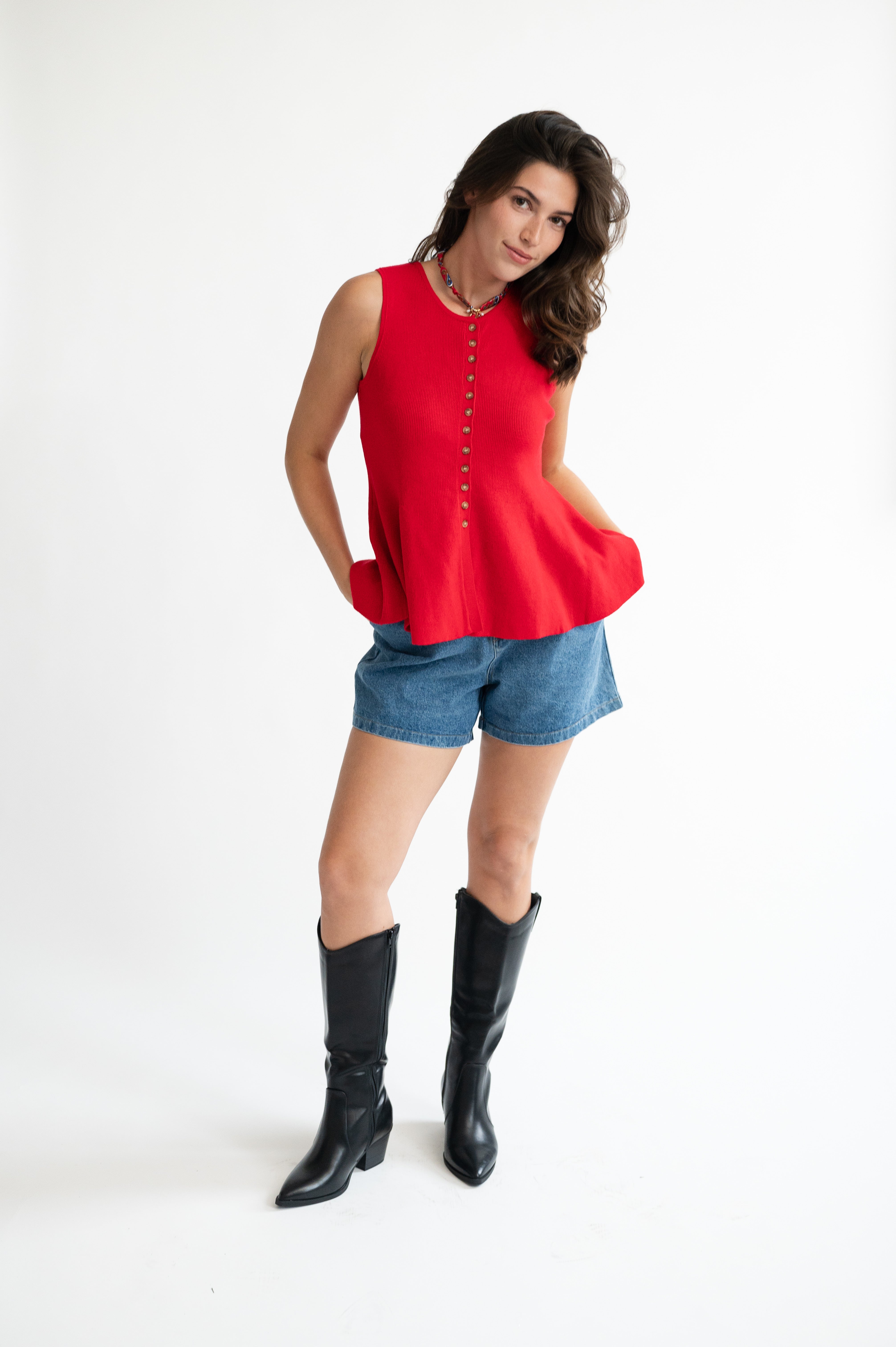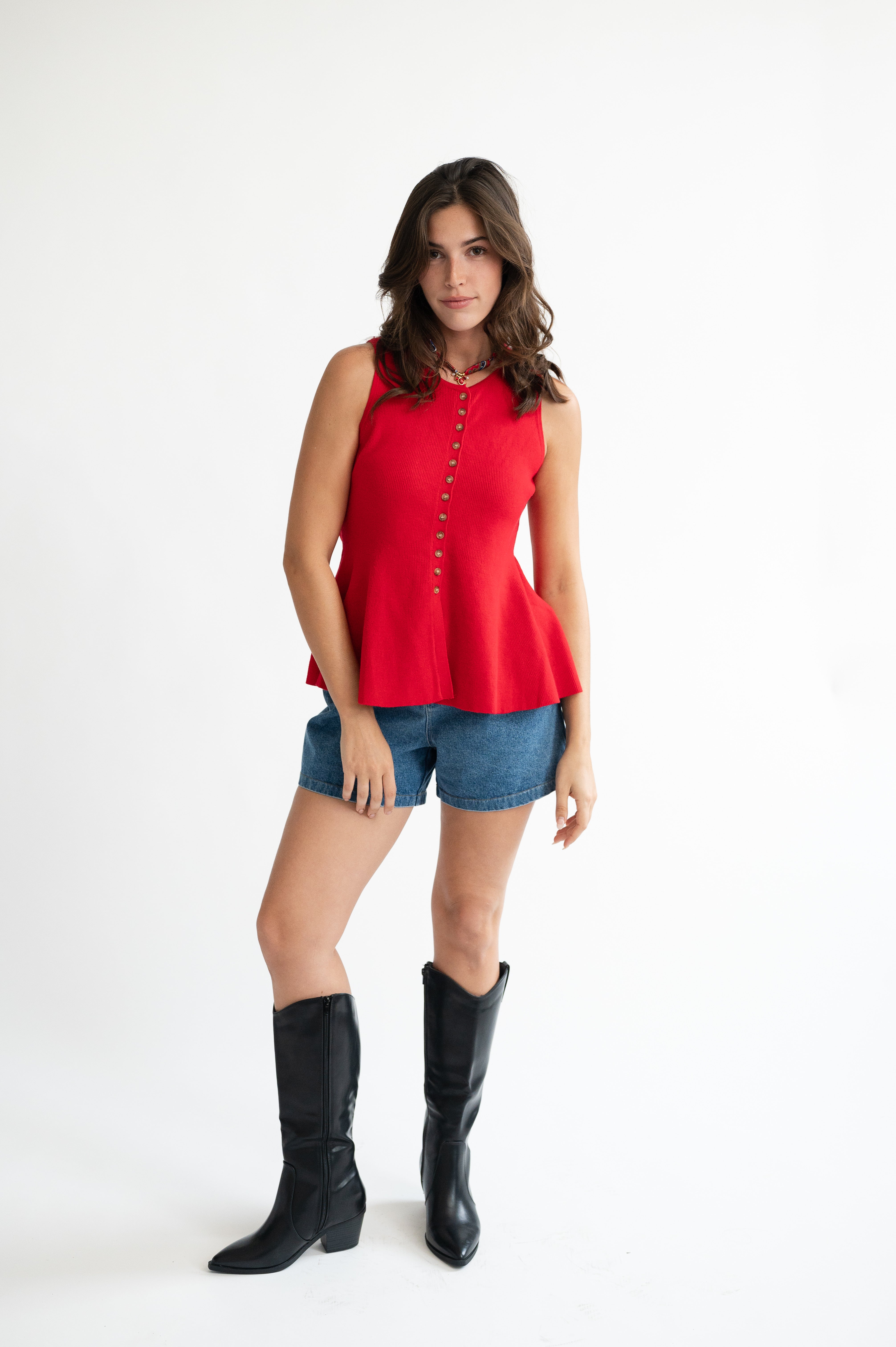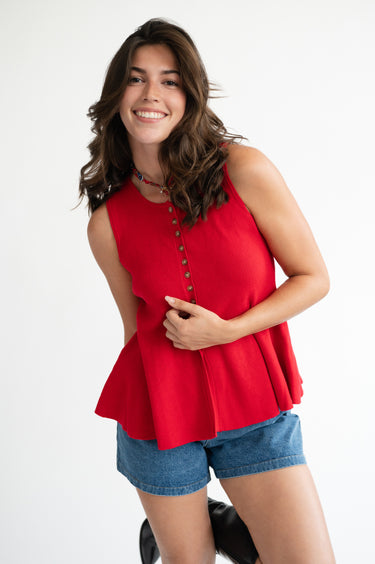 Feminine and so easy to style — the Noelle Knit Vest brings a cozy holiday touch to your winter wardrobe. Designed in a soft-touch knit with a subtle peplum hem, this button-down silhouette flatters every shape while keeping it effortlessly relaxed. The armholes are cut with just enough ease to layer over blouses or turtlenecks, giving you endless styling options from holiday brunches to cozy nights out.