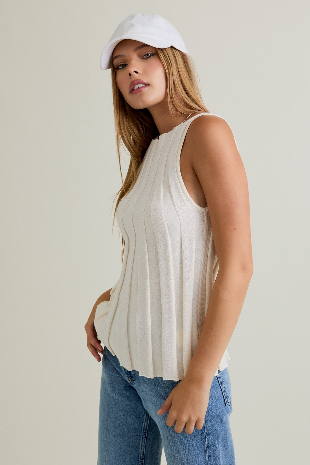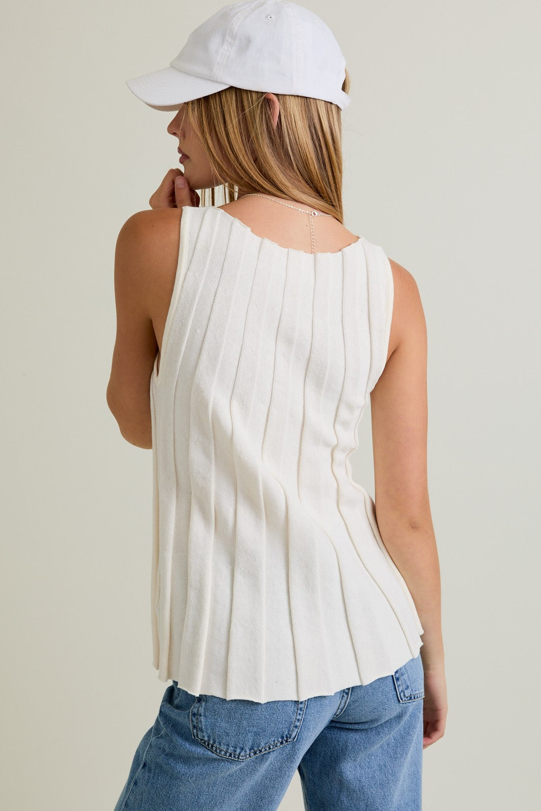 The Ribbed Wave Knit Tank is effortless minimalism with a chic twist. Made from 100% cotton, this sleeveless top features a softly structured ribbed wave texture that flatters while staying breathable and comfy. Its relaxed fit makes it easy to wear tucked into denim, layered under blazers, or styled loose for that casual off-duty vibe. Lightweight yet polished, it’s the kind of versatile piece you’ll reach for season after season.