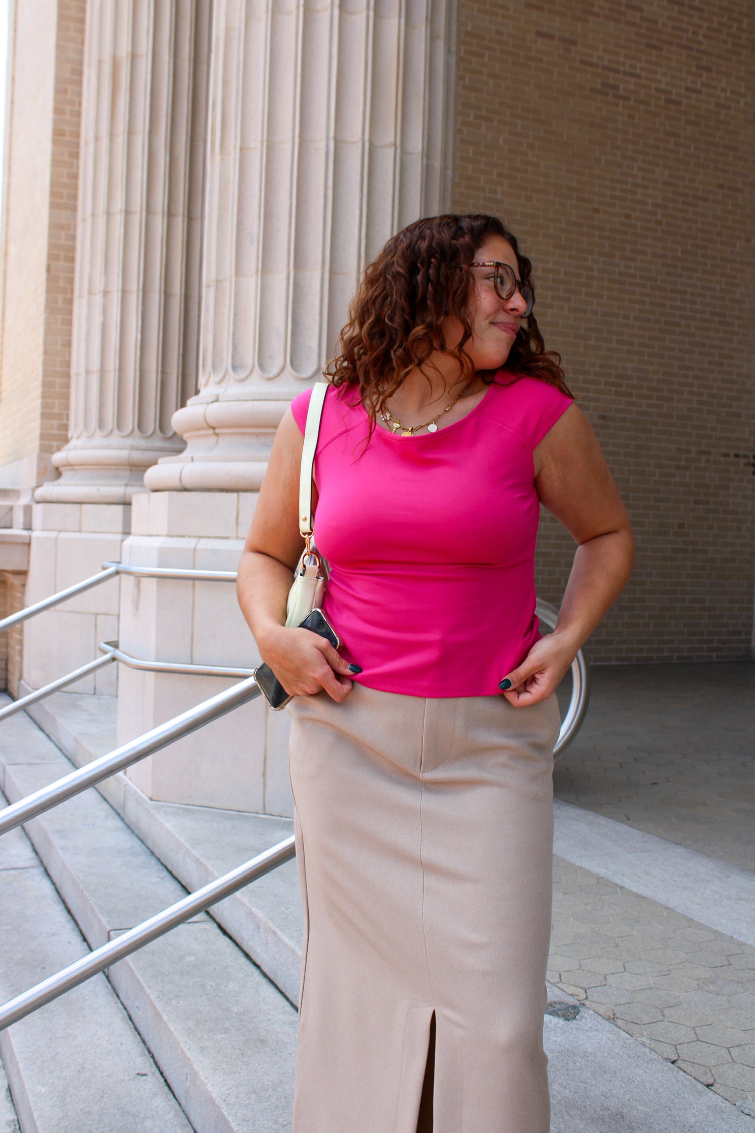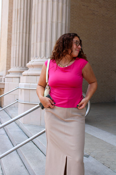 Our Shirley Top features an off the shoulder neckline, mid-waist hem, stretchy fit and cap sleeves. Perfect for hot summer days this piece will take you into fall with layered sweaters and jackets to come! Wear with denim, linen, satin and more.