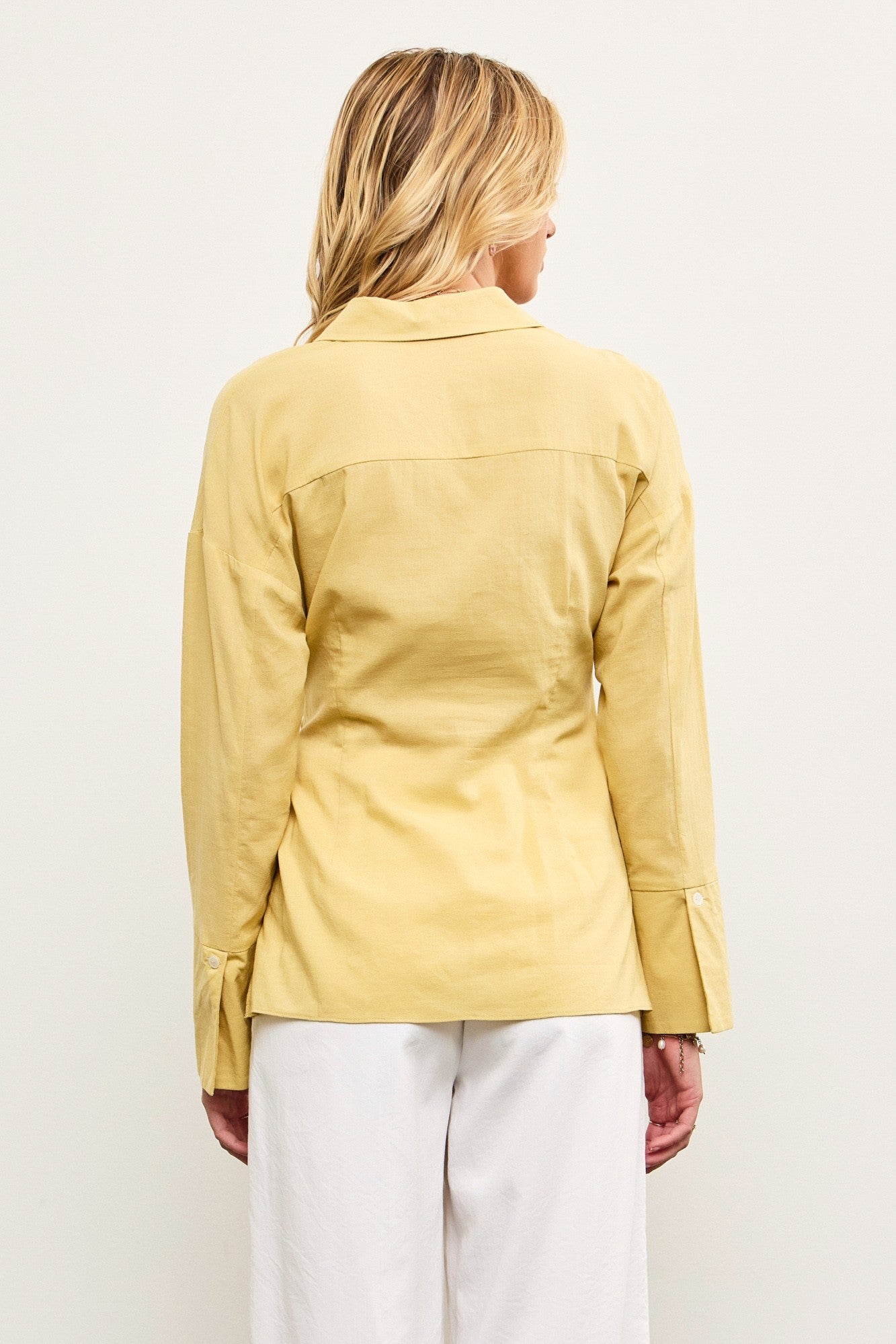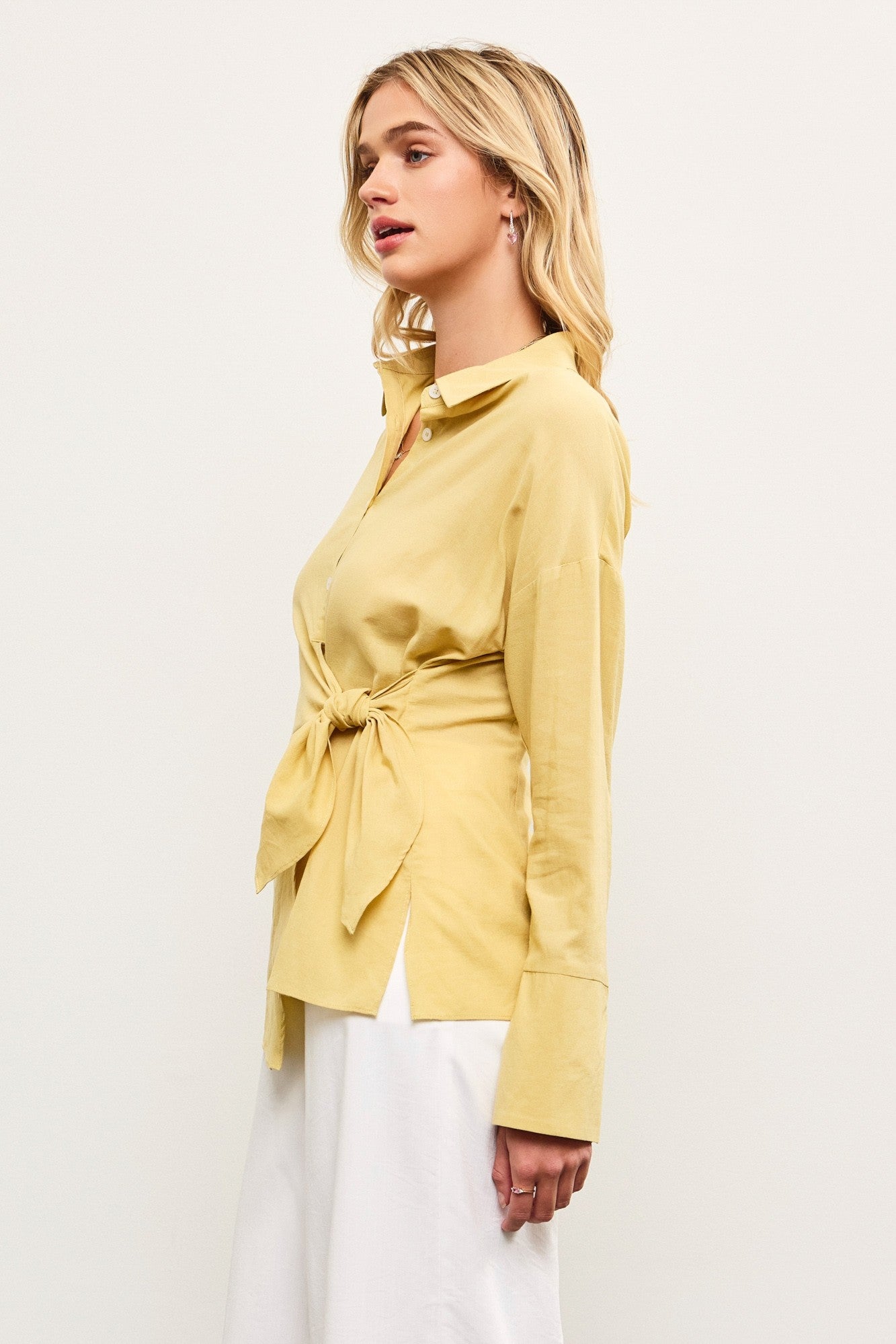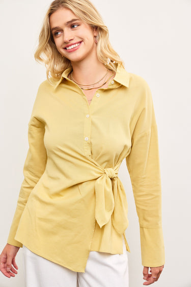 Say hello to Sienna, your go-to for elevated everyday style. Effortlessly blending structure and softness, this collared button-up features a flattering side tie that cinches your waist and adds the perfect feminine twist. The relaxed fit and asymmetrical hem make her easy to dress up or down — pair with tailored trousers for work or denim for weekend brunch.