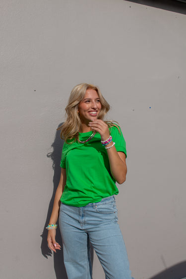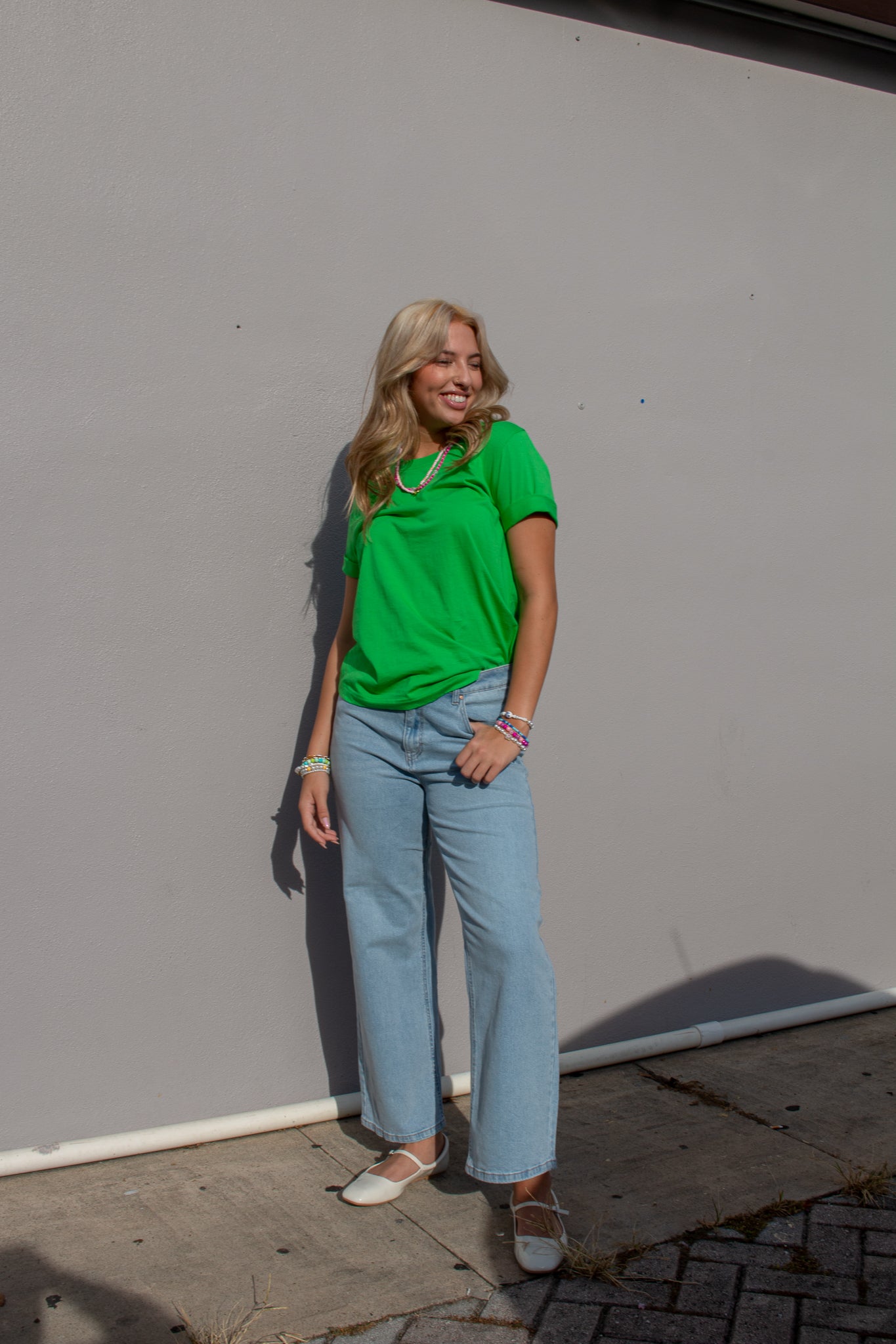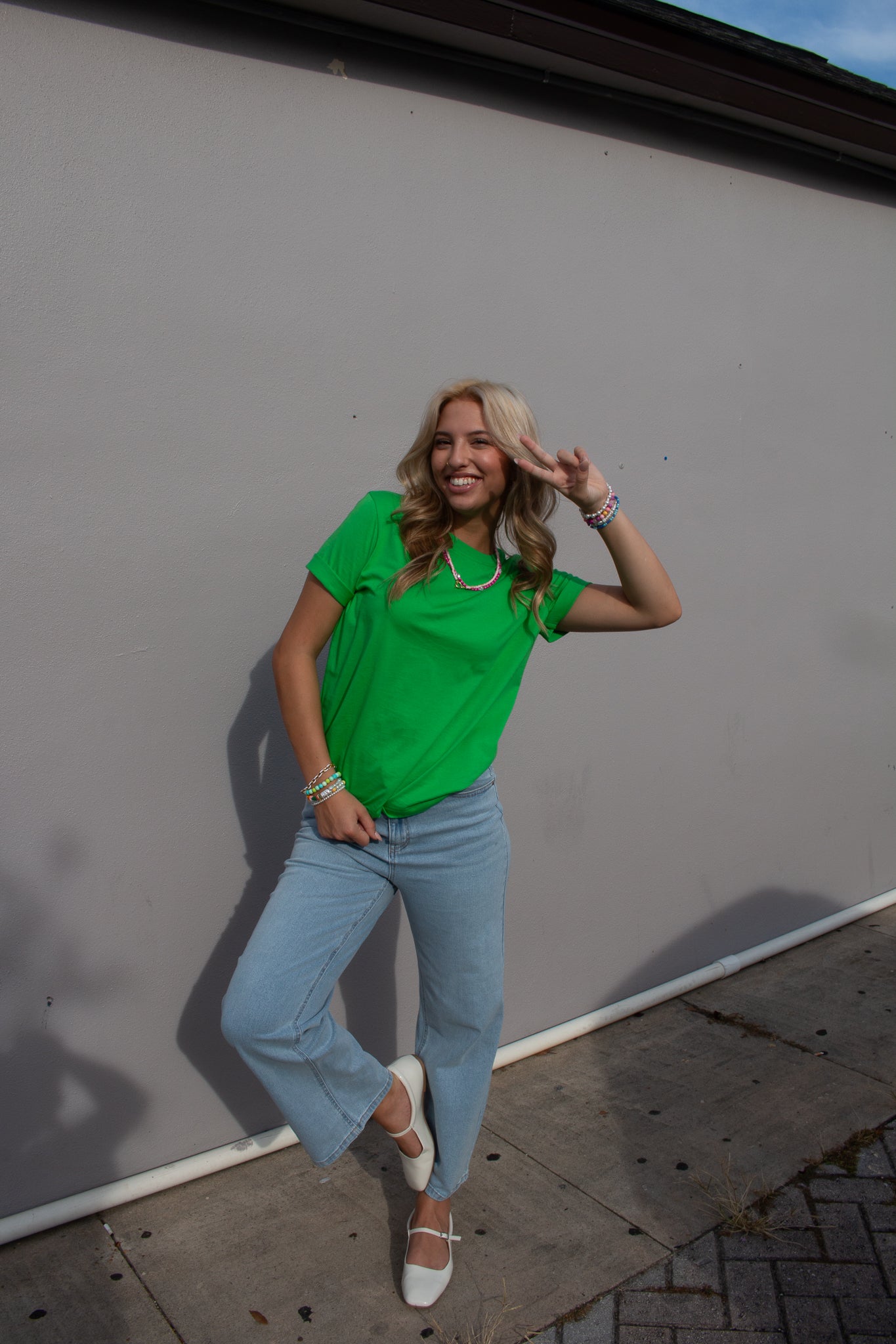 A comfy classic! Our Tyler Shirt features a soft stretch fabric, crew  neckline, lightly dropped shoulders, short sleeves and full length bodice. Perfect for tossing on and getting your day going.