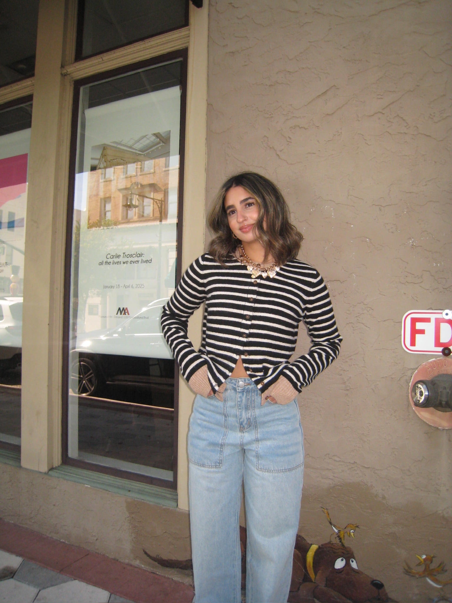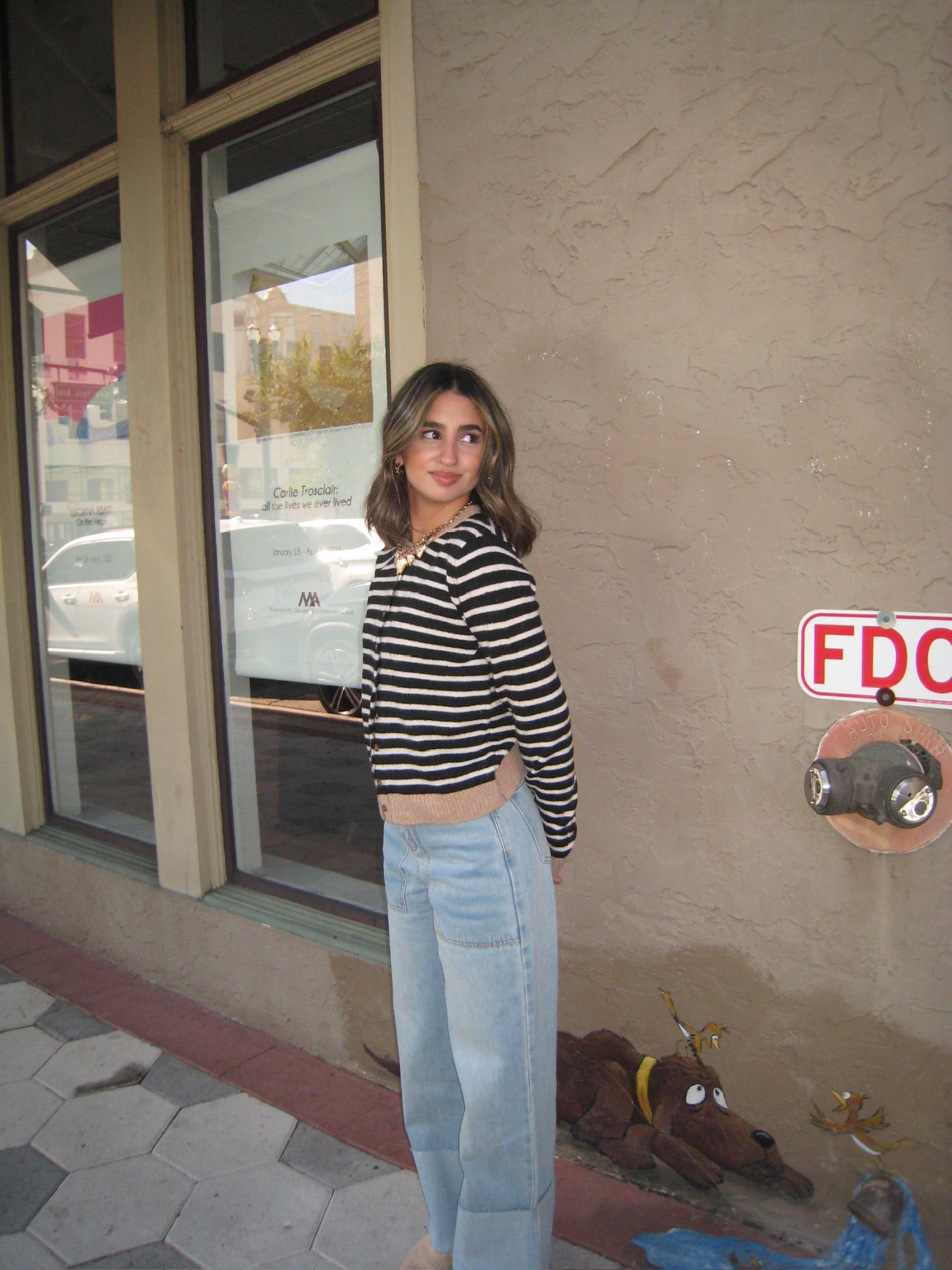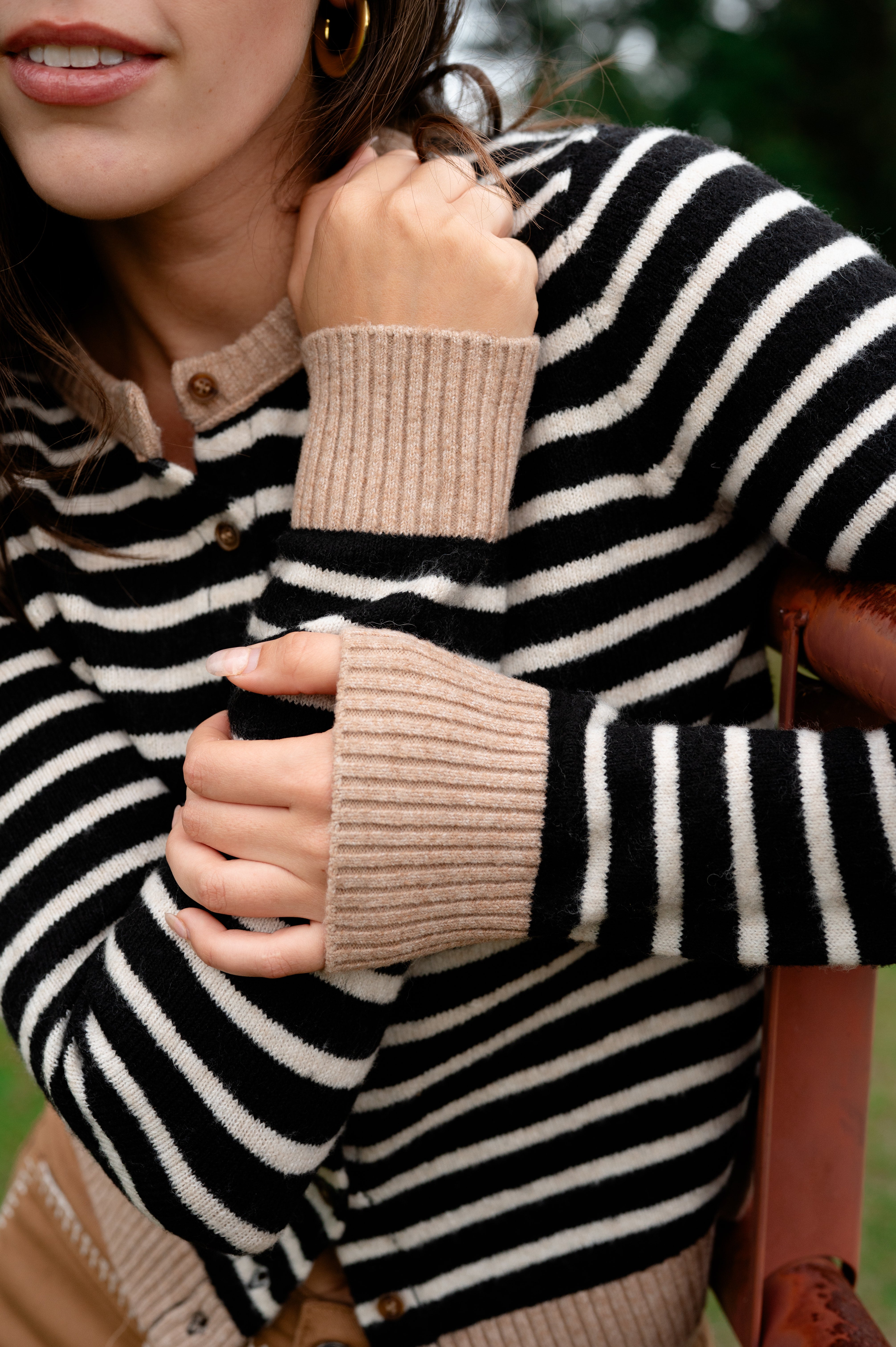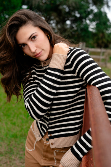 Chic, cozy, and a little bit classic — the Fireside Stripe Cardigan adds the perfect touch of charm to your winter rotation. This fitted knit cardigan features a colorblock stripe pattern with contrast trim and buttons for a pop of retro-inspired detail. The flattering shape hugs you in just the right places, while the soft stretch knit keeps it comfortable from day to night.
