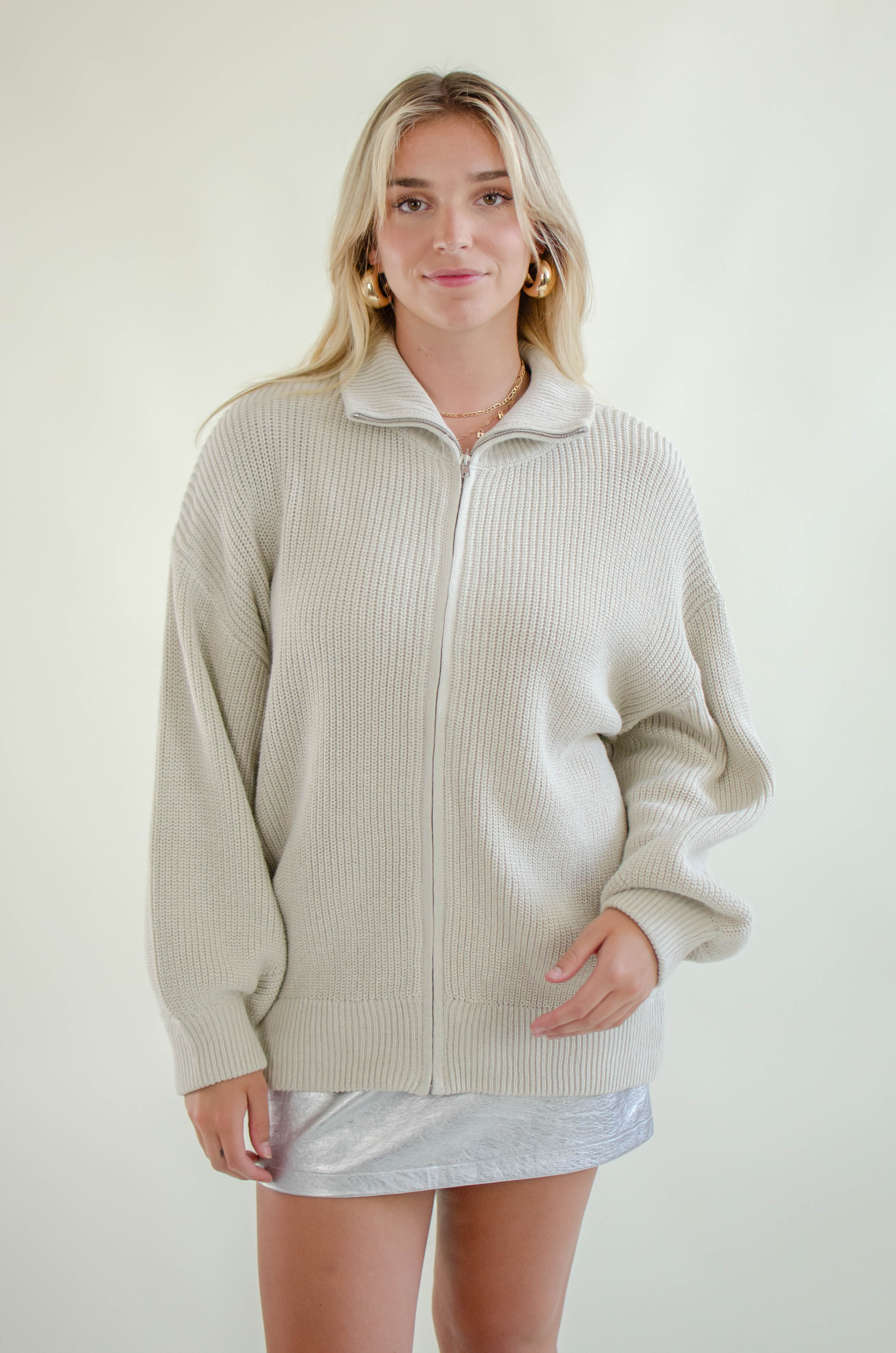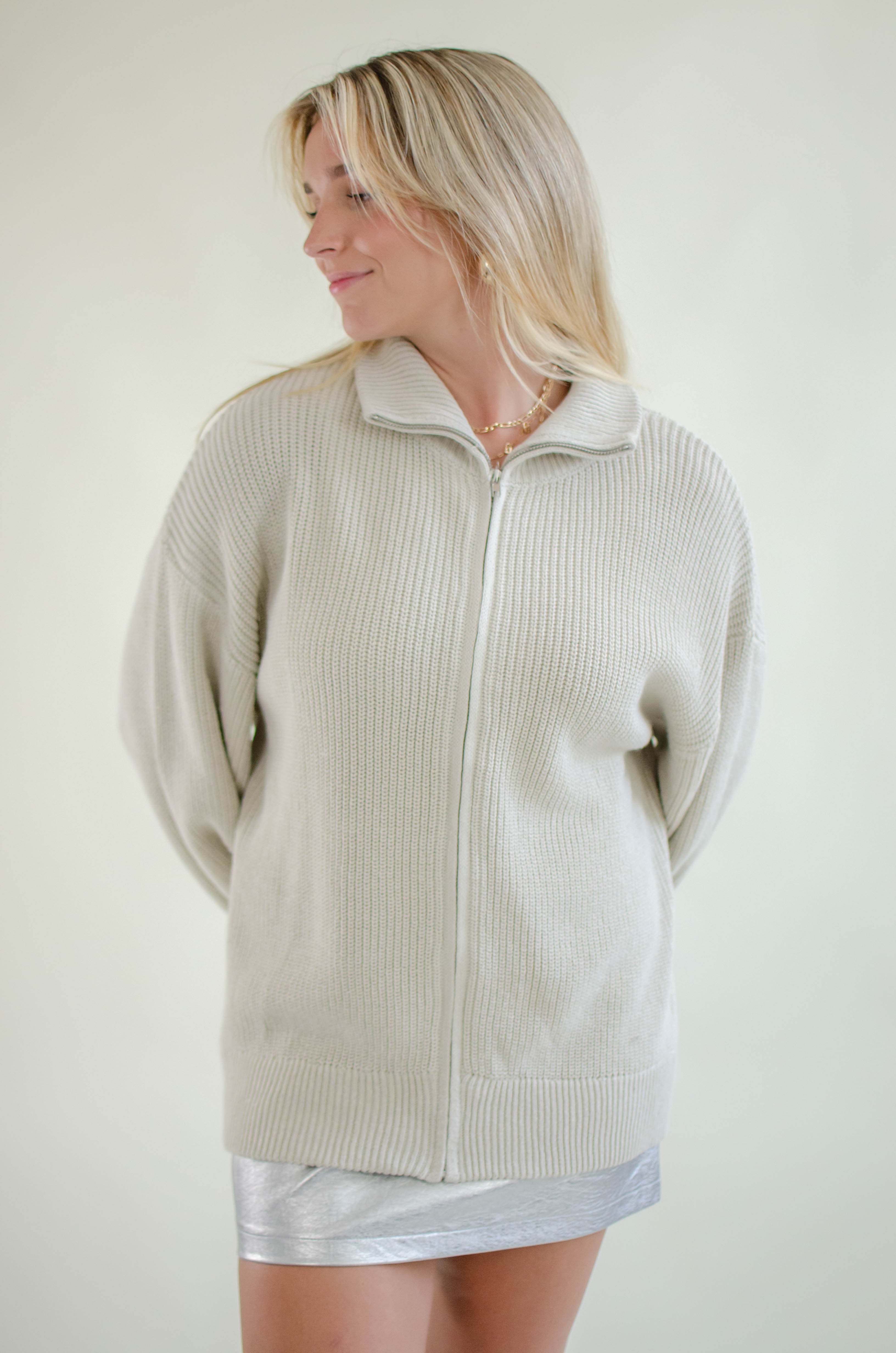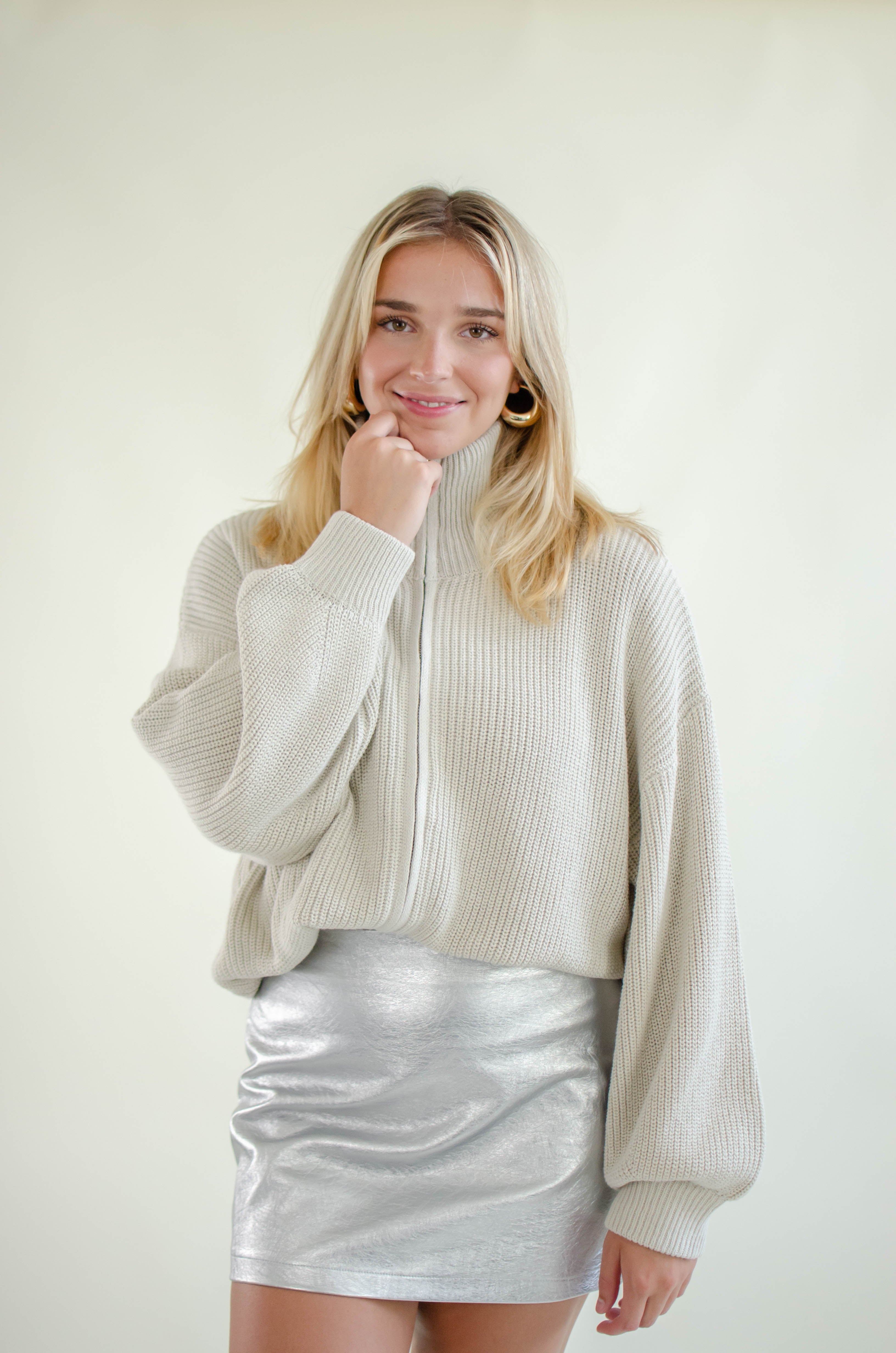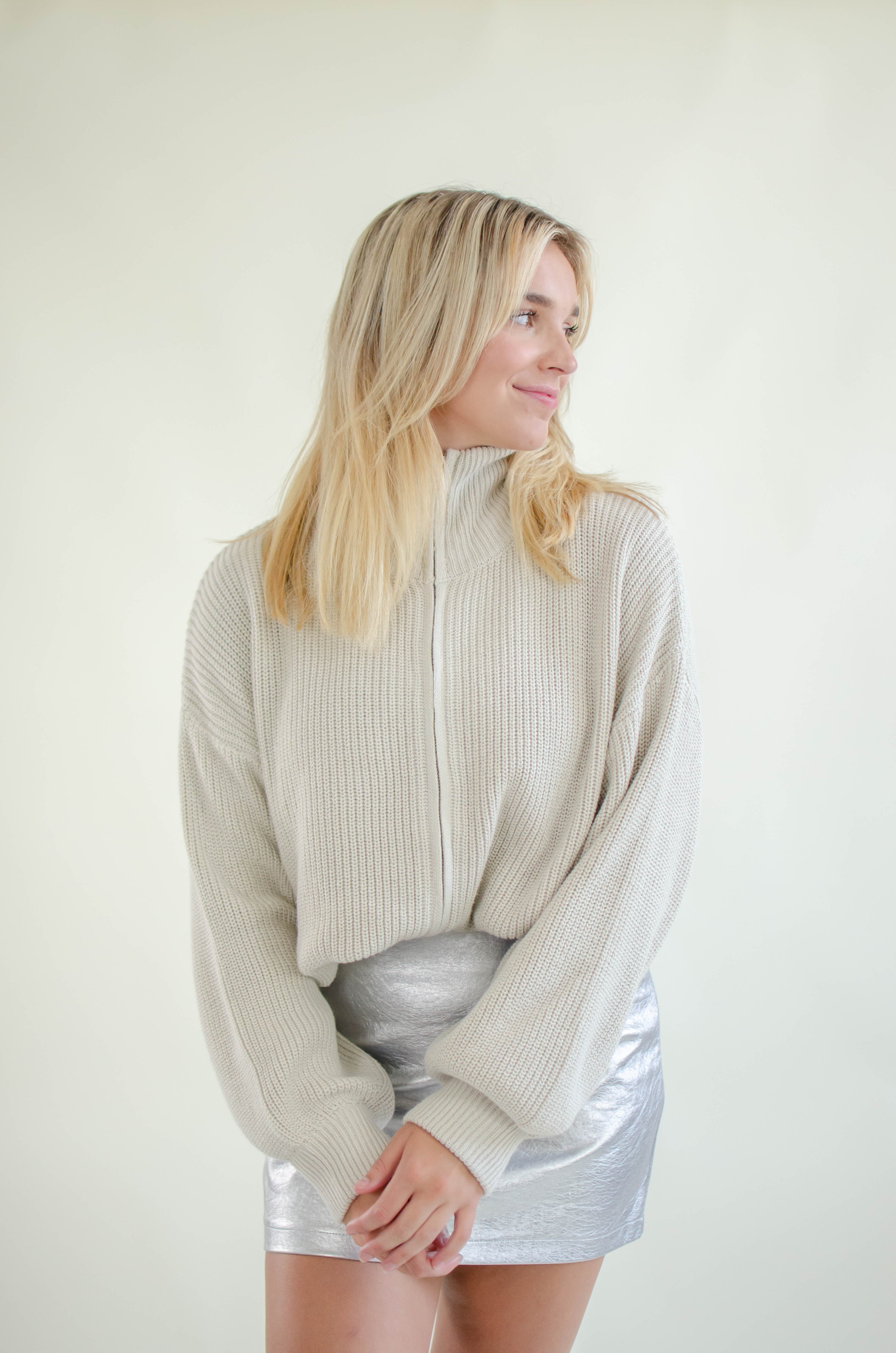 It's back!! Instant sell out last season.. A sporty classic for cooler weather, our Jones Sweater features a high neck zip front closure, oversized collar, ribbed detail, comfy drop shoulders, full length hem and high stretch super-soft knit! Pair with leggings, denim, leather and more.