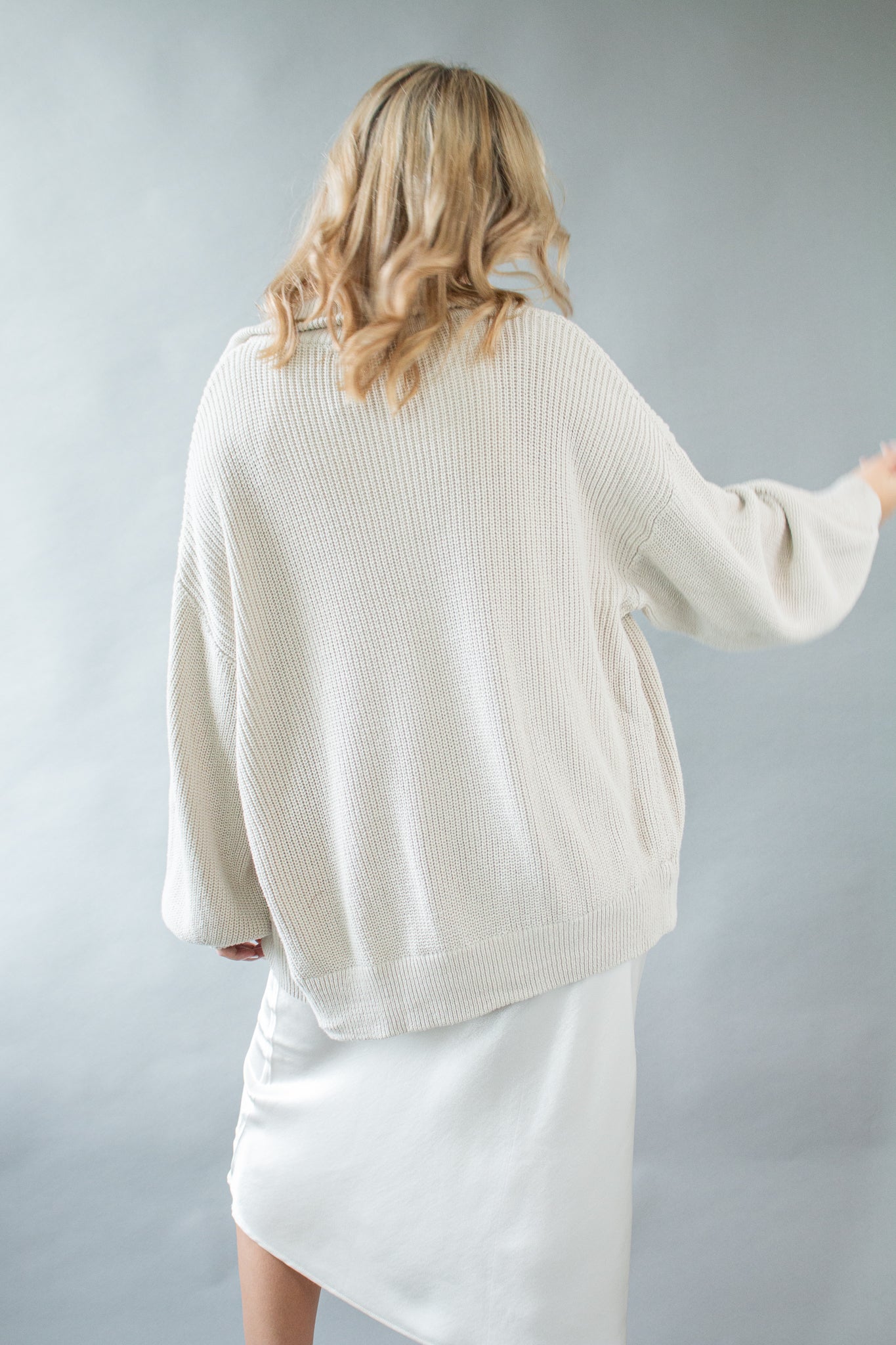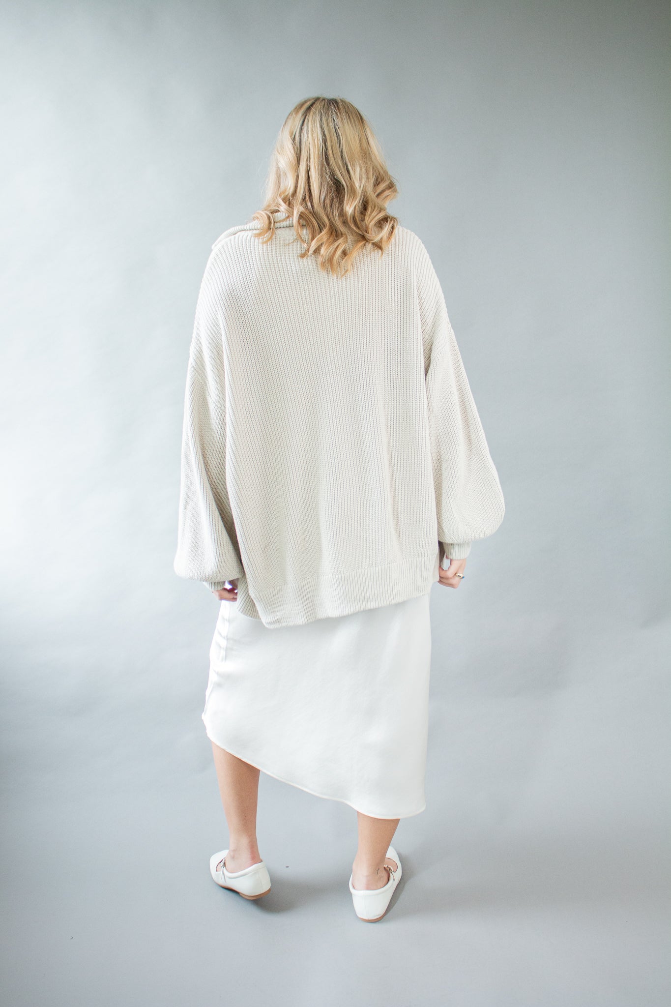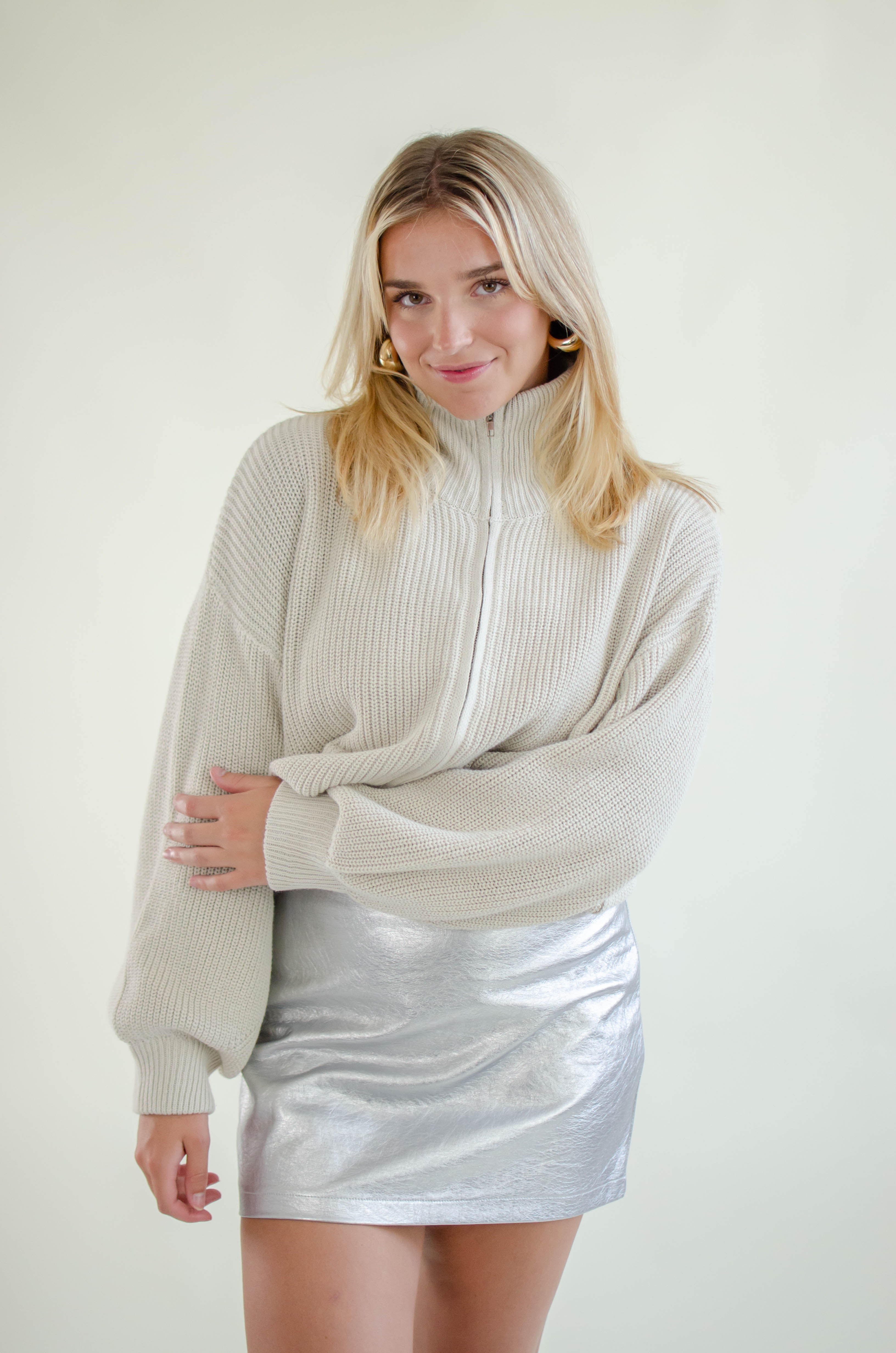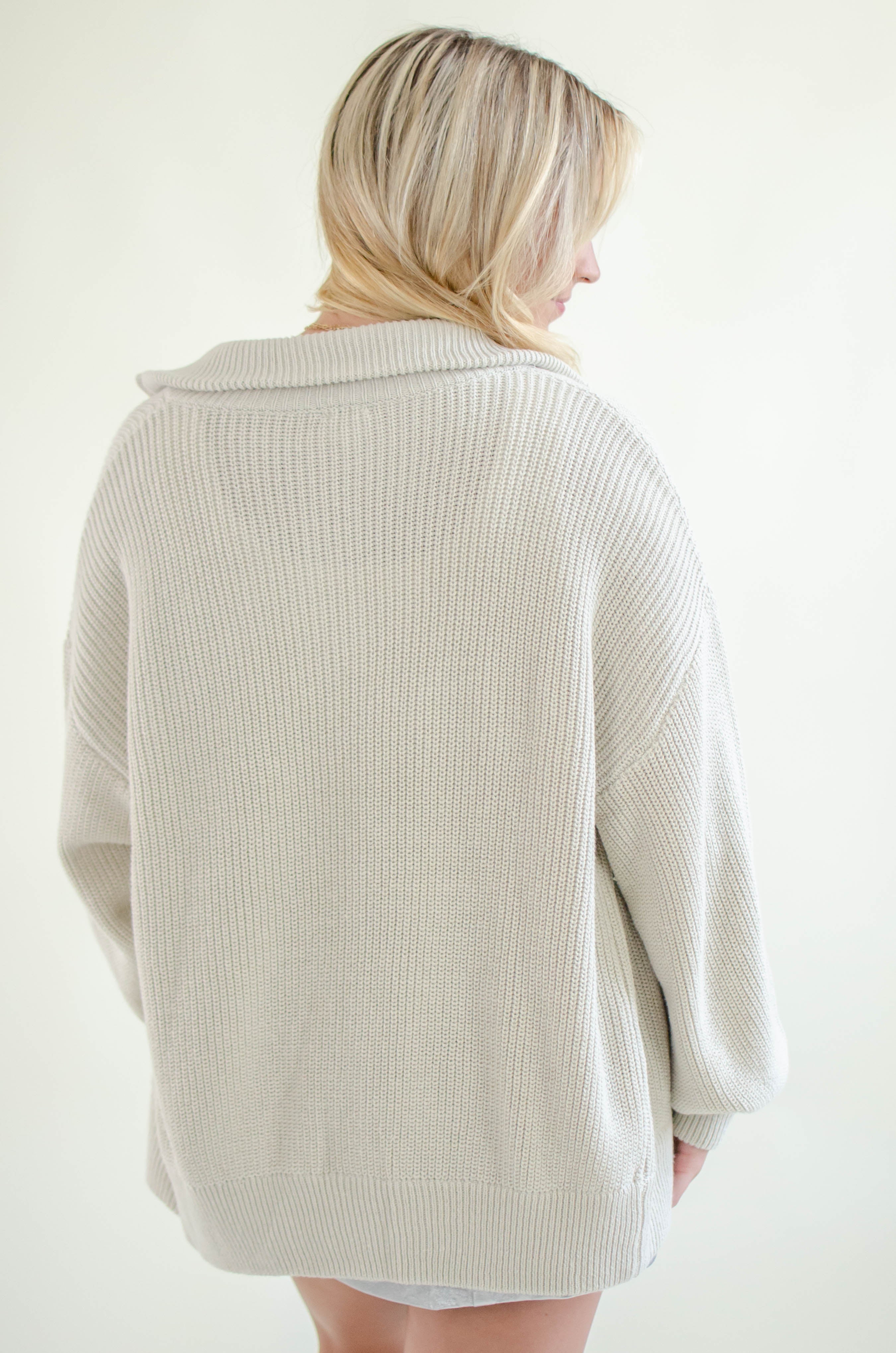 It's back!! Instant sell out last season.. A sporty classic for cooler weather, our Jones Sweater features a high neck zip front closure, oversized collar, ribbed detail, comfy drop shoulders, full length hem and high stretch super-soft knit! Pair with leggings, denim, leather and more.