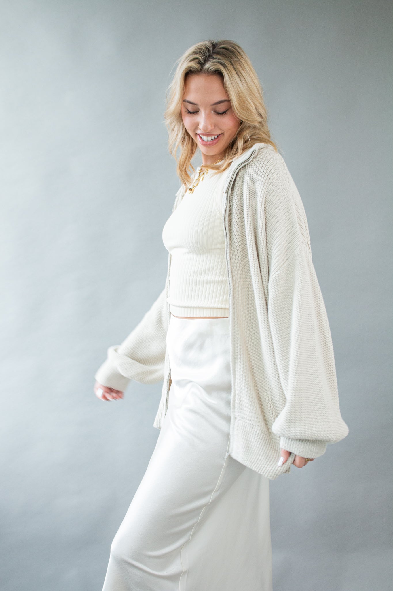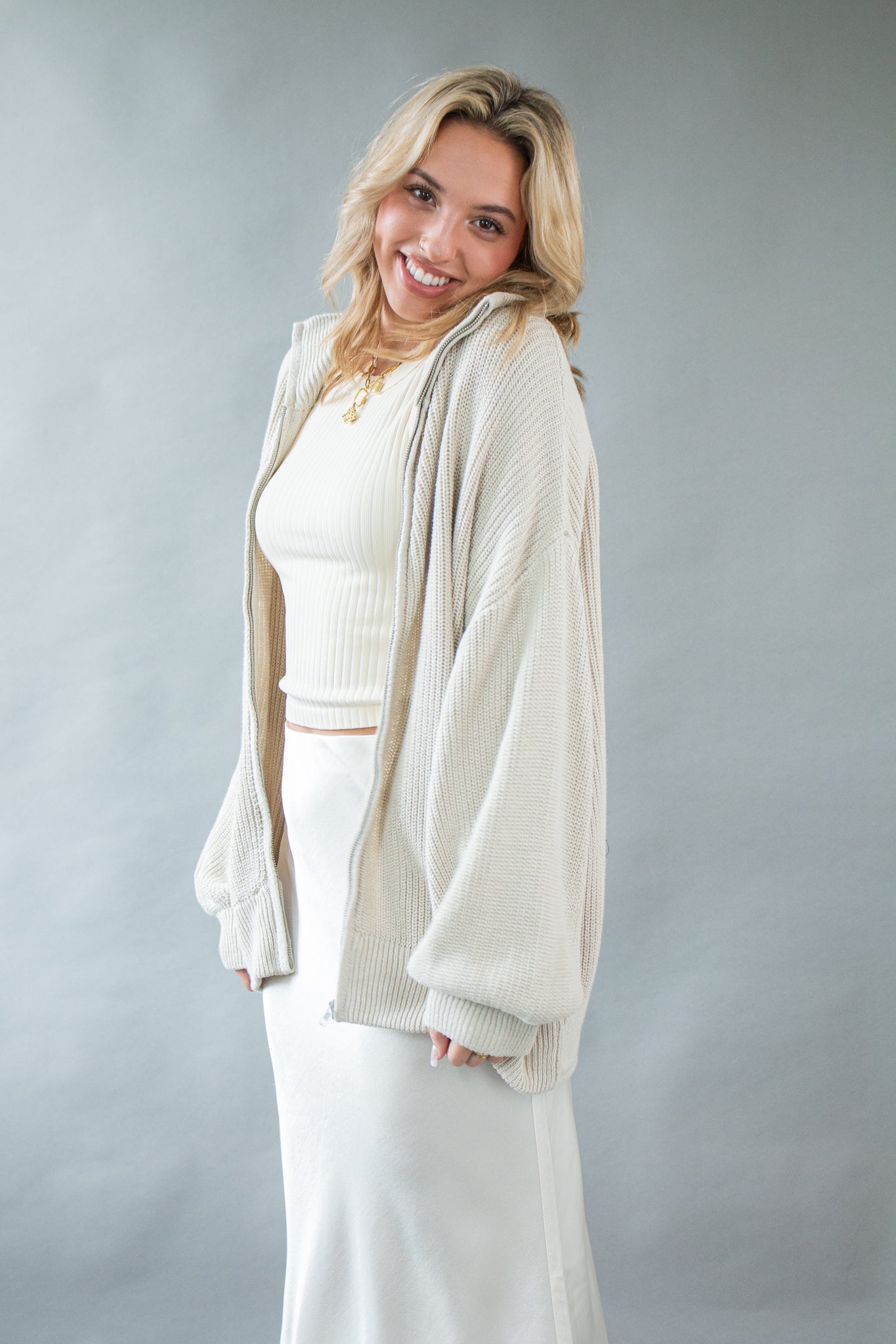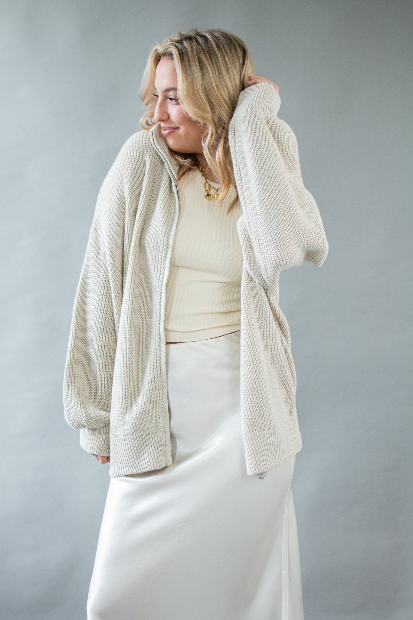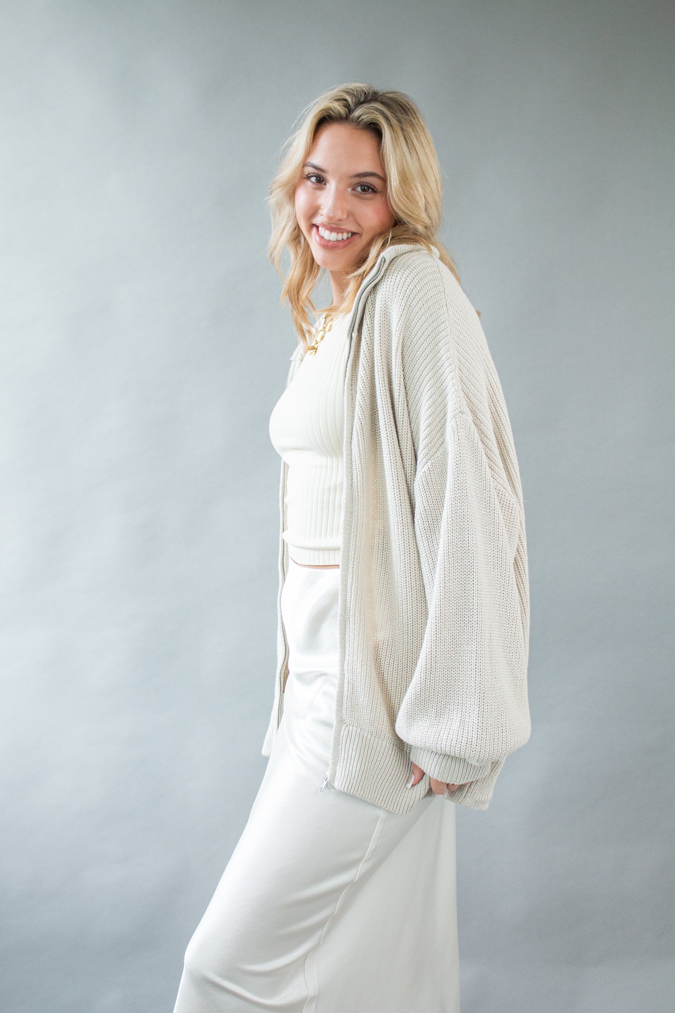 It's back!! Instant sell out last season.. A sporty classic for cooler weather, our Jones Sweater features a high neck zip front closure, oversized collar, ribbed detail, comfy drop shoulders, full length hem and high stretch super-soft knit! Pair with leggings, denim, leather and more.