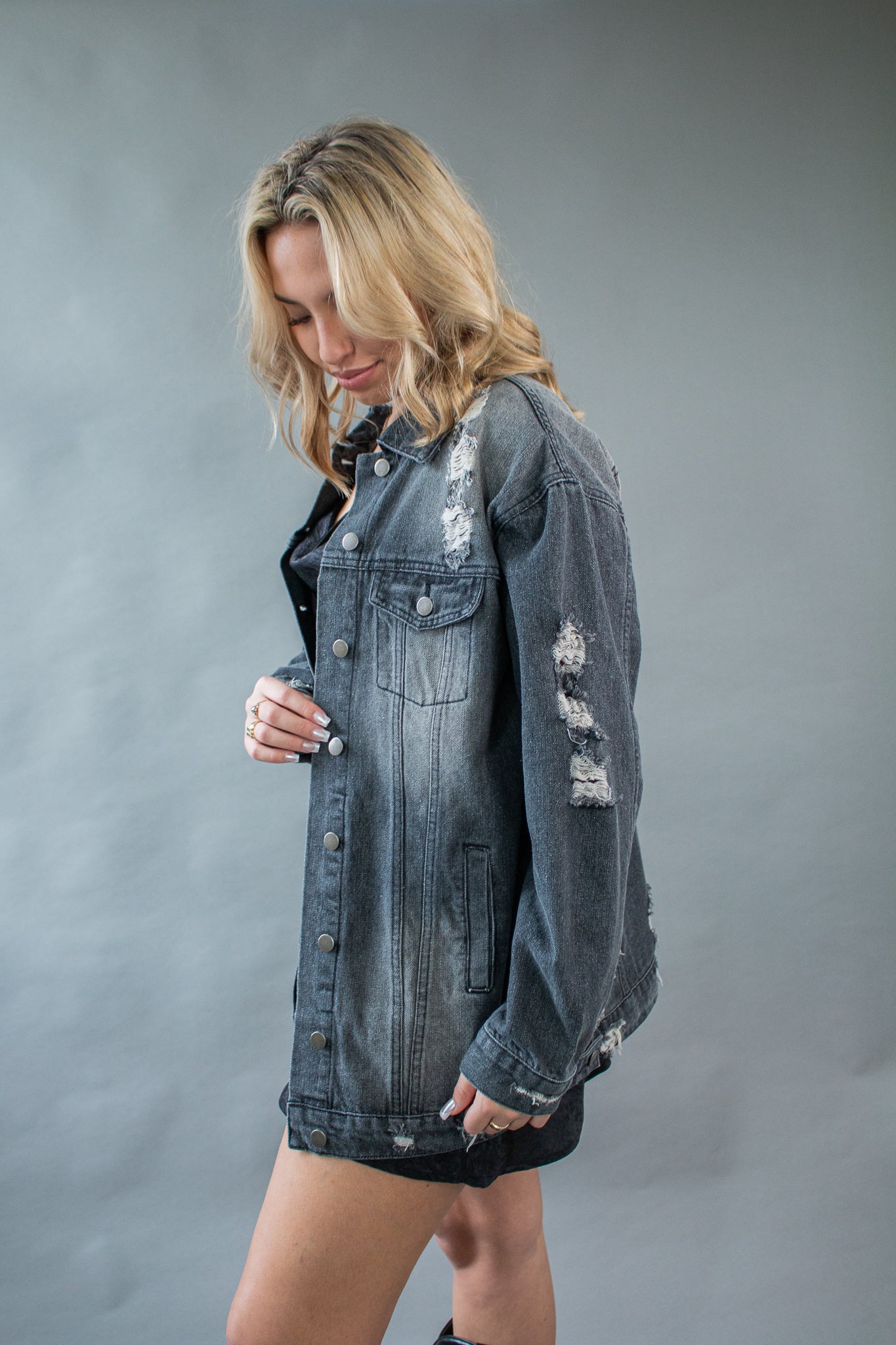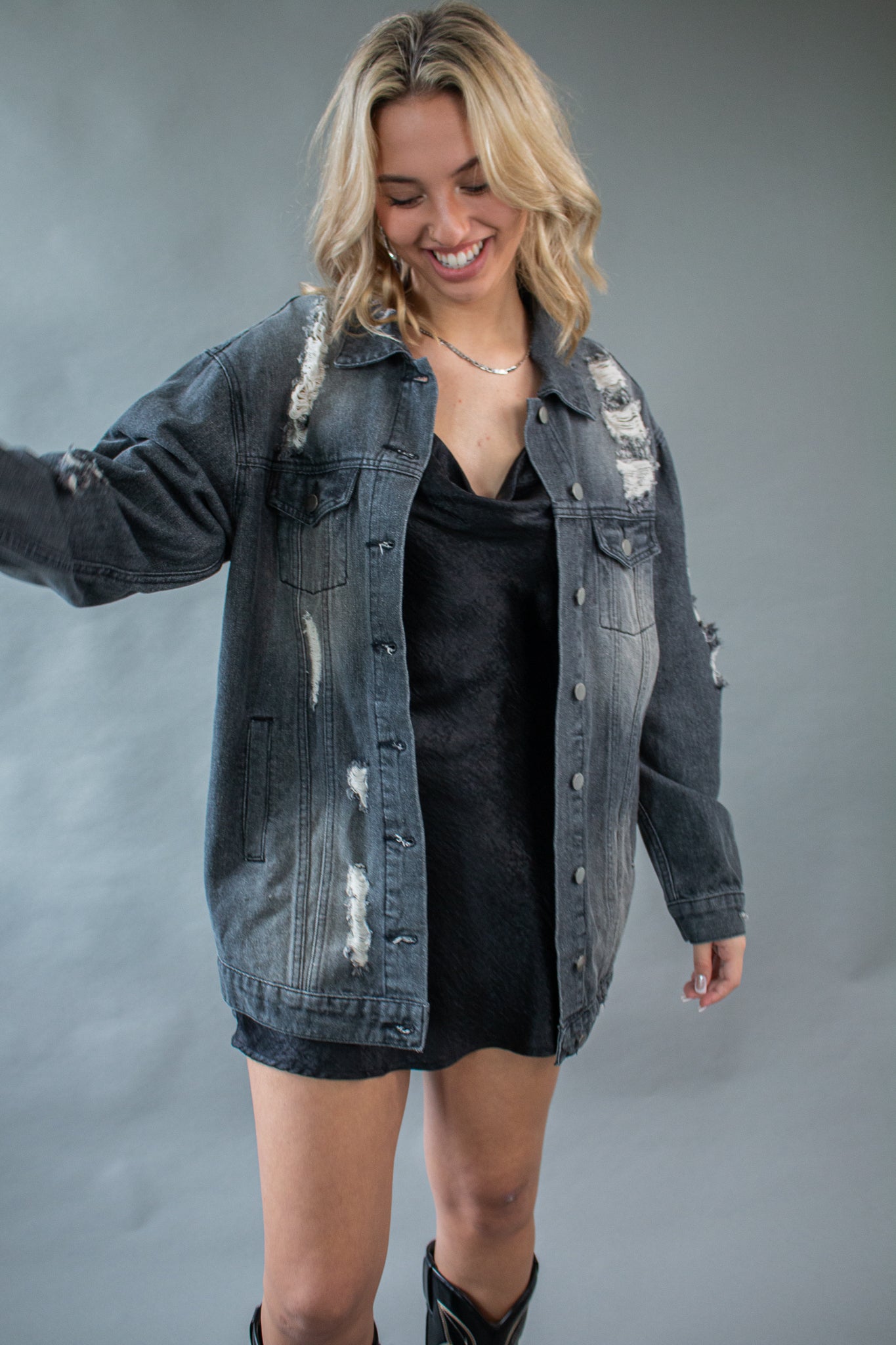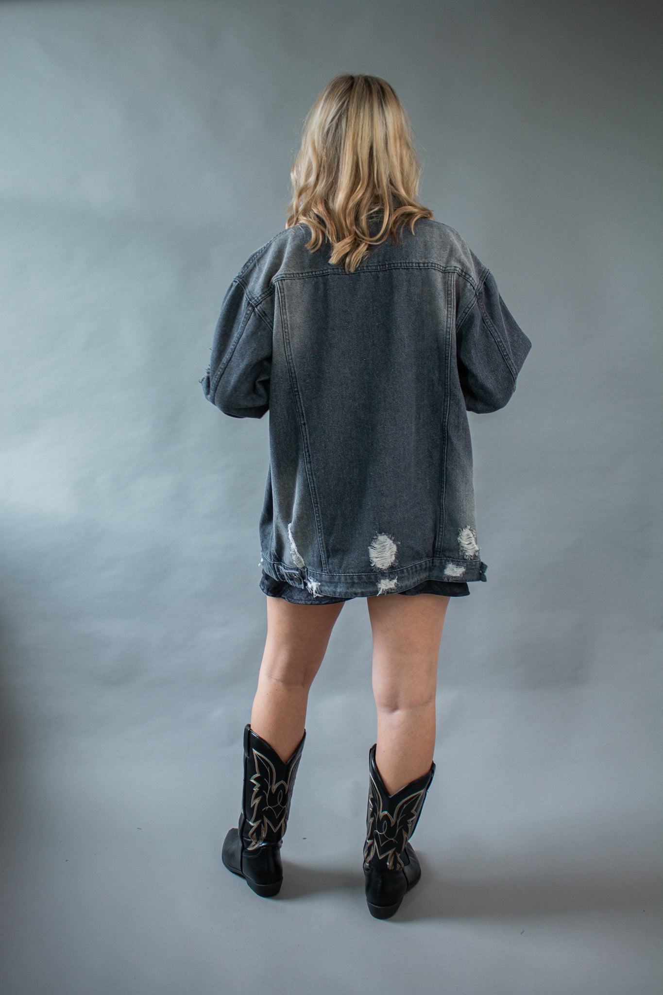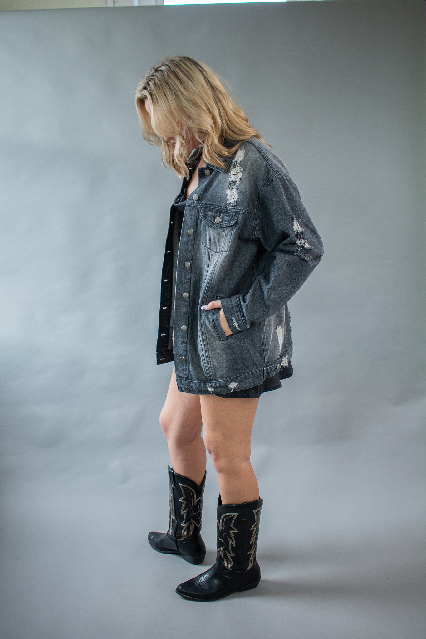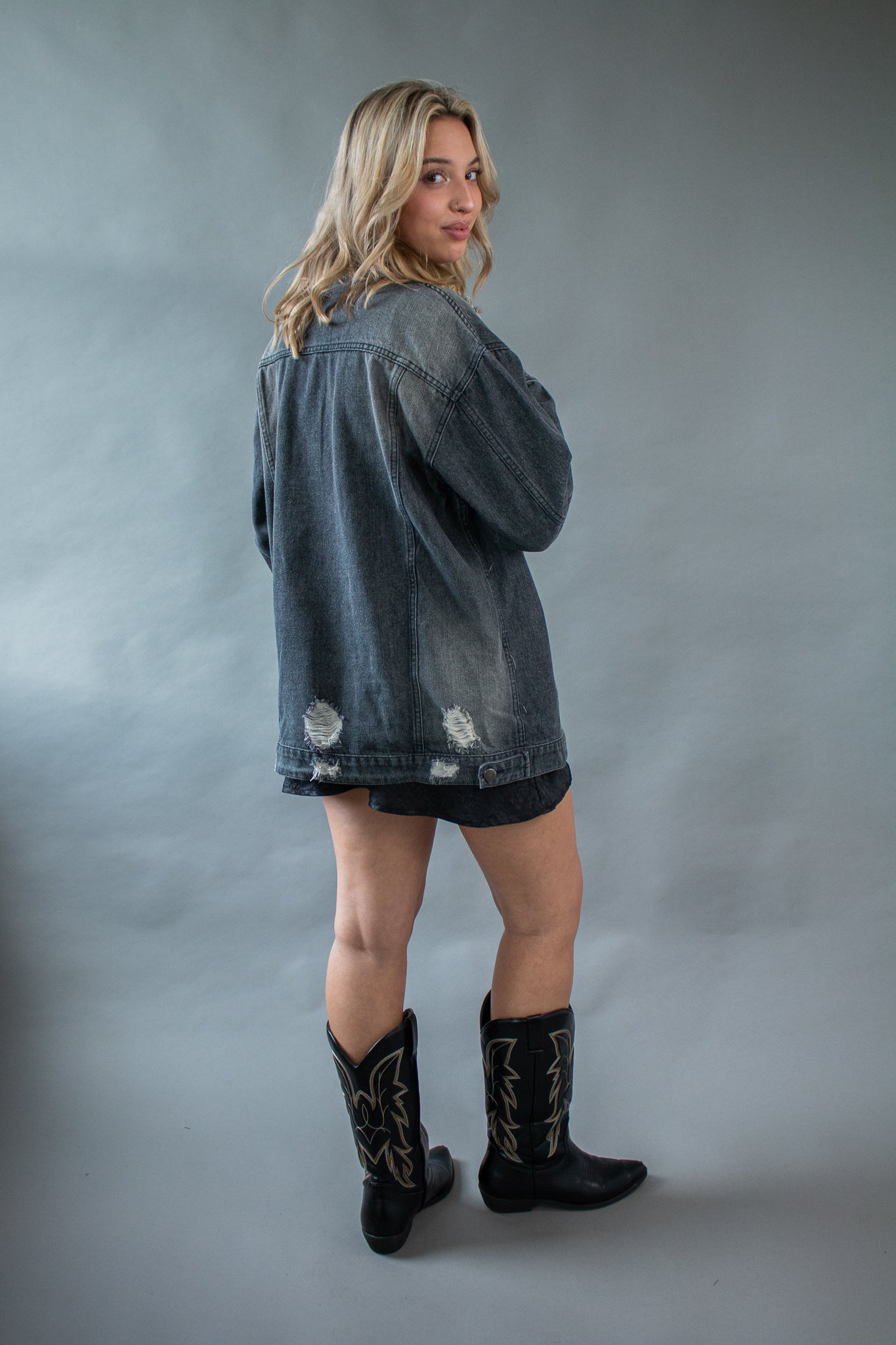We love the 'stole your boyfriend's jacket' vibe our Livvie Denim Jacket gives. A loose fit, slightly distressed, dark wash classic denim jacket with double breast pockets, button closure, cuffed sleeve and space for layering! Size up for a slouchy grunge vibe, or stick to your usual size for more a tailored cut.