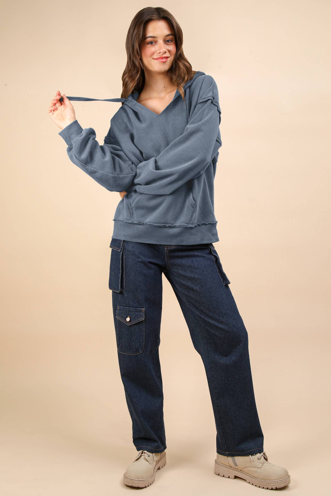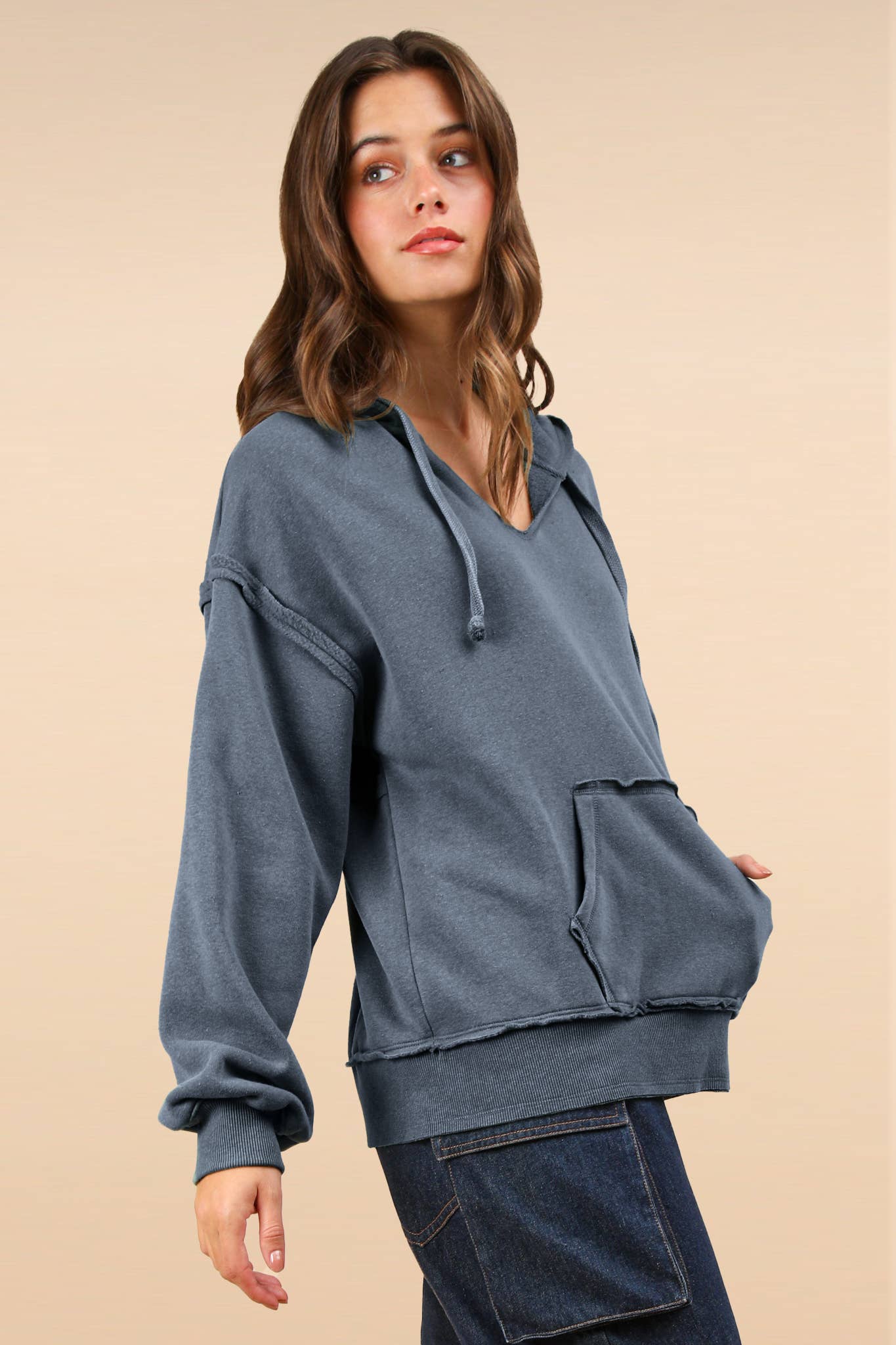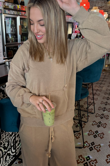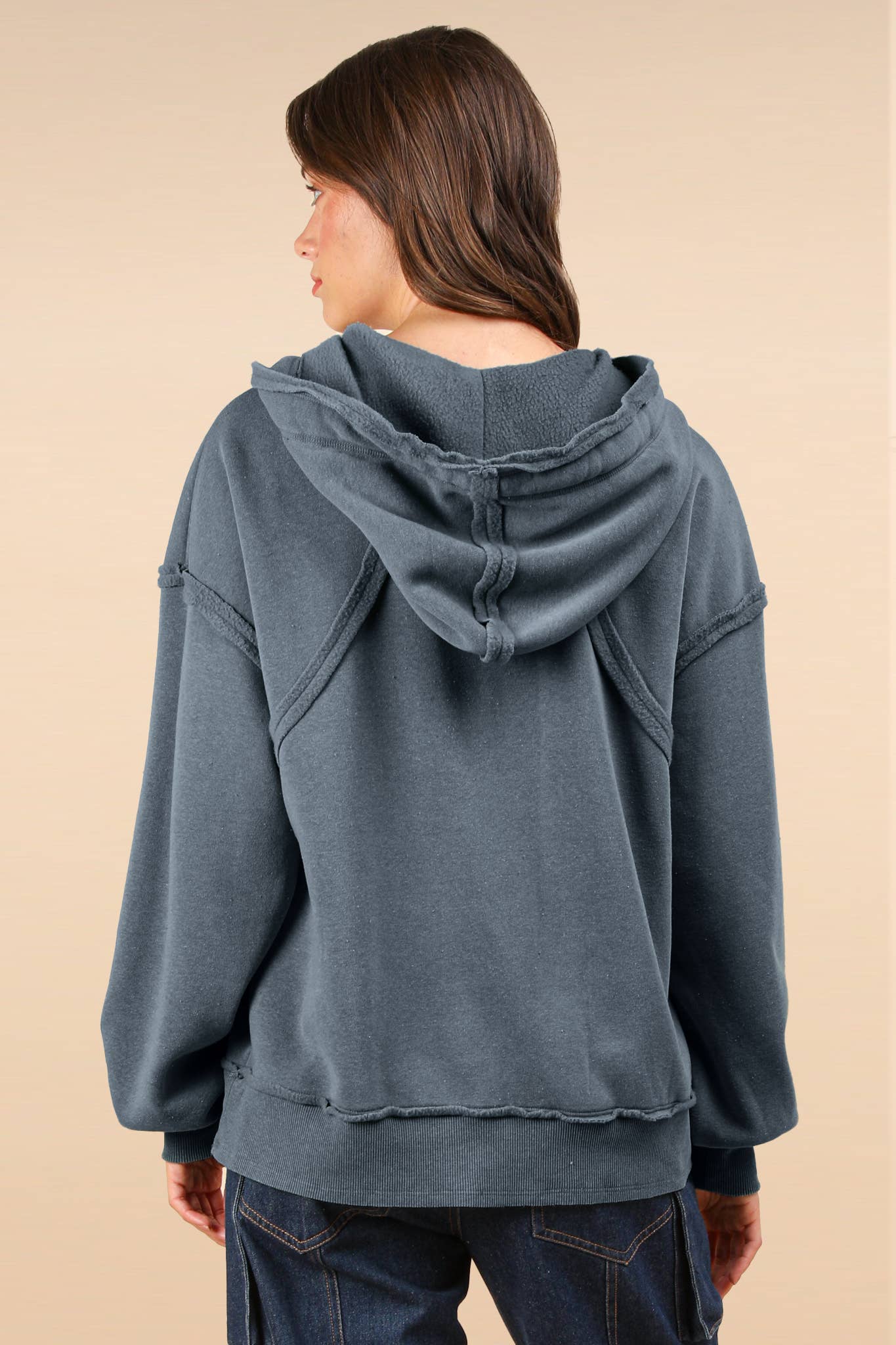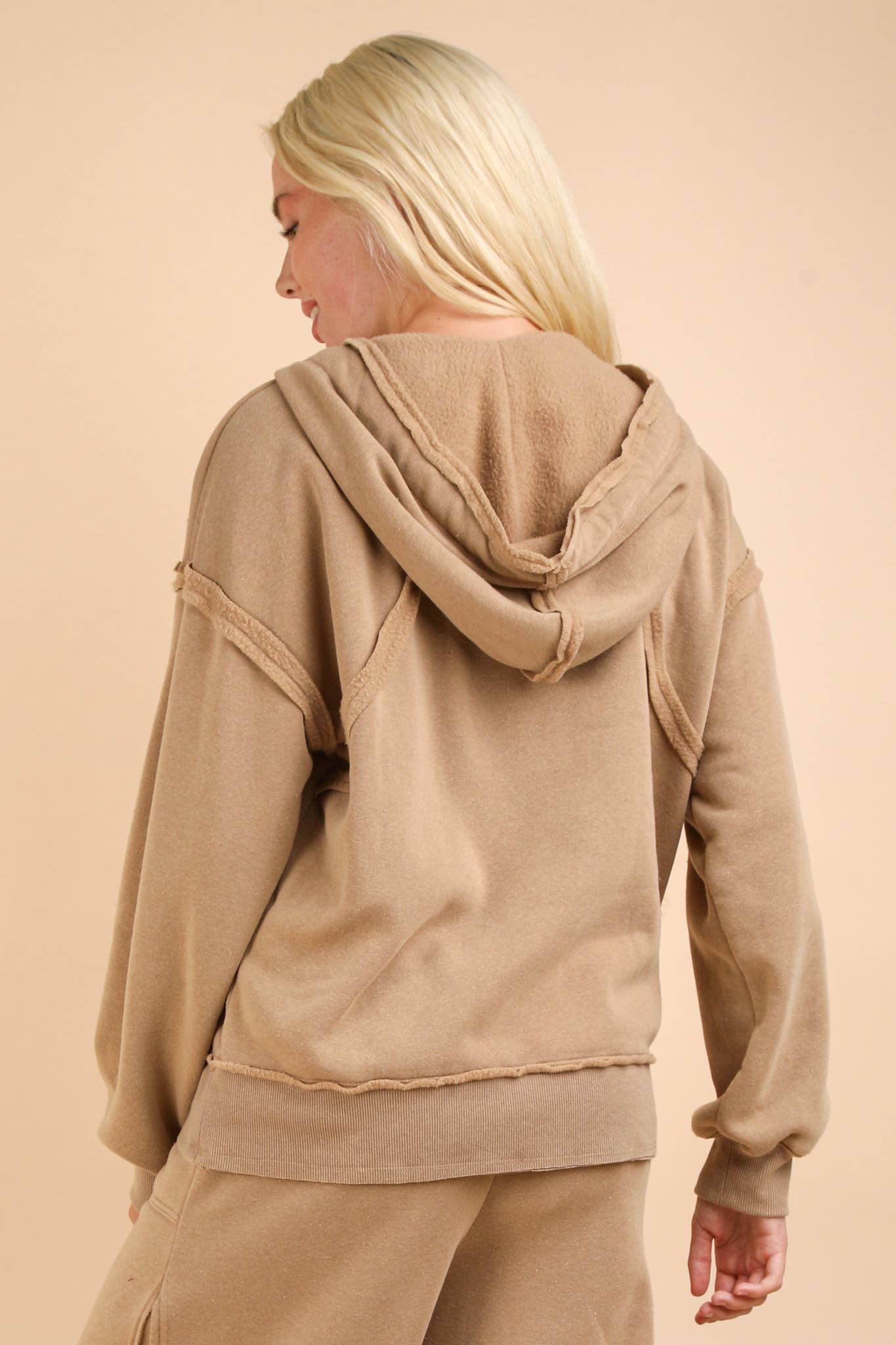 • Oversized Brushed Soft French Terry Knit Hoodie Top