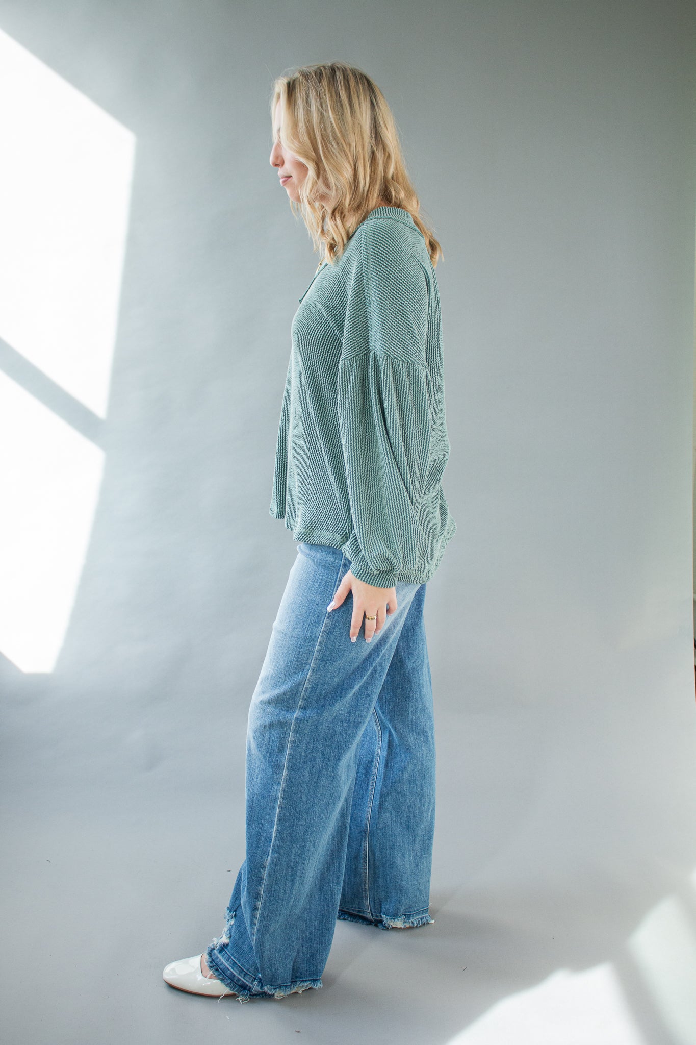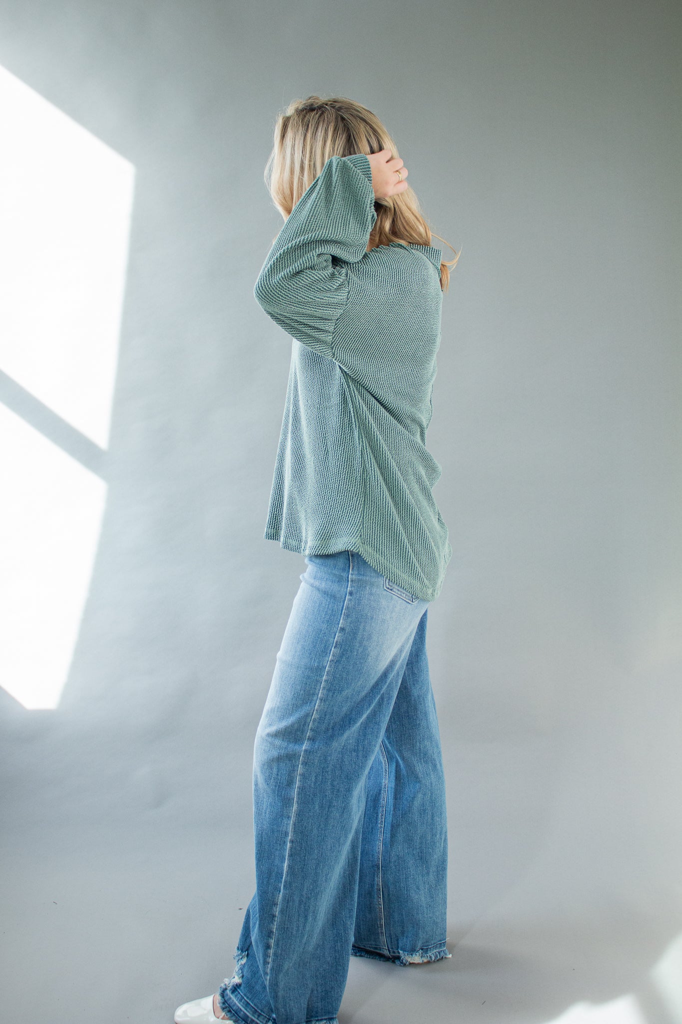 Wide Neck Band Oversized Comfy Soft Two Tone Double Knit Top