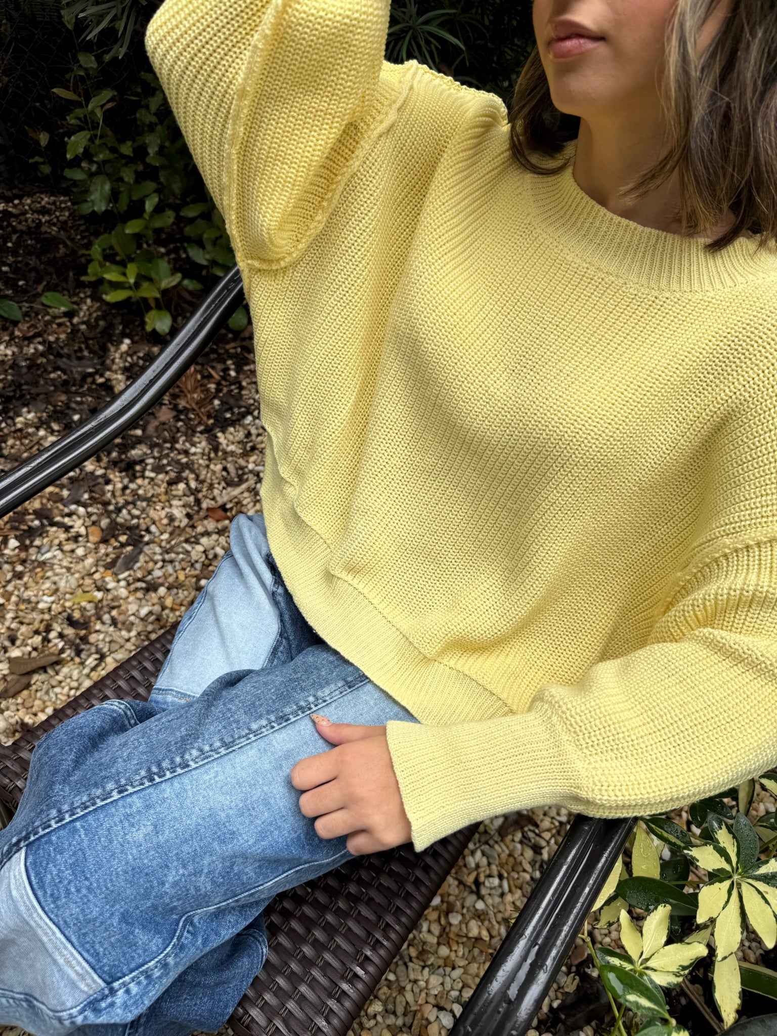 Brighten your wardrobe with the Banana Breeze Oversized Knit Sweater — a soft, lightweight knit that brings effortless charm to any outfit. Designed with a relaxed, slouchy fit and dropped shoulders, this sweater drapes beautifully for that perfectly undone look. The airy knit texture makes it ideal for transitioning between seasons, while the cheerful pastel hue adds a pop of sunshine to your style. Pair it with denim shorts and sneakers for a casual daytime look, layer over a bralette with wide-leg pants for a chic coastal vibe, or throw it over a swimsuit for the perfect beach-to-boardwalk coverup.