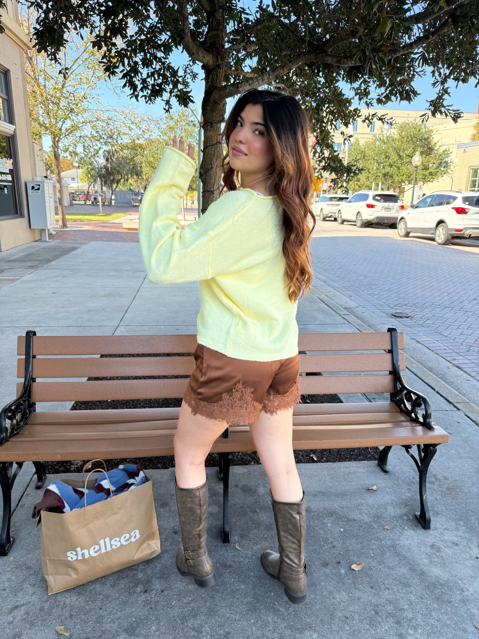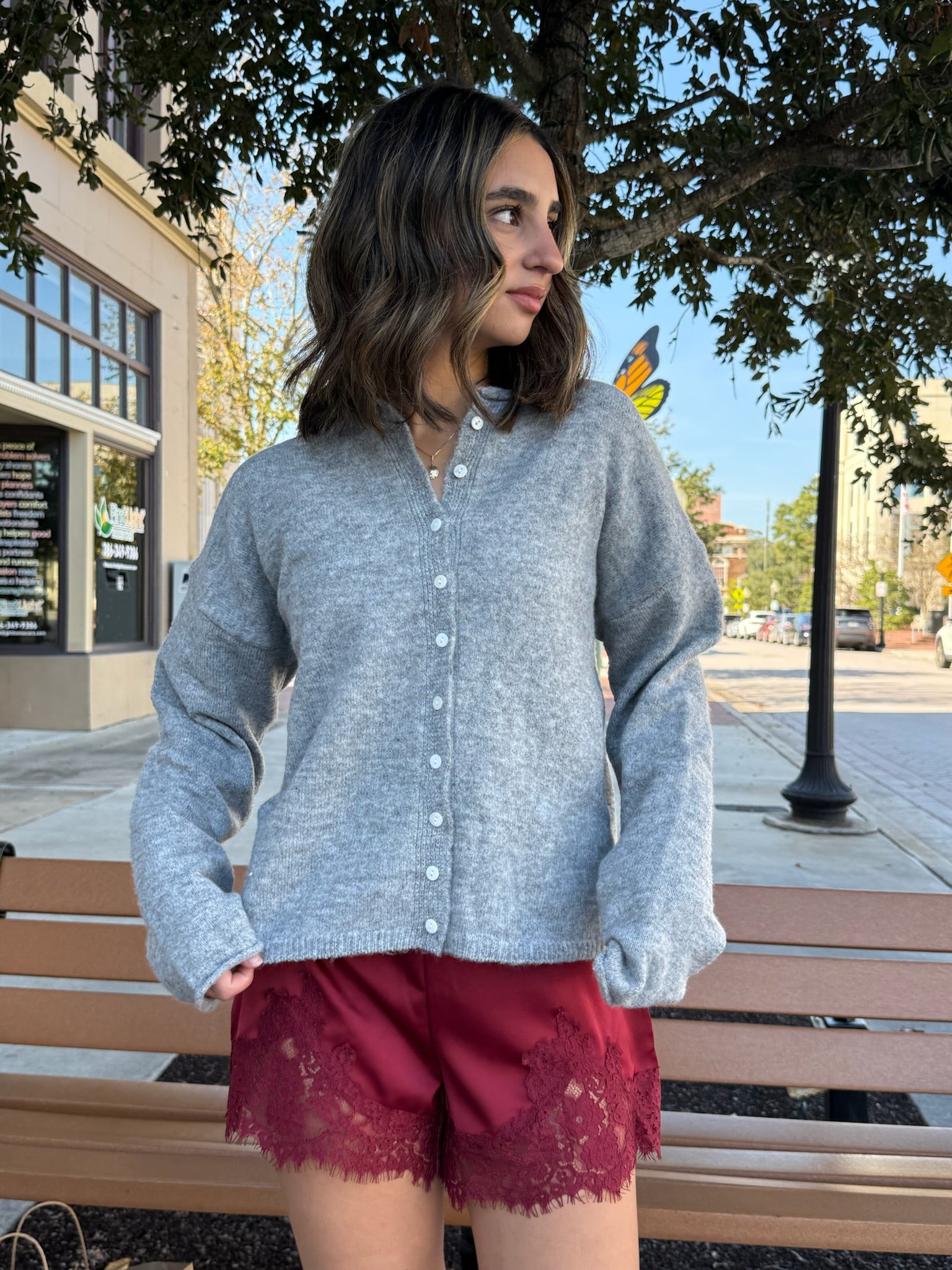 Timeless yet effortlessly cool, The Vienna Cardigan Top is your new go-to layering essential. Crafted from a super soft, lightweight knit, this piece blends comfort and versatility for every season. It features a rolled collar, button-down front, and dropped shoulders for that perfectly relaxed, lived-in feel. The ribbed hem adds a touch of structure, making it easy to style buttoned up as a top or worn open over a tank or dress. From cozy mornings at home to breezy resort nights, this cardigan is the staple you’ll reach for again and again.