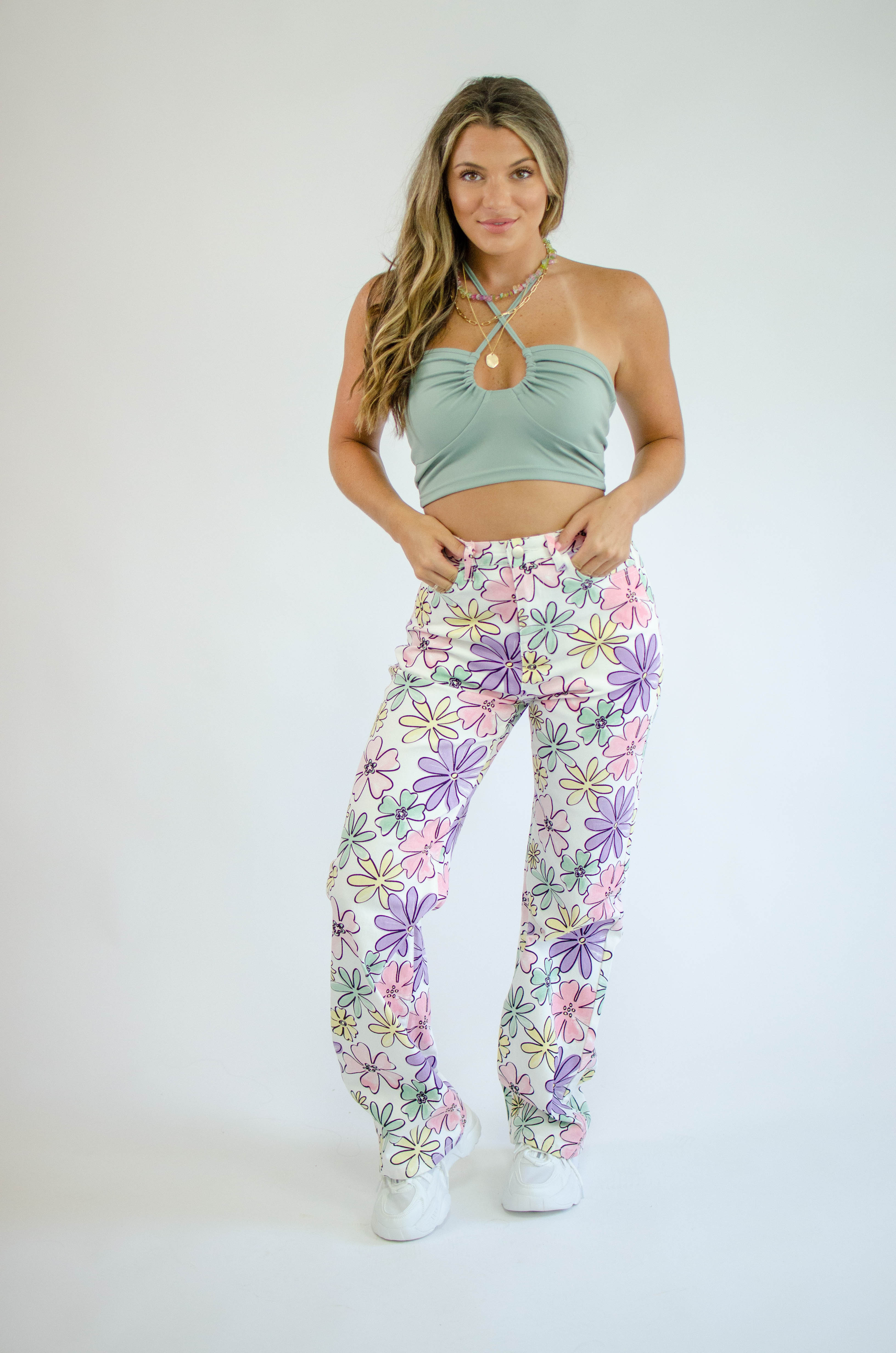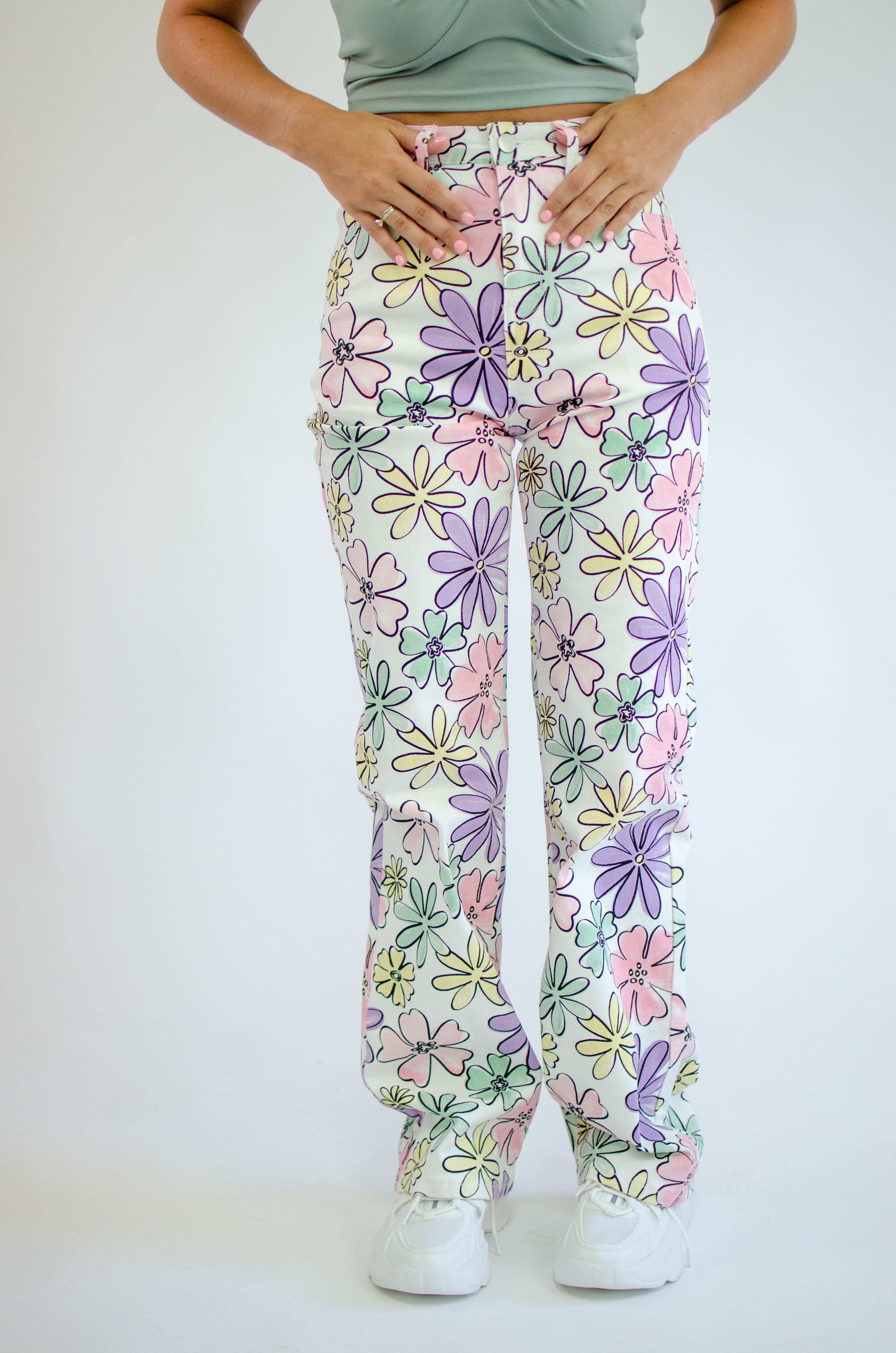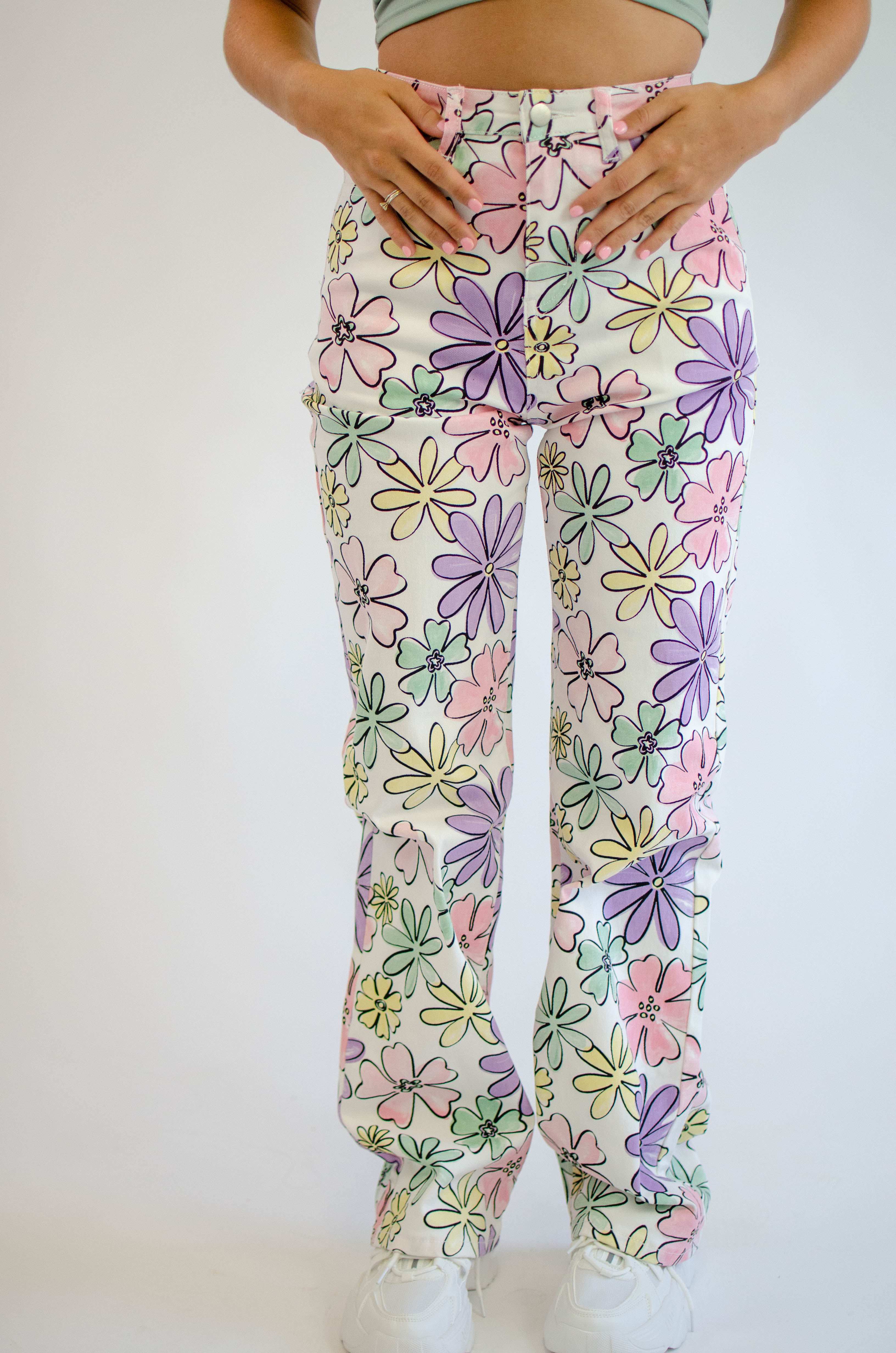 Say hello to the coolest pants you'll ever own. Our Aluna Pants feature a dreamy floral watercolor print, high rise, straight leg, tapered waist and long-leg baggy ankle. We love the pastel color pallet and versatility with pairing! Choose any color from the floral to wear on top, or get a little extra oomph by pattern mixing.