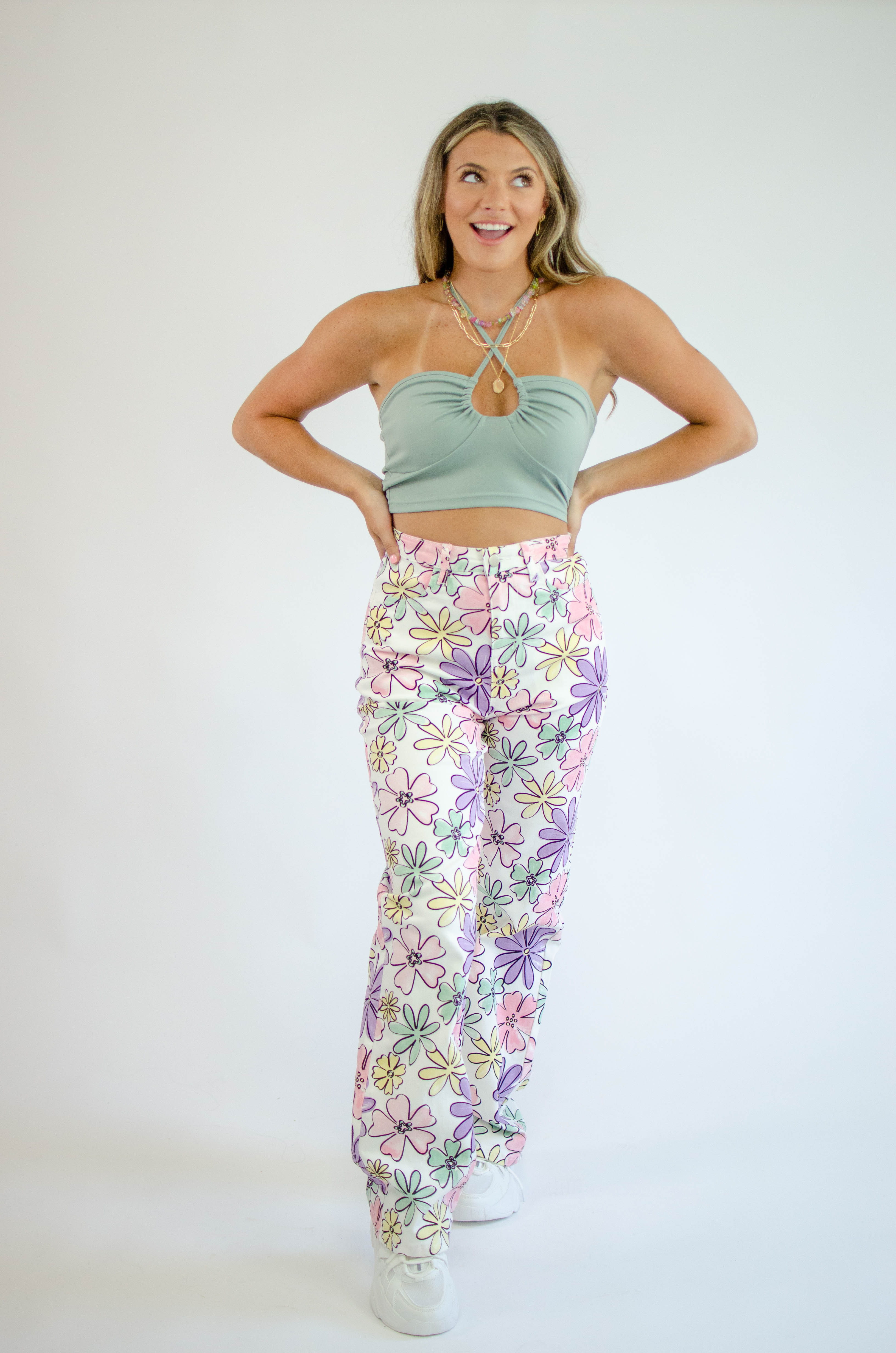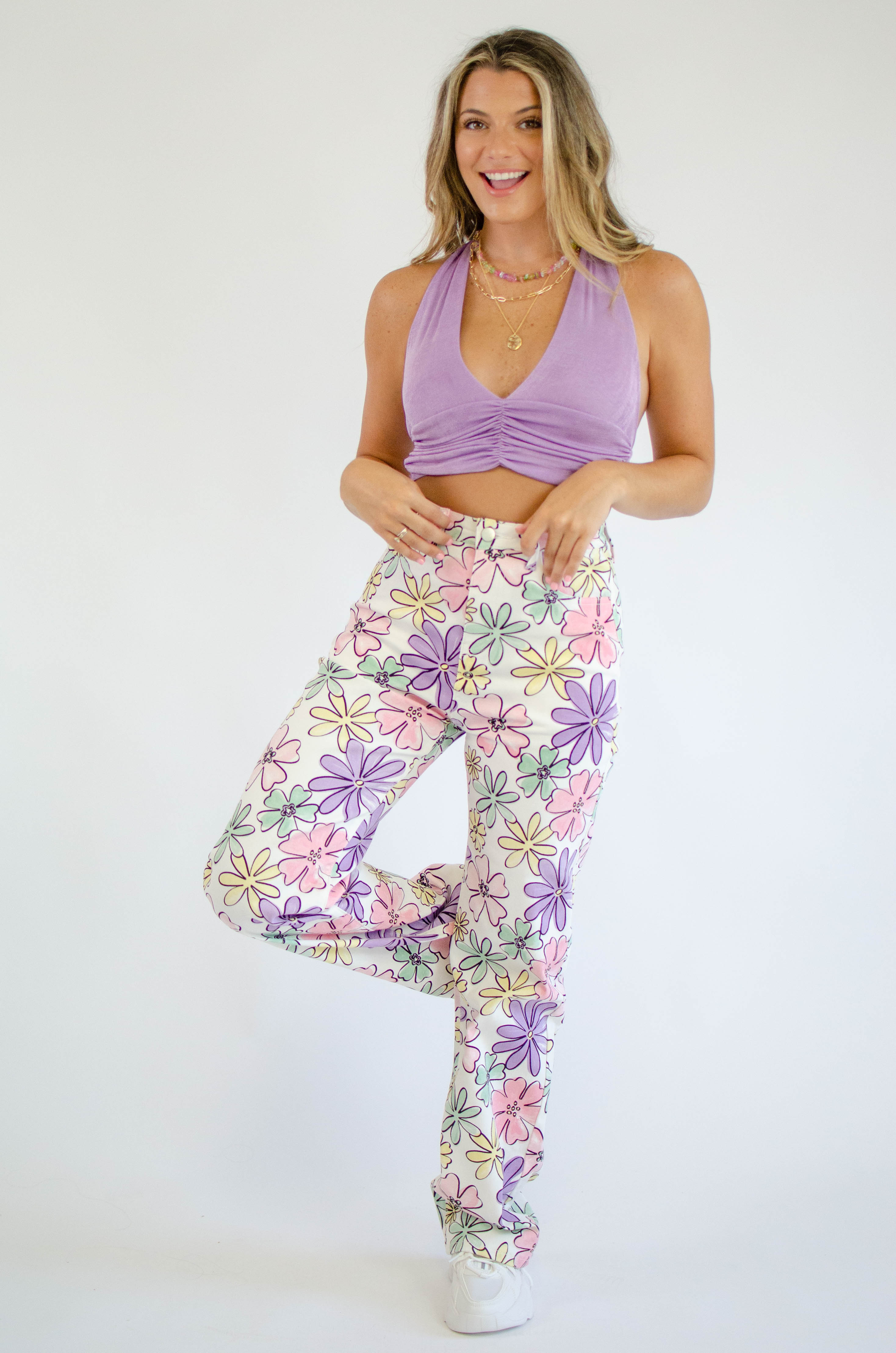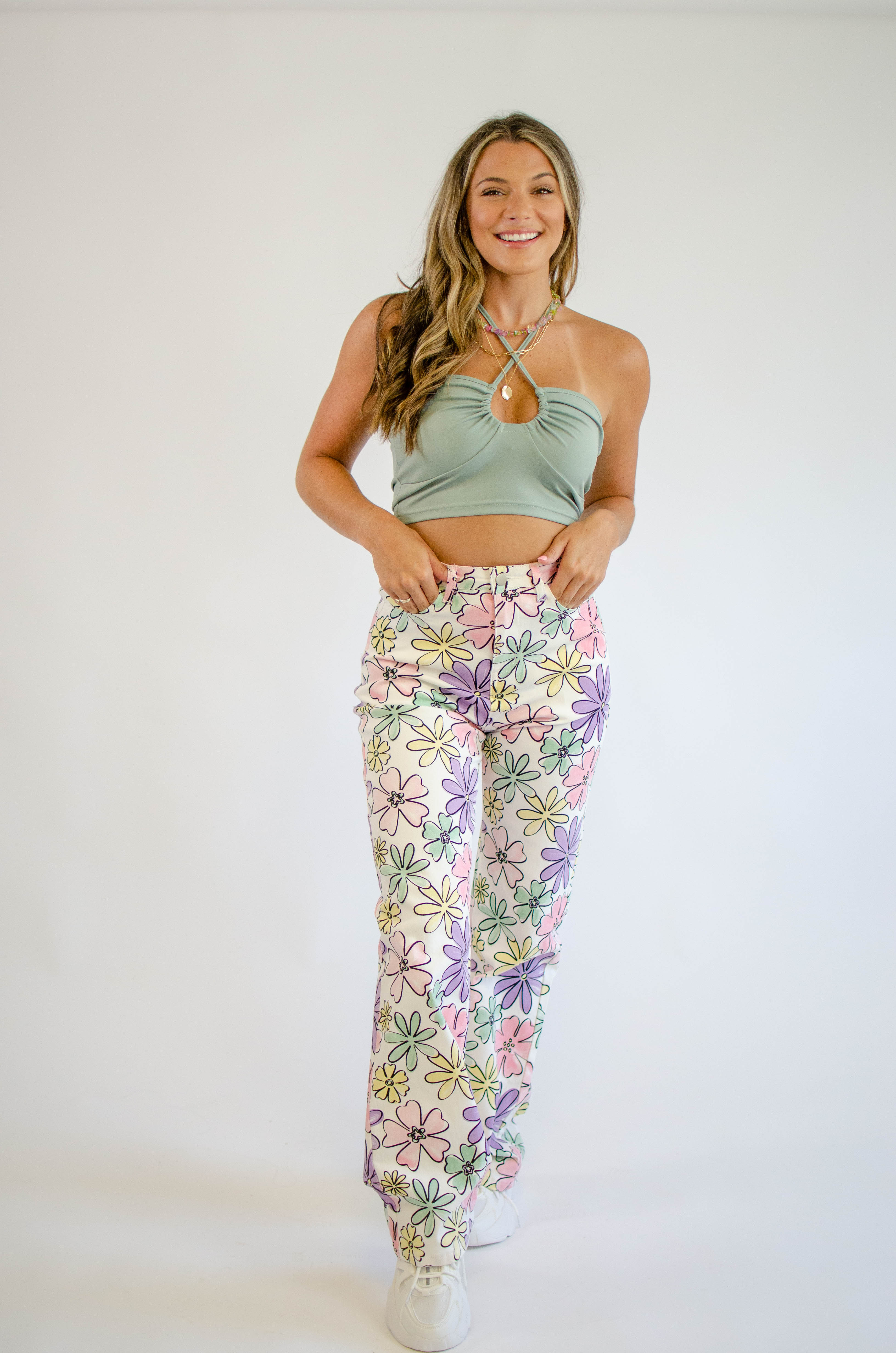 Say hello to the coolest pants you'll ever own. Our Aluna Pants feature a dreamy floral watercolor print, high rise, straight leg, tapered waist and long-leg baggy ankle. We love the pastel color pallet and versatility with pairing! Choose any color from the floral to wear on top, or get a little extra oomph by pattern mixing.