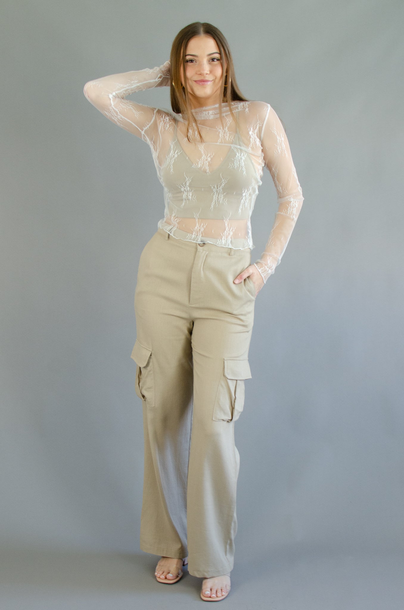 Cargo pants are all the rage, make a chic update in our Olivia Cargos! Featuring a sleek texture, belt loops, comfy fit, zipper fly closure, oversized pockets and baggy wide leg. Pair with crops, bodysuits, graphic tees and knits!