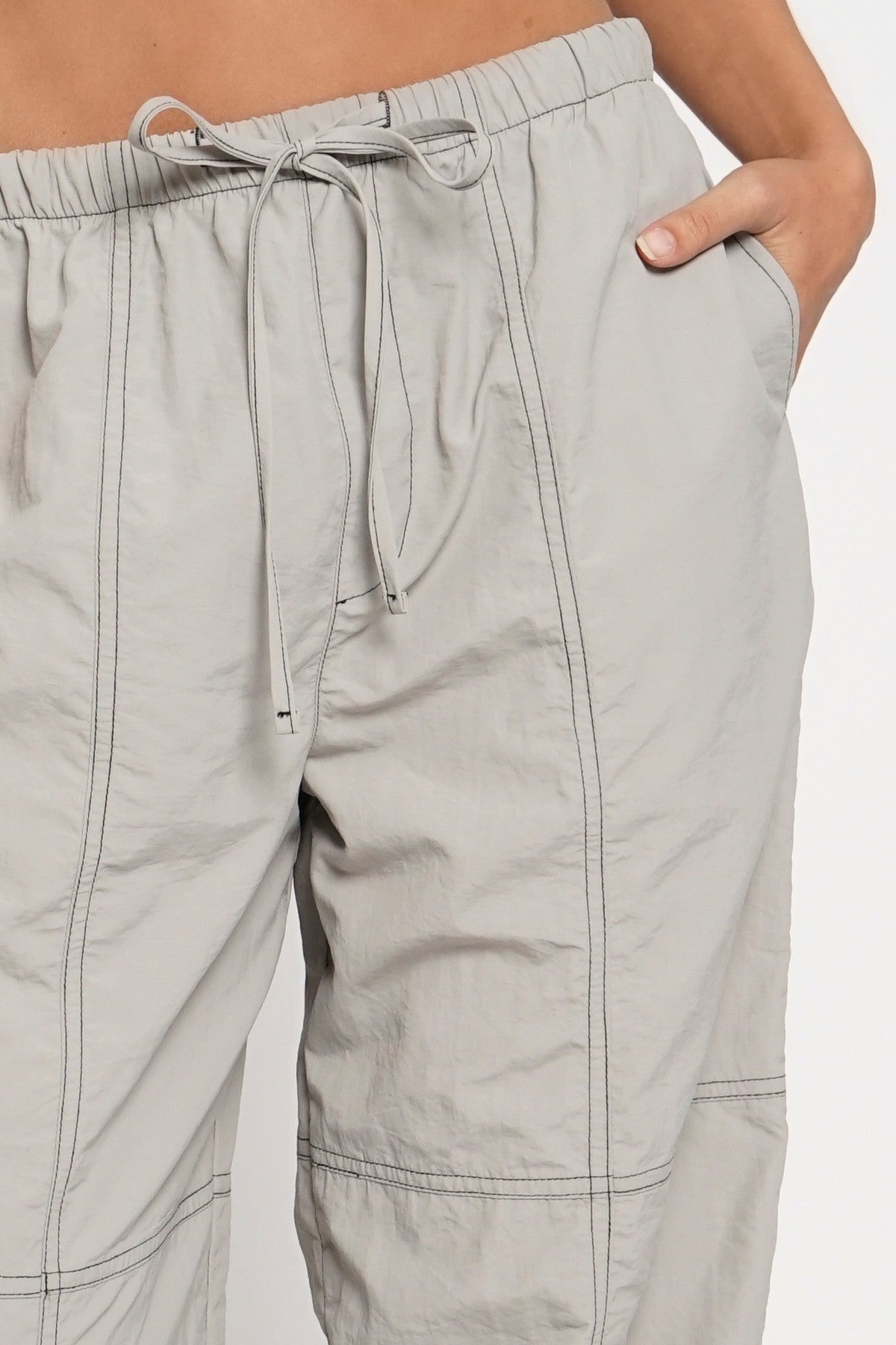 The Urban Contrast Pants bring a streetwear edge with a sleek, functional twist. Crafted from durable woven nylon, these full-length pants feature bold contrast stitching for an elevated look. The adjustable drawstring waist and pull-cord hems let you customize your fit—cinched for a jogger vibe or wide for a relaxed silhouette. Finished with roomy pockets, they’re as practical as they are stylish, perfect for everyday wear or dressed-up street style.