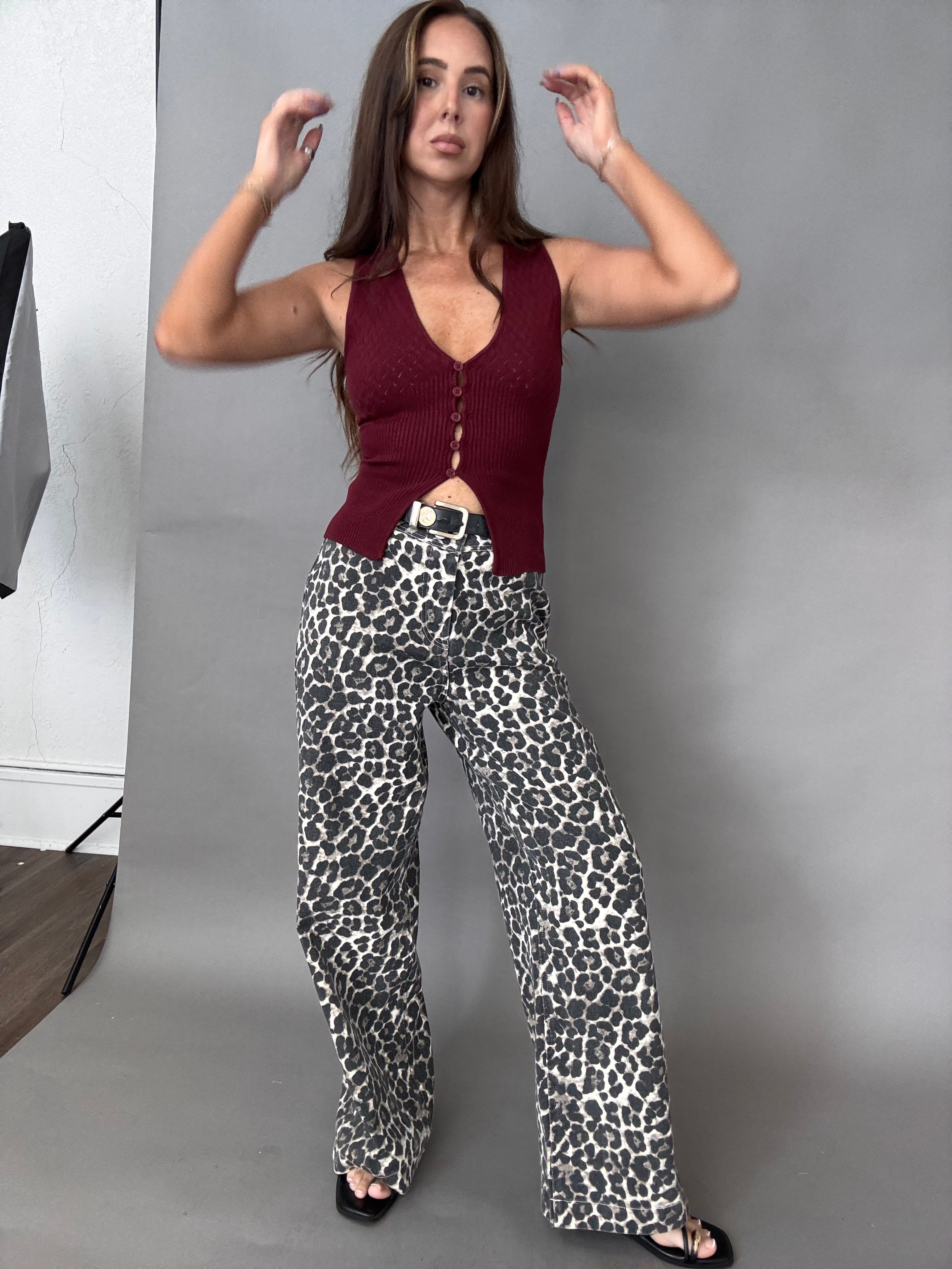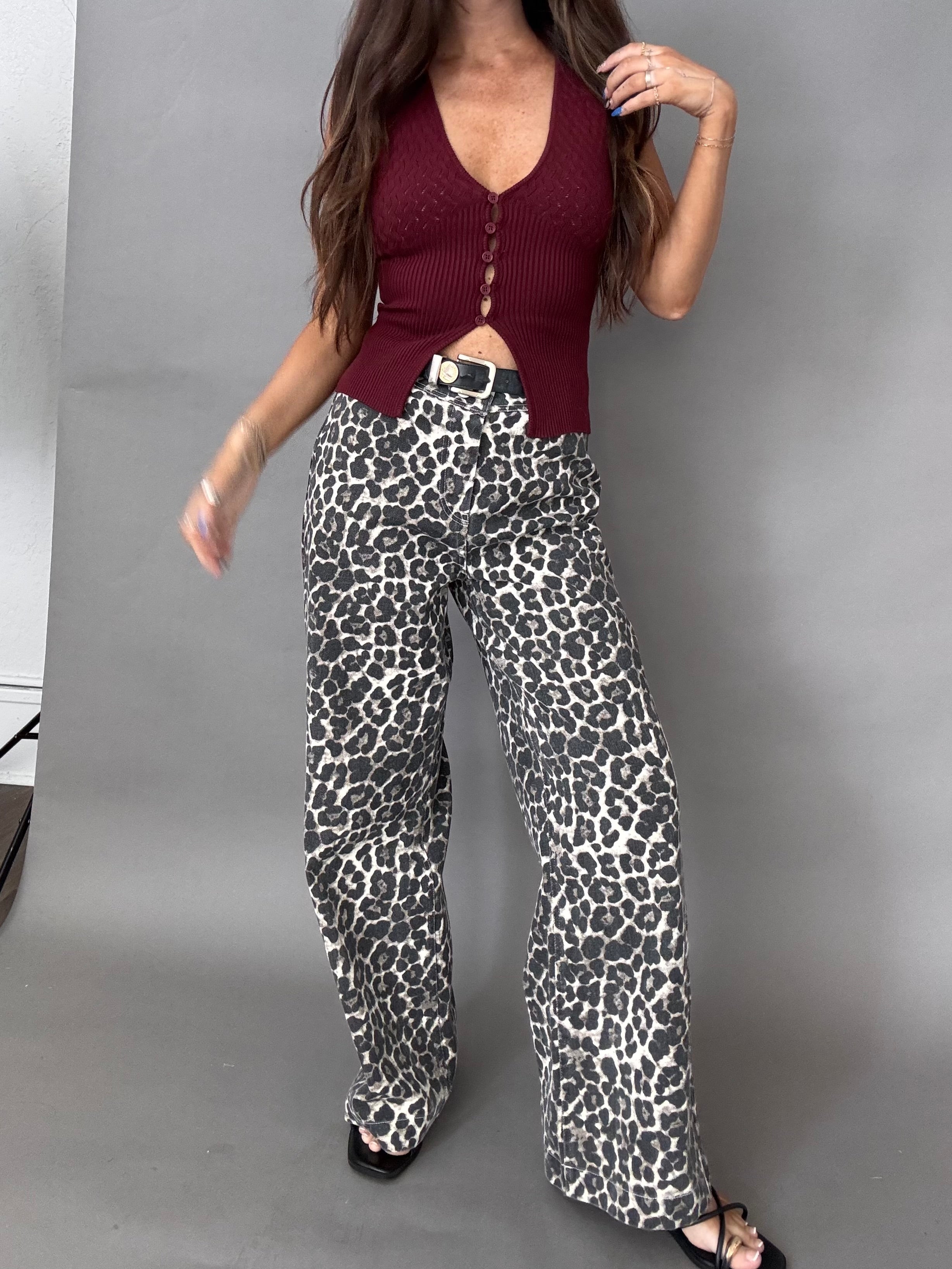 Llaine Leopard Pants are the perfect mix of fearless style and timeless sophistication. Designed with a flattering tailored fit and an effortlessly flowy wide-leg silhouette, these pants command attention while keeping you comfortable. The bold leopard print makes a statement whether you’re dressing them up for the office or keeping it casual on the weekend. Pair them with a sleek blouse, a fitted tee, or a chunky knit—either way, you’ll own the room.